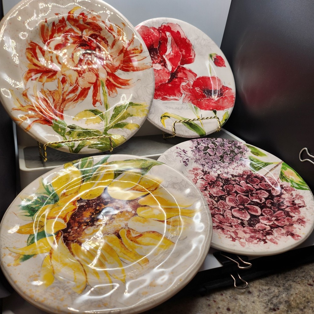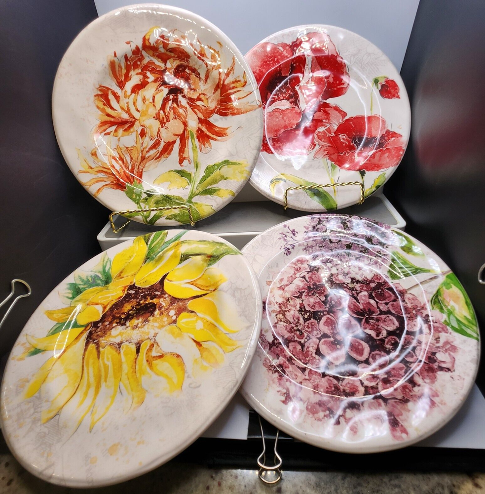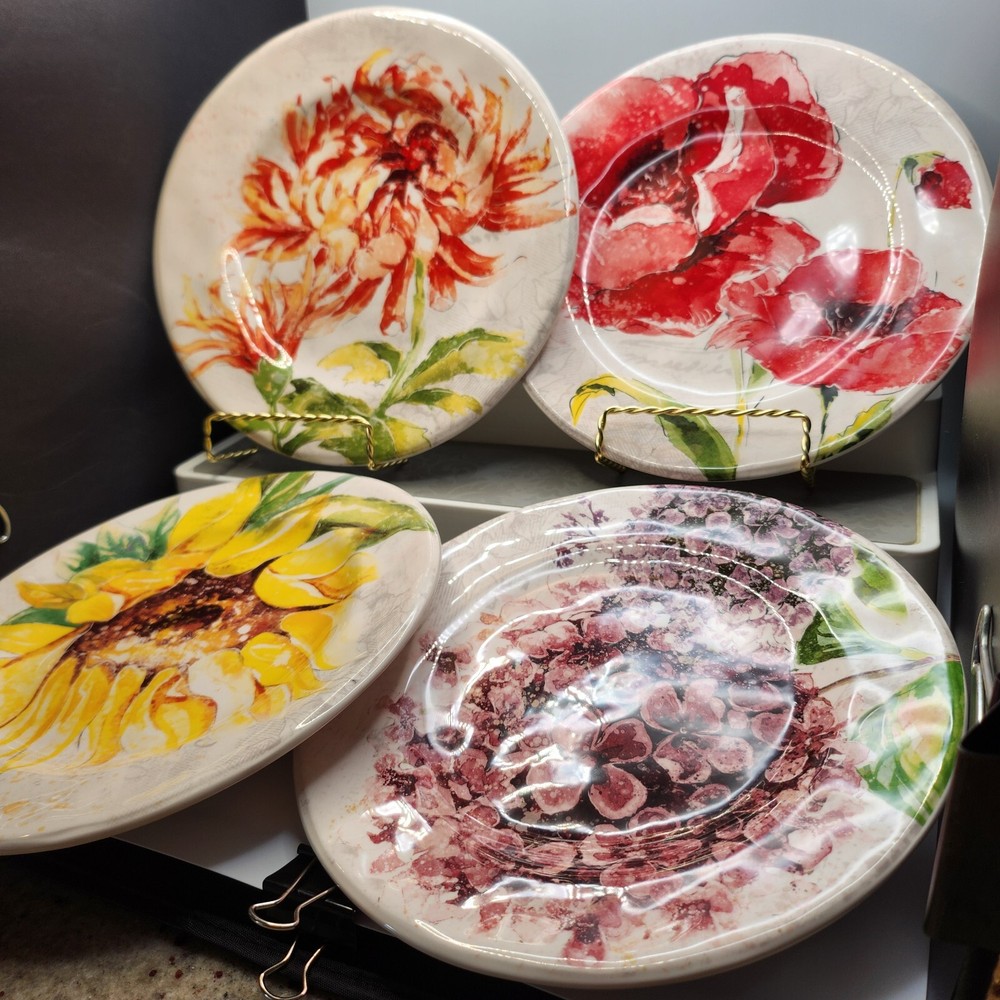No chips, cracks or crazing. Excellent used condition. This set of four Pier 1 Imports Floral Blooms 8.5" Salad Plates features a round shape with a floral motif design, including flowers like poppies, chrysanthemums, hydrangeas, and sunflowers. Made of ironstone and stoneware, these plates are smooth with no trim, finished with a glossy surface. They are microwave and dishwasher safe, stackable, and break-resistant, making them suitable for all occasions. Produced in China in the 21st century, these decorative plates are part of the Floral Blooms product line by Pier 1. In an effort to be more sustainable, your item may arrive in a non-USPS box we’ve recycled from other deliveries or purchases. 99.9% of the items we sell on the eBay platform are purchased 2 nd hand. Although we clean all our products prior to posting, items may have been subject to a non-pet/non-smoke free environment. We go to great lengths to ensure items arrive safely, including insuring all of our shipments via USPS. If any of your items arrives damaged, buyers agree to provide clear photos of the item damage and its packaging in order for sellers to process a claim. Until the claim is resolved, buyer agrees to retain the mailing box; including any damaged items, the wrappings, packaging, and any contents that were received. If requested by USPS, buyer agrees to present the mailed article and all wrappings, labels, and available contents for inspection at a local Post Office. Thank you for supporting small business!