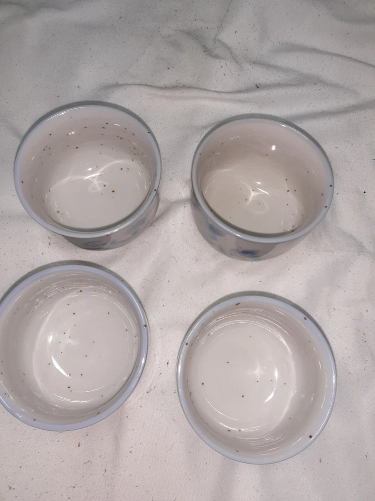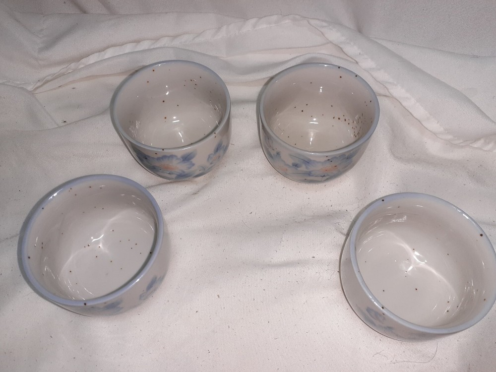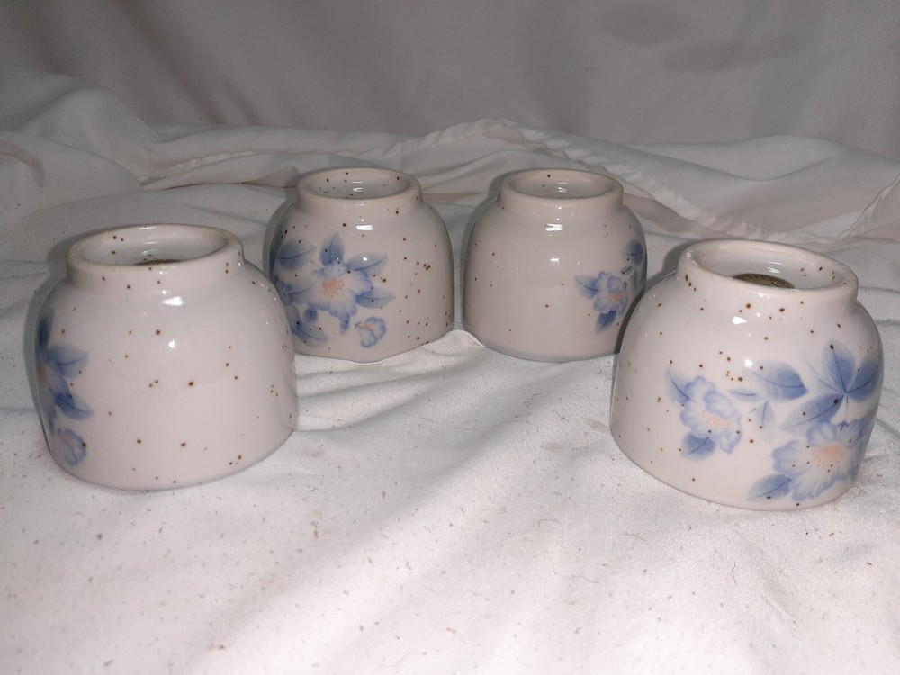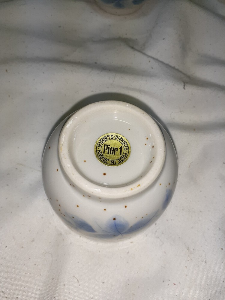 4 Pier 1 Japanese Style Sake Tea Cups White w/Blue Floral Design...
