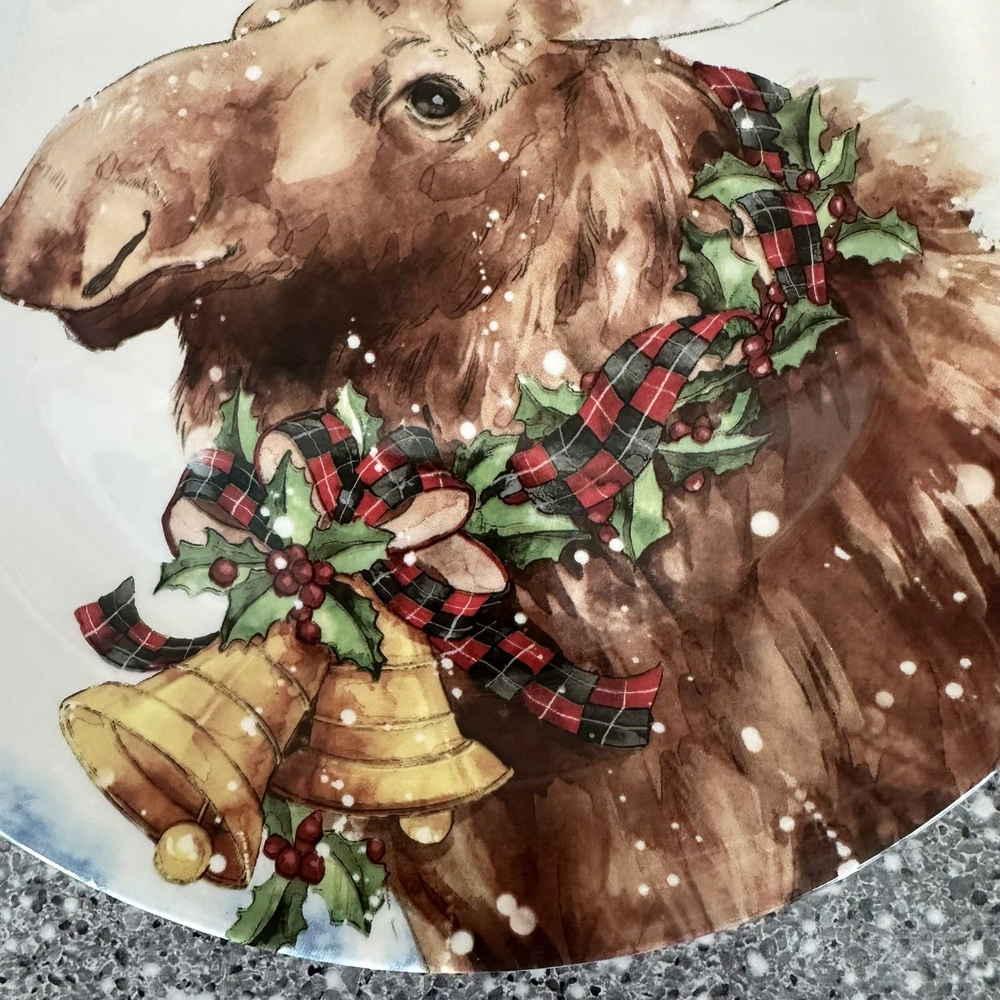 These moose salad plates are absolutely charming and in pristine condition—look brand new! Perfect for holiday gatherings or as a festive gift. Seller offers great shipping options and combines for savings. Highly recommend, quick response too! A must-have for any Christmas table setting!