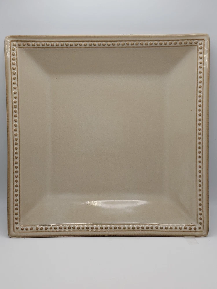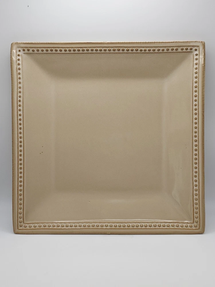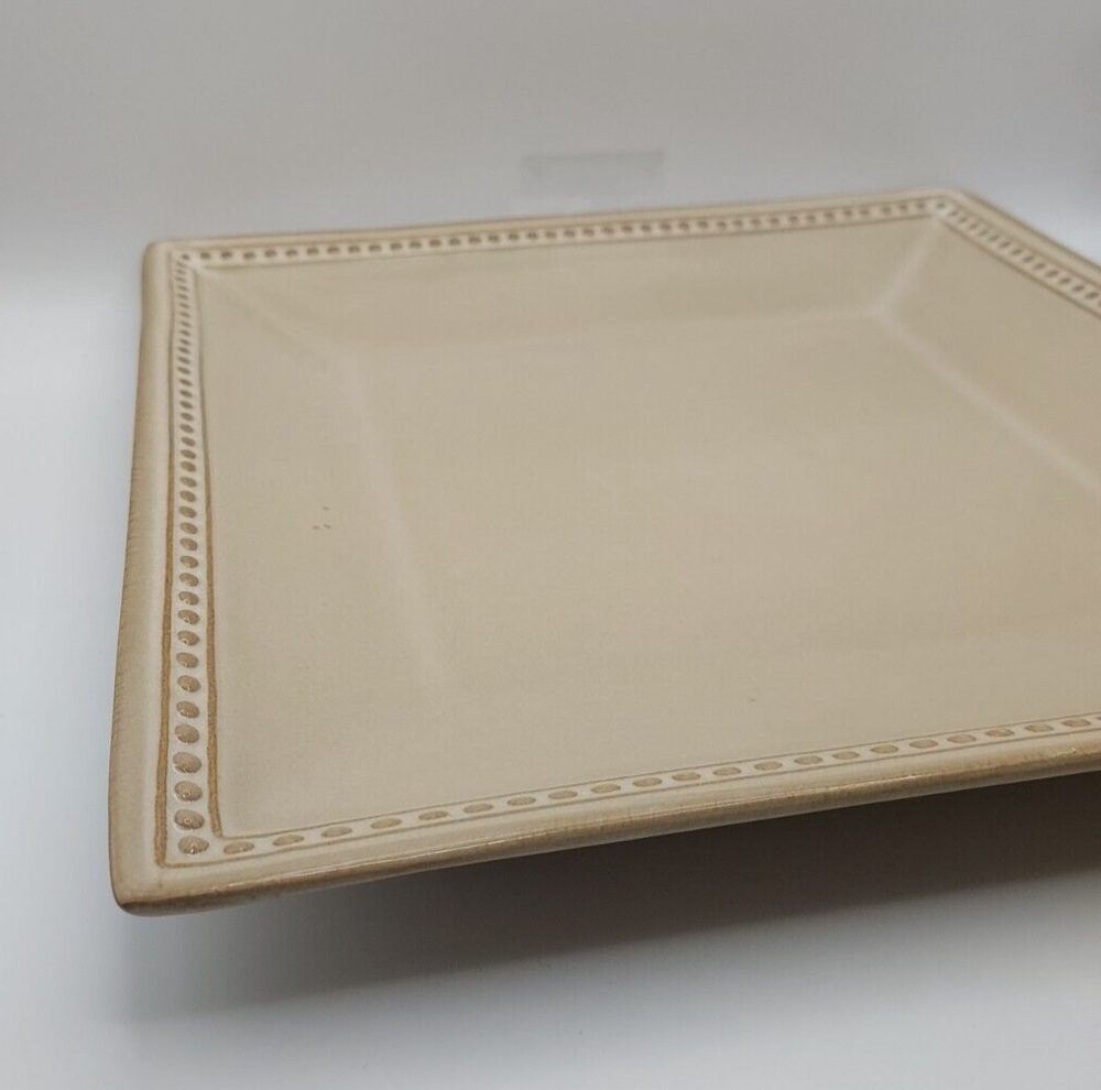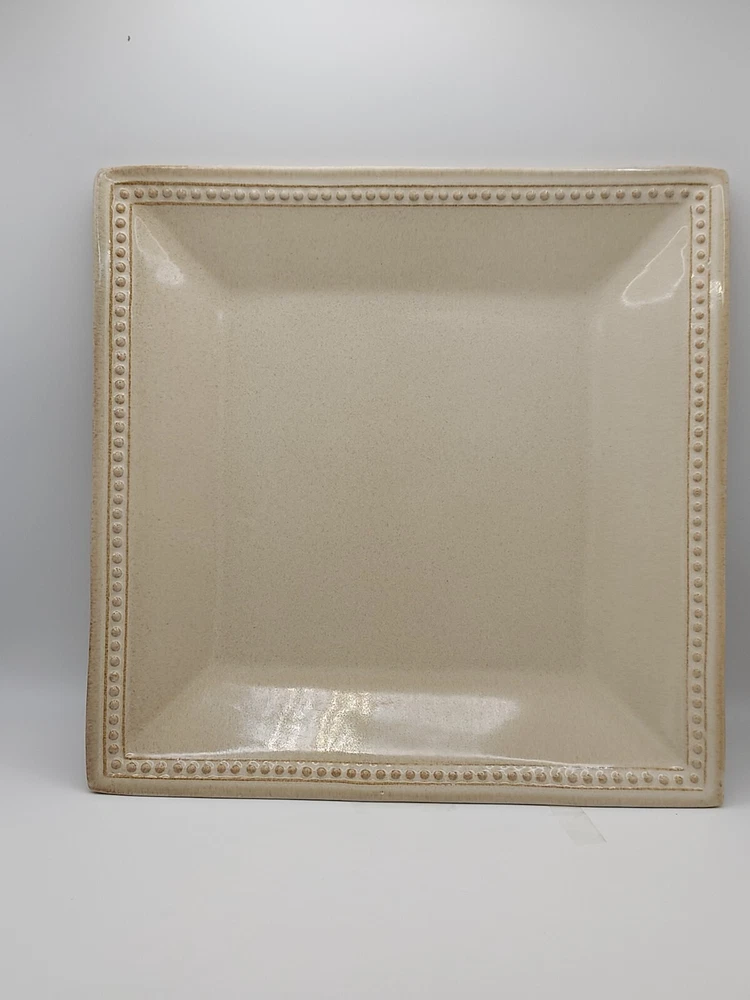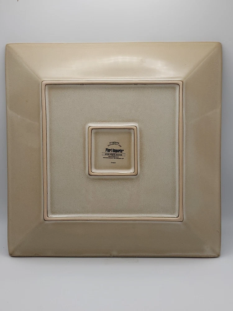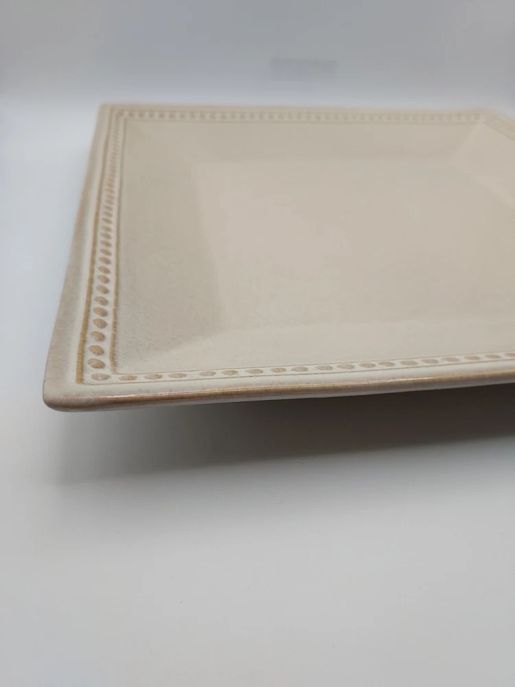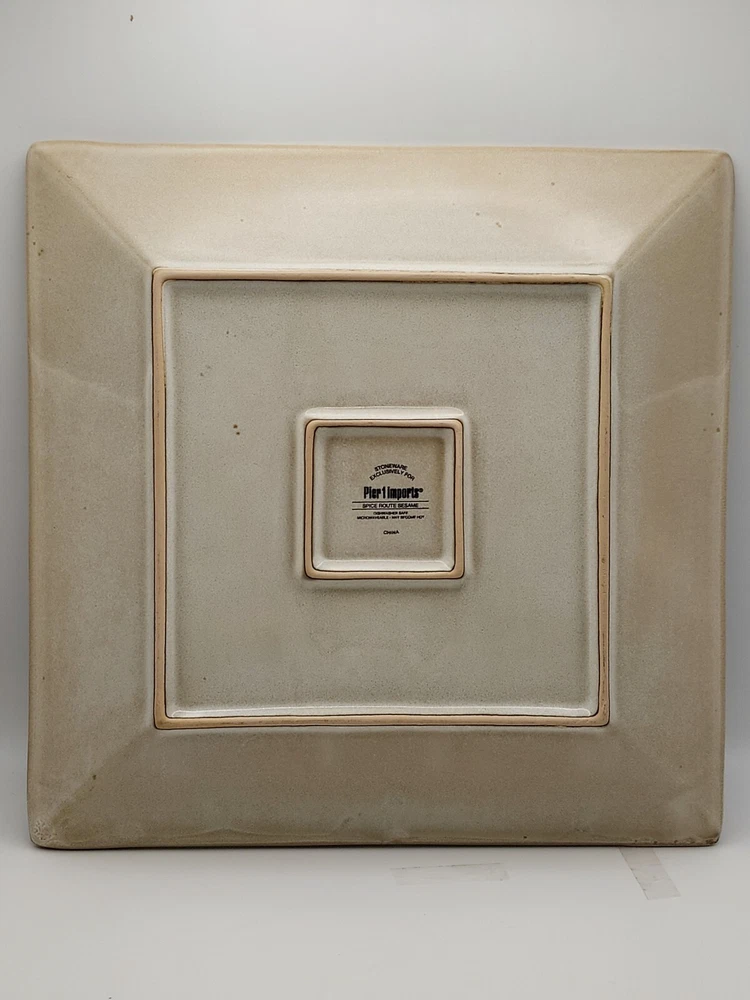 **No chips, cracks or crazing. Excellent used condition. Minimal imperfections that are standard with pottery dishware. See images.** This set of 4 Pier 1 Spice Route Sesame 10.5" square dinner plates is a stylish addition to any dining table. Made of durable stoneware, these plates feature a contemporary design with a beaded edge and a glossy finish. The beige color and subtle pattern make them perfect for all occasions, while the stackable design and microwave/dishwasher safe features make them practical for everyday use. The set includes four dinner plates from the 2012-2019 era, showcasing the original and decorative design elements characteristic of Pier 1's products. 99.9% of the items we sell on the eBay platform are purchased 2 nd hand. Although we clean all our products prior to posting, items may have been subject to a non-pet/non-smoke free environment. We go to great lengths to ensure items arrive safely, including insuring all of our shipments via USPS. If any of your items arrives damaged, buyers agree to provide clear photos of the item damage and its packaging in order for sellers to process a claim. Until the claim is resolved, buyer agrees to retain the mailing box; including any damaged items, the wrappings, packaging, and any contents that were received. If requested by USPS, buyer agrees to present the mailed article and all wrappings, labels, and available contents for inspection at a local Post Office. Thank you for supporting small business!