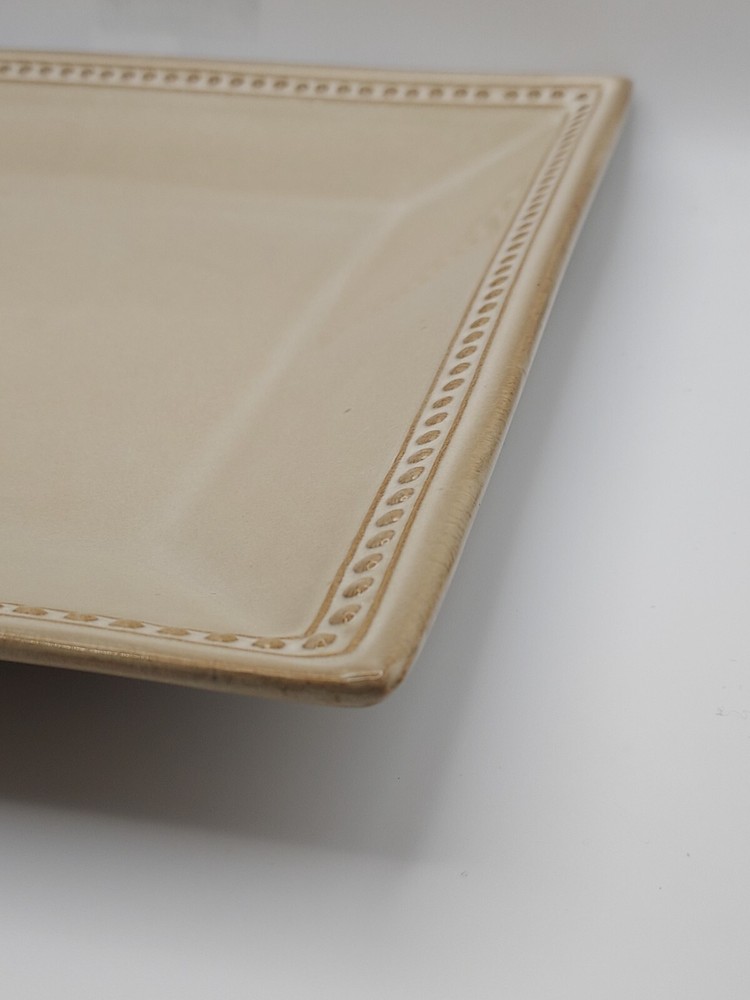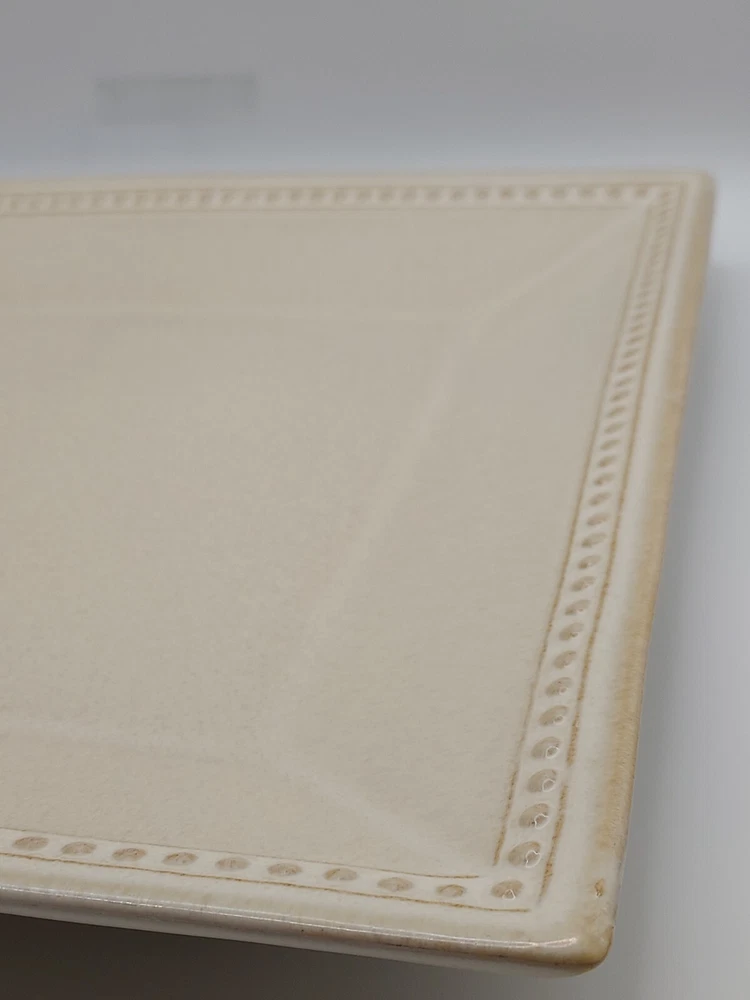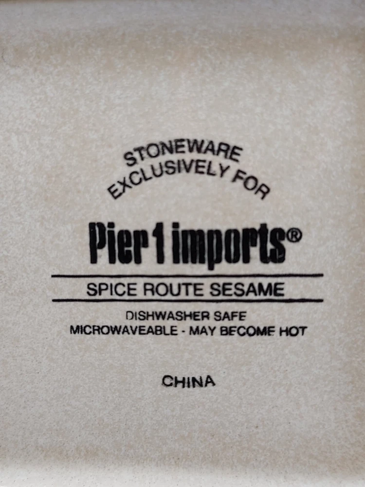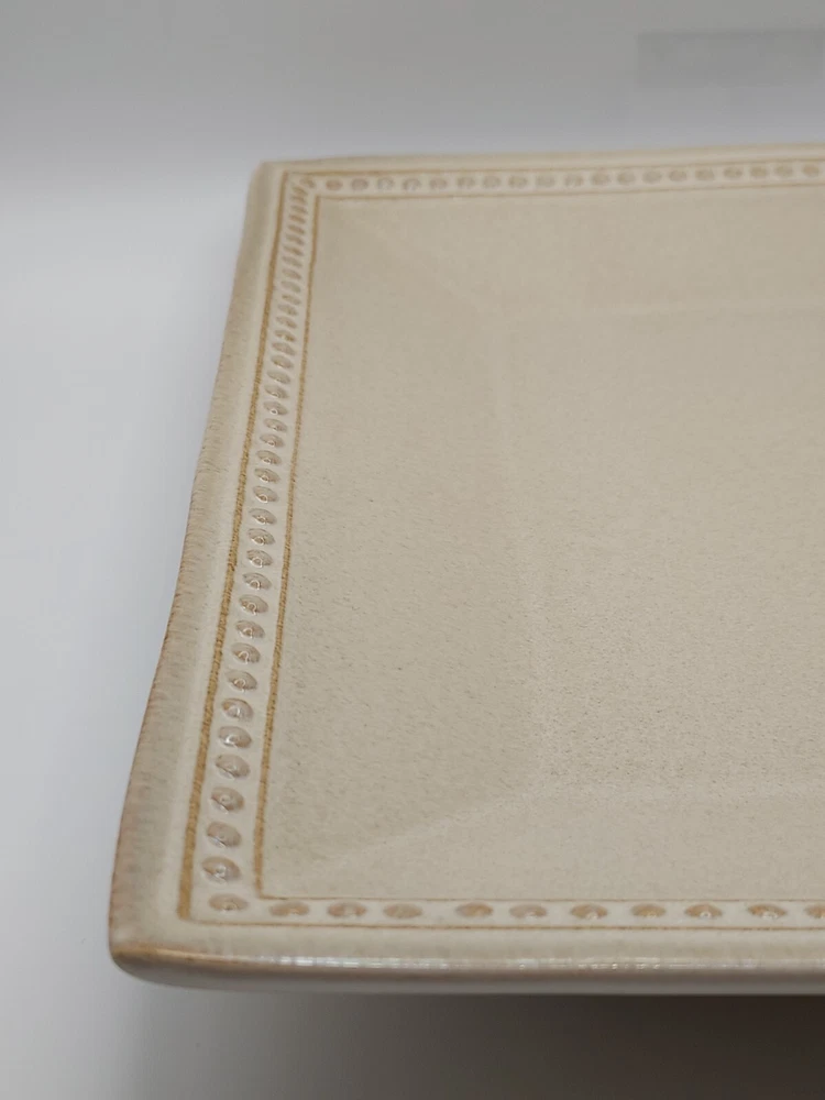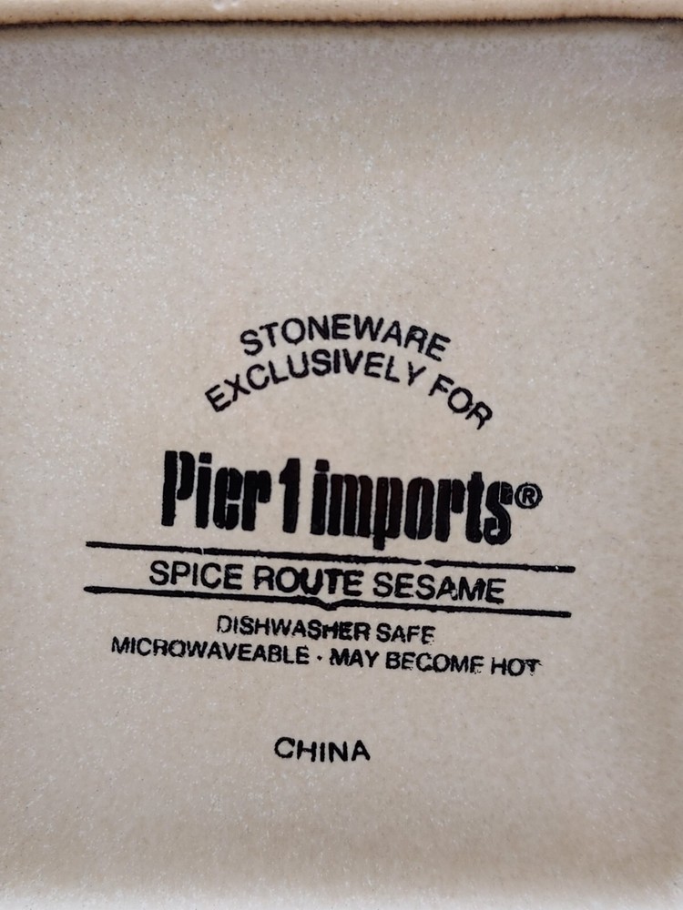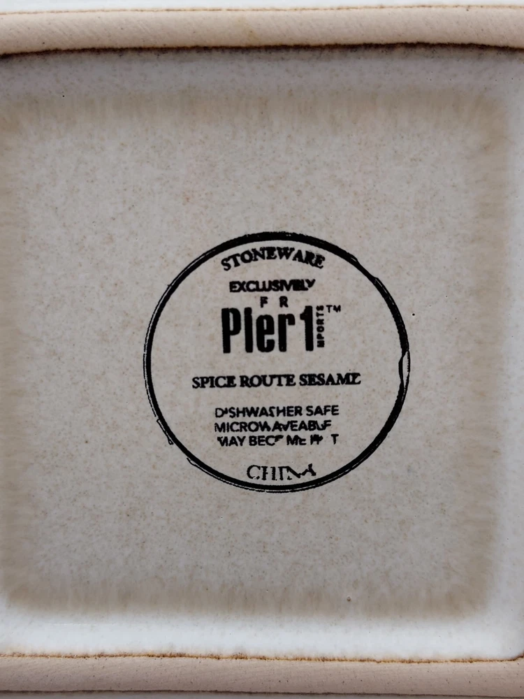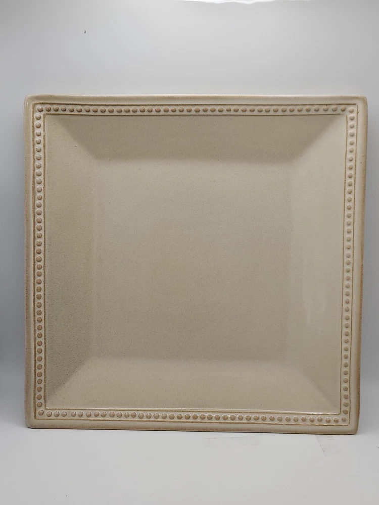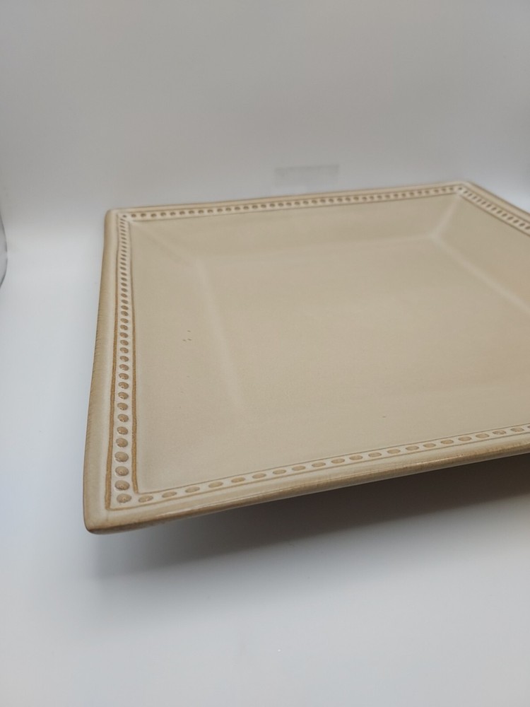 **No chips, cracks or crazing. Excellent used condition. Minimal imperfections that are standard with pottery dishware. See images.** This set of 4 Pier 1 Spice Route Sesame 10.5" square dinner plates is a stylish addition to any dining table. Made of durable stoneware, these plates feature a contemporary design with a beaded edge and a glossy finish. The beige color and subtle pattern make them perfect for all occasions, while the stackable design and microwave/dishwasher safe features make them practical for everyday use. The set includes four dinner plates from the 2012-2019 era, showcasing the original and decorative design elements characteristic of Pier 1's products. 99.9% of the items we sell on the eBay platform are purchased 2 nd hand. Although we clean all our products prior to posting, items may have been subject to a non-pet/non-smoke free environment. We go to great lengths to ensure items arrive safely, including insuring all of our shipments via USPS. If any of your items arrives damaged, buyers agree to provide clear photos of the item damage and its packaging in order for sellers to process a claim. Until the claim is resolved, buyer agrees to retain the mailing box; including any damaged items, the wrappings, packaging, and any contents that were received. If requested by USPS, buyer agrees to present the mailed article and all wrappings, labels, and available contents for inspection at a local Post Office. Thank you for supporting small business!