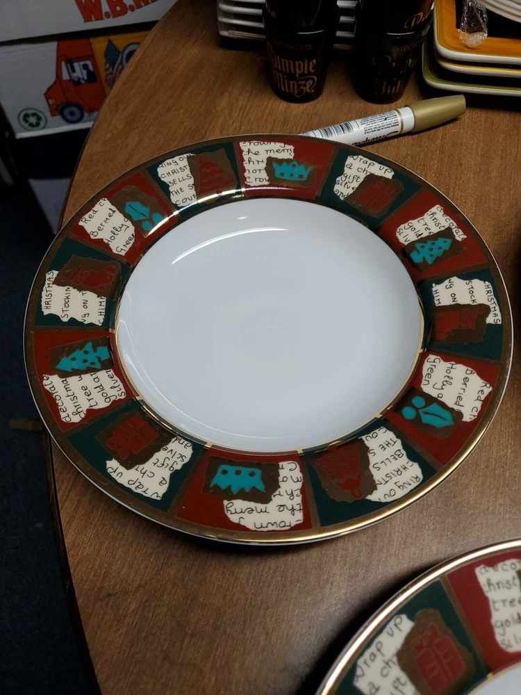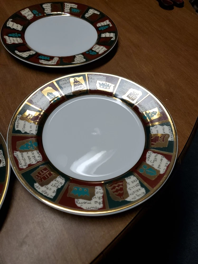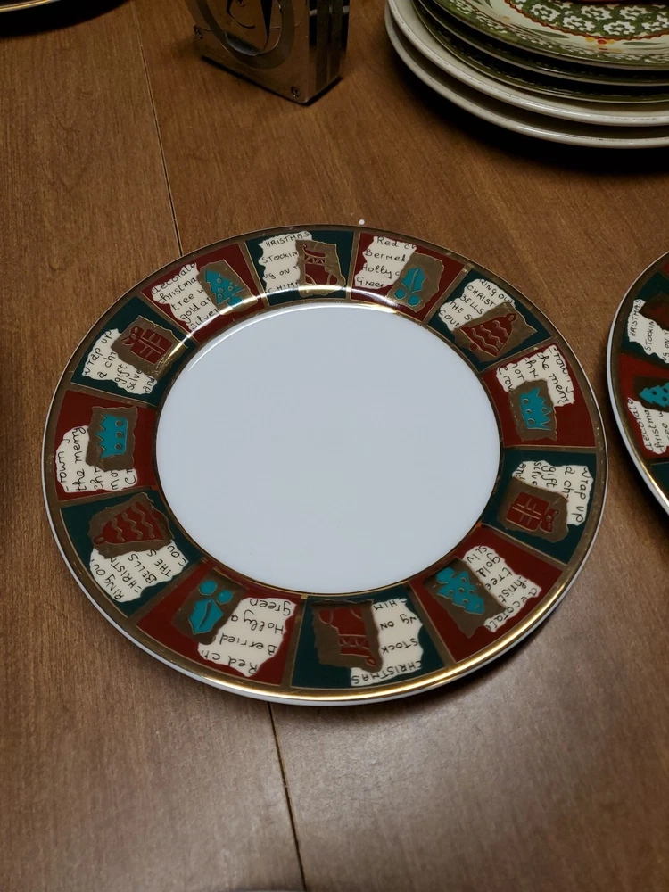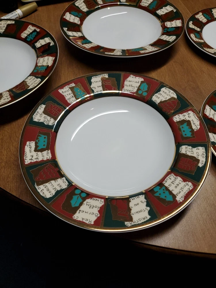 Bowls are unused, plates one time. Other then some very light paint scuffs from storage there excellent / EXCELLENT plus