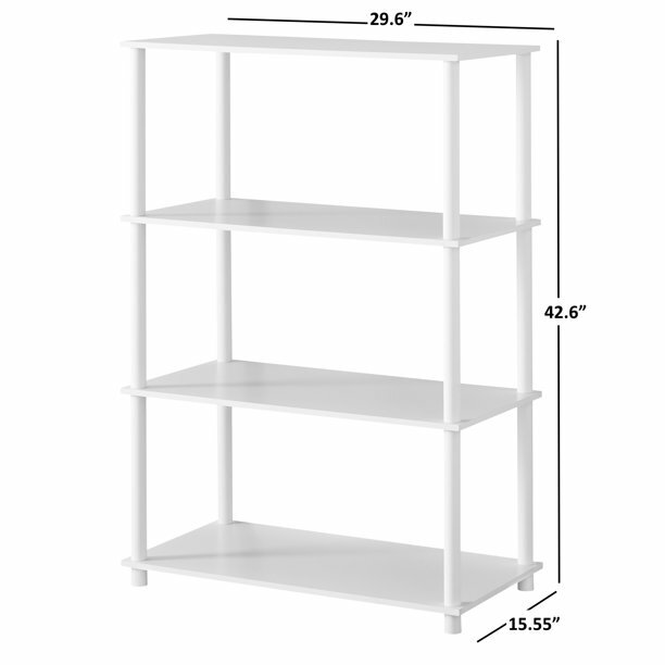 Cube Open Storage Cube, Open Storage Get organized stylishly with Mainstays No Tools 4 Shelf with a traditional design available in a variety of finishes to match almost any taste. Assembly is easy by just one person in minutes with no tools needed to create an attractive shelving system that provides a welcome storage option for any living room, family room, den, or anywhere else extra storage and organization is needed. With an open-back construction that allows it to fit comfortably into almost any available space, this sturdily built storage unit can hold up to 22 pounds on the bottom shelf and 15 pounds on each additional shelf. Serving as a bookshelf, plant stand, or for storing almost any item needed quickly and conveniently, it's perfect for displaying photography or collectibles and more. The Mainstays No Tools 4 Shelf stands over 42 inches tall and is ideal for medium and large rooms where smart, efficient storage is needed. The design provides over a foot of storage height between shelves to easily accommodate 6 Mainstays cube bins and baskets that make the most out of all available storage space in most rooms. Mainstays No Tools 4 Shelf Standard Storage Bookshelf, White: Elegant look for a sleek style 4 shelves add functional storage to large and medium rooms Easy "no tools" assembly by one person in minutes Ideal for storing books, holding mementos, displaying framed photos, and more Clean design works well with many room styles White, gray, red, dark blue, or yellow finishes available Accommodates 6 Mainstays cube storage bins Mainstays No Tools 4 Shelf assembled dimensions: 29.61"L x 15.55"W x 42.60"H Model# 6954338820622 (white), 6954338822374 (gray), 6954338822381 (red), 6954338822381 (dark blue), 6954338822404 (yellow)