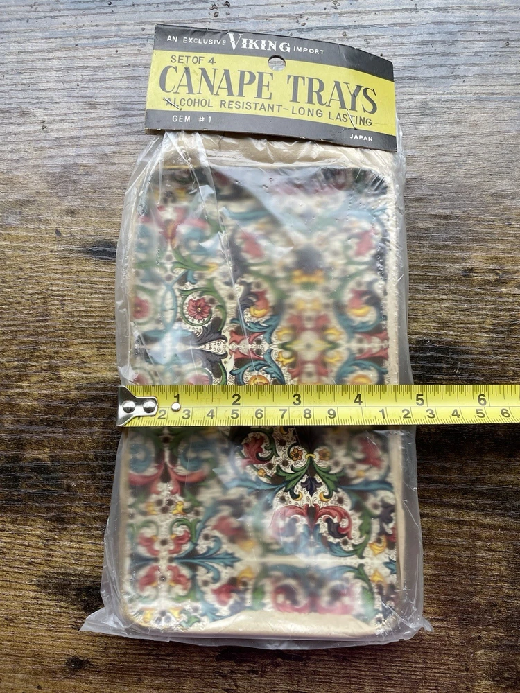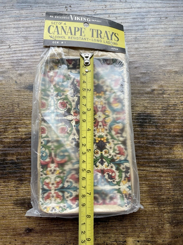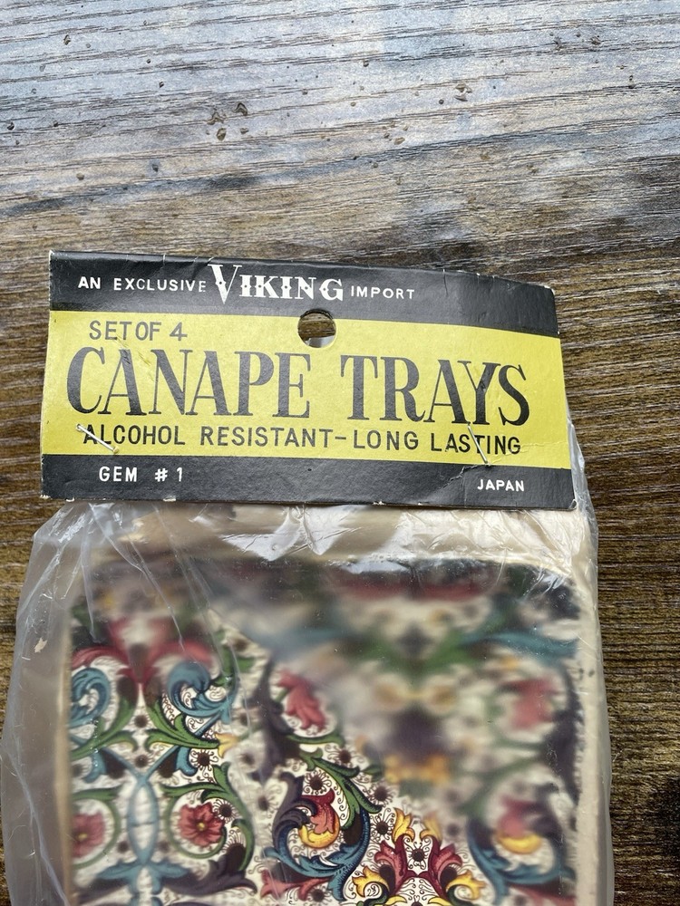 Vintage unopened. The one pictured is from another set- just used to get a clearer look at colors. I do have another 4 exactly the same for sale except the package is open. I also have 2 other sets for sale different shape & size. Same pattern.