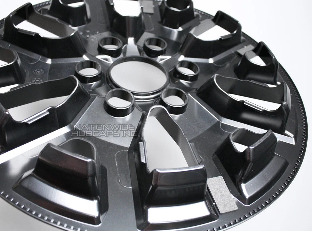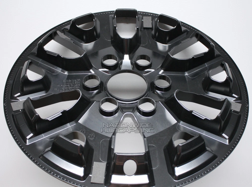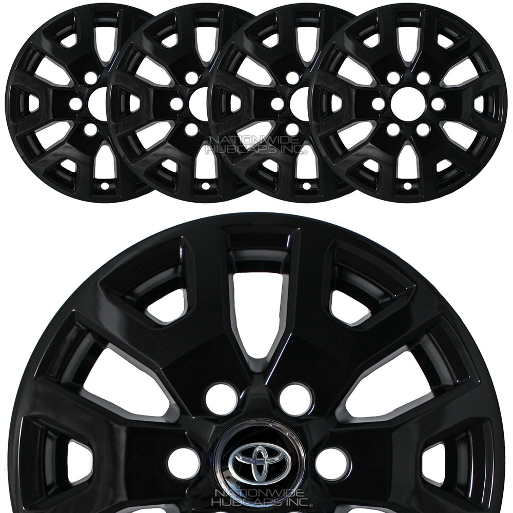 <img src="https://ti2.auctiva.com/web/aswCredit.gif" border="0"><br><a href="https://pages.ebay.com/seller-center/listing/listing-advanced-sellers/third-party-listing-tools.html#auctiva" target="_blank"><img src="https://ti2.auctiva.com/images/sc1line2.gif" border="0"></a> New Set of 4 Gloss Black 17" Wheel Skins fit Toyota Tacoma 2024-2025 SR5 Brand New Set of 4 17" Black Wheel Skins ** PLEASE LOOK AT ALL 10 PICTURES PROVIDED ** (...AND YES, YOU REALLY WILL GET ALL 4 WHEEL SKINS FOR THE LOW PRICE LISTED ) fits 2024-2025 SR5 with EXACT 17" alloy rim pictured **WATCH THE INSTALL VIDEO PROVIDED** New Set of 4 Exact Fit Heavy Duty 17" gloss black wheel skins. **Fits only the exact 17" Aluminum Wheel shown in the 3rd picture.** Be sure you have the wheel required, as there were multiple wheel options available on every year model. Simply pop out your center caps from your wheels, then snap these black skins over your wheels, then snap your center caps back in place on the wheel skins. See picture # 4. Wheel skins are made of heat/impact resistant auto grade ABS, then painted gloss black for a beautiful and aggressive finish. These snap on tight & secure, are very easy to install, and will not interfere with your wheel weights. See the retention clips in photos #6-8. Please contact us 1-800-758-1782 If you have any questions about fitment, we will be glad to answer them. No Toyota emblems are included, these utilize your existing emblems. PRICE INCLUDES 4 WHEEL SKINS & FREE SHIPPING** **NOTE: Free Shipping to Lower 48 US States Only! **AK, HI, PR, US Territories & International Cost Extra ANY QUESTIONS, WE CAN HELP YOU DETERMINE WHAT YOU NEED NATIONWIDE HUBCAPS 18007581782 WHEN CHECKING YOUR TIRE SIZE, DO NOT MEASURE THE HUBCAP, IT WILL GIVE A LARGER SIZE THAN NEEDED. FOR THE CORRECT SIZE IT GOES BY THE TIRE SIZE. CHECK THE SIDEWALL OF YOUR TIRE FOR A SERIES OF #'S LIKE: P245/70/R17 . THE R17 IN THE EXAMPLE IS THE HUBCAP/TIRE/WHEEL SIZE YOU NEED TO ORDER THE CORRECT SIZE. BY ENTERING A QUANTITY OF 1 YOU WILL GET 4 WHEEL SKINS SHIPPED TO YOU This is a new set of 4 snap on gloss black wheel skins for 2024 2025 Toyota Tacoma SR SR5 with the 17" aluminum wheel that is pictured. These will only fit the exact wheel pictured, they will not fit any other alloy or steel wheels. NOTE: Wheel skins are made from a mold of a particular wheel, so they will only fit back over the same exact style of wheel. These wheel skins will expose your existing Toyota wheel center caps and your lug nuts. They will look like factory black wheels when installed. No center caps are included with these wheel skins.