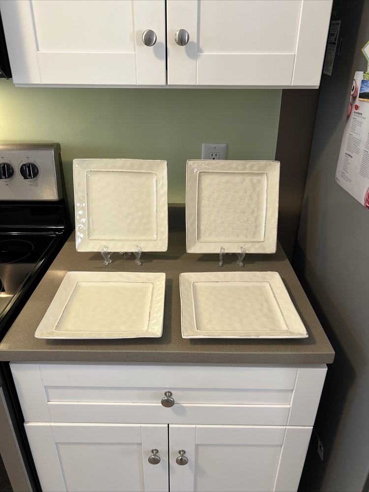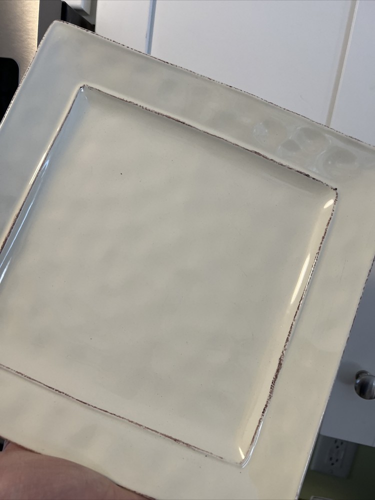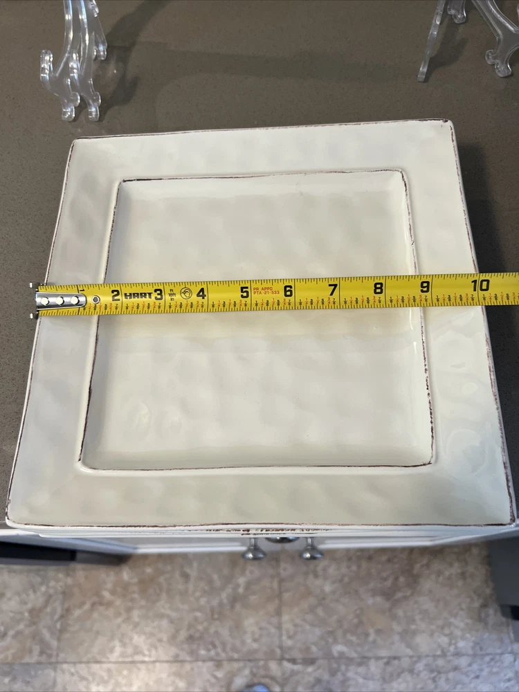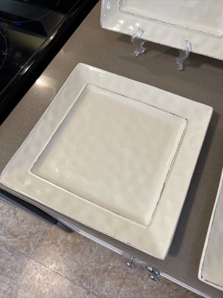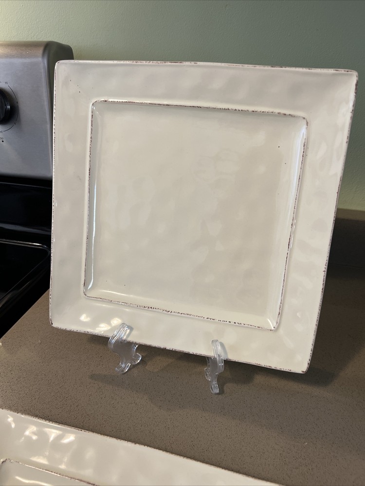 (4) or (8) Pier 1 Imports Martillo WHITE 10" Square Dinner Plates. Hard to find plates in larger quantities. This listing includes four plates. Select quantity 2 for all eight plates. Overall good condition for preowned. Nothing cracked, chipped or broken. See photos for exact sizes. BR1S1