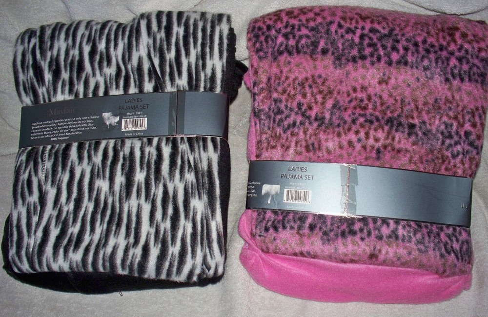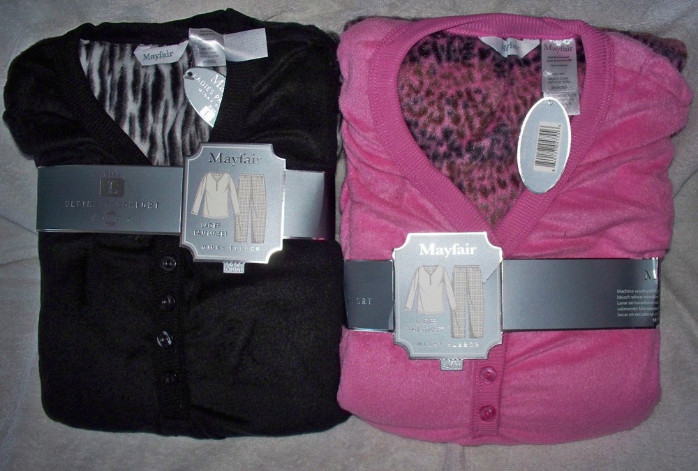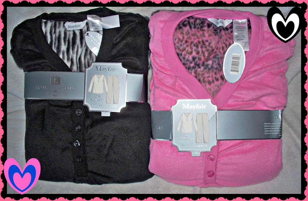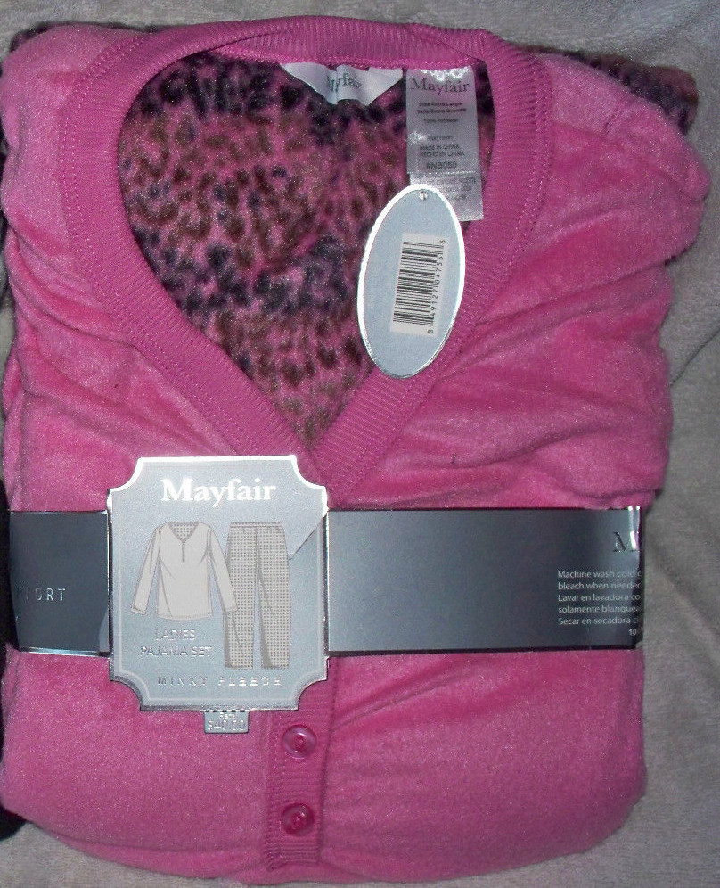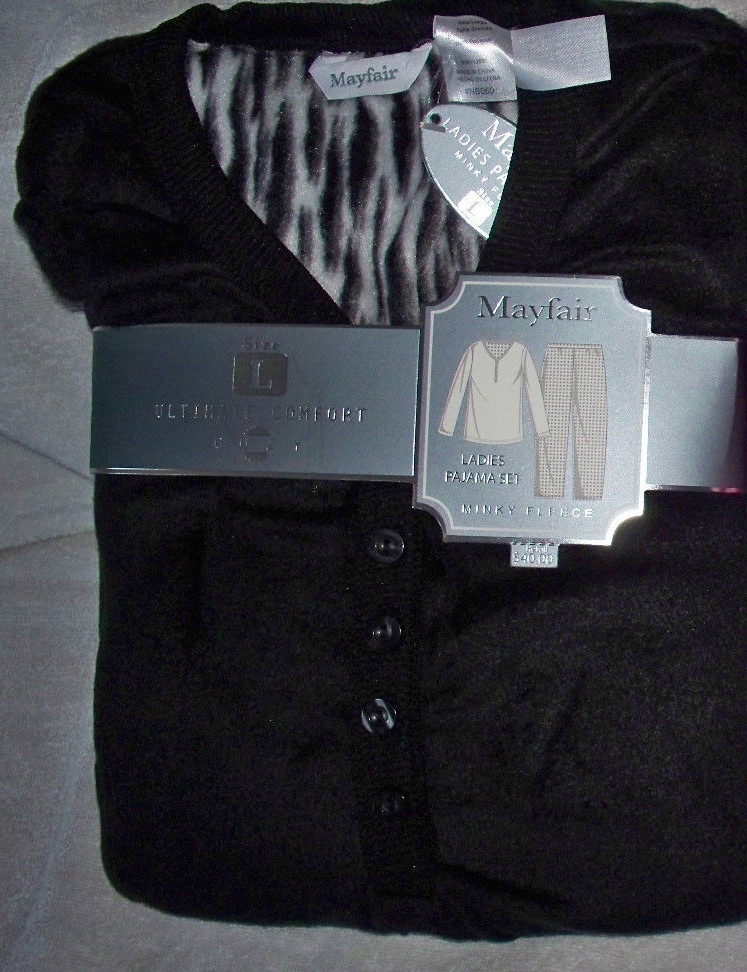 NWT RETAIL $40 Large Women's MAYFAIR Cozy Comfort Minky Fleece Pajama Set PJ Shirt Pant New with Tags. Mayfair 2-piece pajama set. V Neck 5 Button Pullover top -PINK OR BLACK Pull on pants - PINK SET OR BLACK SET Soft and plush. The size is marked Large. - ONLY ONE OF BOTH AVAILABLE. Mayfair. 100% polyester. Machine wash Tumble Dry . See photographs for details of item for sale. Will receive folded like picture. Shipping includes tacking information. Email questions Shipping weight 1 to 2 pounds Mayfair Black or Pink SET Pj Cabinet-636