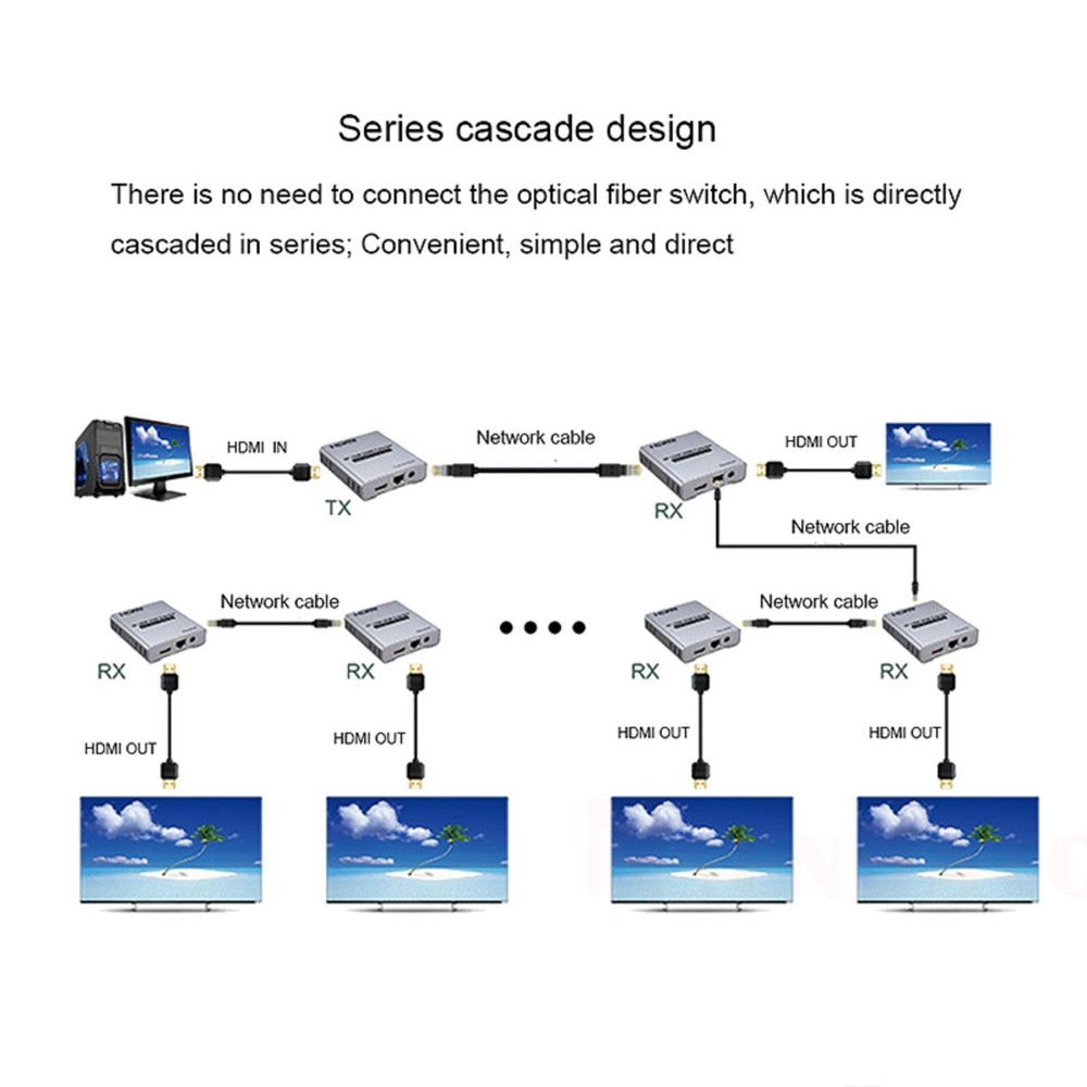 SAFE & SECURE SHOPPING 100% SATISFACTION GUARANTEED FAST SHIPPING Store Categories Store Categories You may also like 4K 120M HDMI Extender Cascade Connection over Cat5e/6 RJ45 Cable HDMI Splitter F Product Description 4K 120M HDMI Extender over Cat5e6 RJ45 Ethernet Cable Support Cascade Connection HDMI Splitter Extension Video Audio Transmitter Specifications: Extended distance: transmission up to 120M (CAT5E/6) Input video signal: 5Volts p-p(TTL) Video resolution support: Up to 3840 X 2160/30HZ backward compatible. Support audio format: DTS/Dolby/LPCM Support video format: 4K/1080P/720P and so on. Maximum bandwidth transmission: 340MHz Maximum transfer rate: 3 x 3.4Gbps Input cable length: ≤15M AWG26 HDMI standard cable Output cable length: ≤15M AWG26 HDMI standard cable Maximum operating current: TX: 350mA; RX: 200mA Power supply: DC5V / 1A; Operating temperature range: -10∽+45°C Size: 94x84x24mm Features: 1. 120M long distance transmission 2. Multi-receive cascading transmission 3. Low power consumption, low temperature and high safety. 4. Support 4K@30HZ HDMI1.4 or below. 5. HDMI extender over IP is used in audio-visual conference, command and control center, ticketing platform, home theater, multi-media teaching, conference system and so on. 6. This integrated cable extender replaces the HDMI cable with a CAT5e or CAT6 cable (recommended). It can transmit HDMI1.4 4K@30Hz HDM1.3 1080P I for 120 meters, The purpose of the extender is to use low-cost wires. To achieve long-distance signal transmission. Package lists: 1* TX Extender 1* RX Extender 1* IR-RX cable 1* IR-TX cable 2* 5V/1A Selectable Power adapter 1* Manual Payment Shipping Returns Contact Us Payment We accept all verified payments from ebay. Orders will be shipped after receiving cleared payment. Payment due within 7 days after auction ends and for buy it now listings. Shipping We ship most of our orders within 24 hours, and may up to 48 hours. If you want faster shipping way, please contact us before making a payment. Sometimes due to problems with our transportation company system, your shipping information may be delayed to update. We recommend that you try again after 3-4 days. If you still haven't checked the shipping information, you can contact us via ebay message. Returns Always believe we can figure things out with communication, but if it comes to return, the pacakge must be intact and the same as you receive. If you have any questions, please feel free to email our service specialists 24 Hours a Day, 7 Days a Week. We will reply you ASAP. Return/refund is accepted within 30 days after the buyer receives the item. NO exchange will be accepted after 30 days from the date when the item is received. Please contact us first before returning your product!!! Contact Us If you have any questions, you're welcome to email us. We strive to answer all questions and resolve any problems as quickly as possible. You can contact us 7*24, we will reply at the first time, and we will surely solve your problems. Copyright © 2022 Tongtool