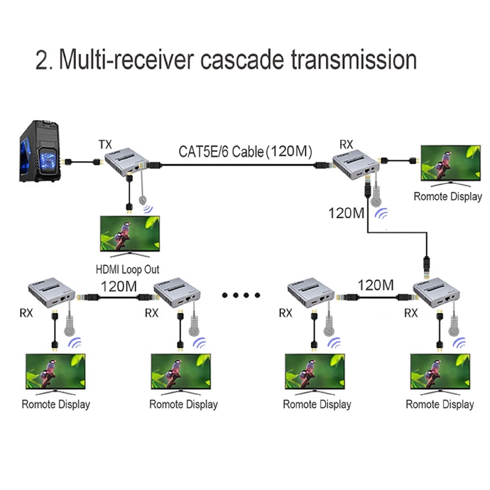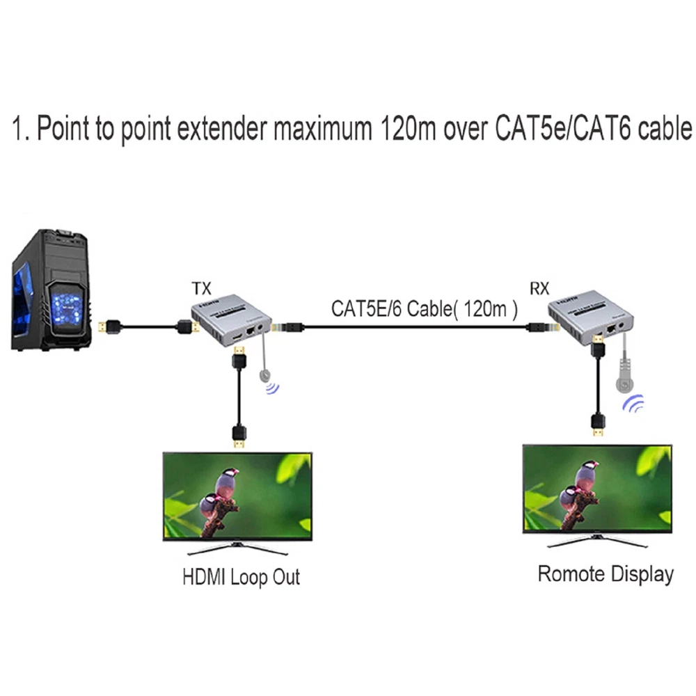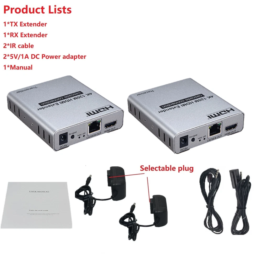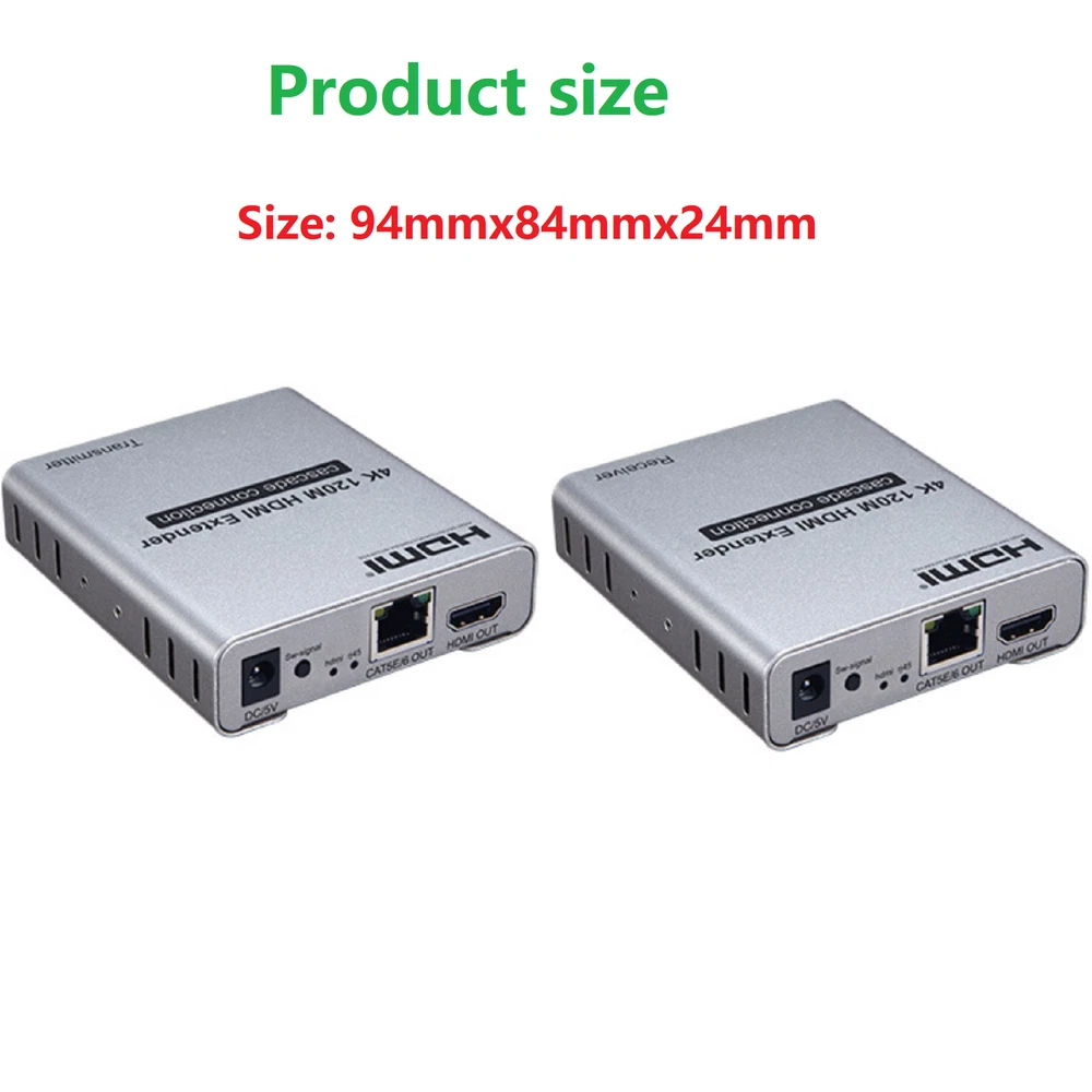 You may also like DumboRC P6FG 2.4G 6-CH Receiver w/ Gyro for RC X6 Transmitter Remote Controller 13.99 AUD 6.99 AUD Ultra Light Titanium Material Screwless Foldable Anti-Blue Reading Glasses p 5.99 AUD Free shipping 25/39mm Chrome Tyre Wheel Valve Extension Extender Caps Stem For Car Truck Van k 5.99 AUD Free shipping Pocket LED Light Slide-out Jewels Magnifying Glass Magnifier Loupe 30X 60X 90X a 7.49 AUD Free shipping 20Pcs 3M Self-Adhesive Wire Tie Cable Clamp Clip Holder For Car Dash Camera Home 4.99 AUD 6.99 AUD 80cm Airport Windsock 30" Long Outdoor Wind SOCK w/ Reflective Belts Grommet x 8.99 AUD Free shipping Product Description 4K 120M HDMI Extender Cascade Connection over Cat5e/6 RJ45 Cable HDMI Splitter g Specifications: Extended distance: transmission up to 120M (CAT5E/6) Input video signal: 5Volts p-p(TTL) Video resolution support: Up to 3840 X 2160/30HZ backward compatible. Support audio format: DTS/Dolby/LPCM Support video format: 4K/1080P/720P and so on. Maximum bandwidth transmission: 340MHz Maximum transfer rate: 3 x 3.4Gbps Input cable length: ≤15M AWG26 HDMI standard cable Output cable length: ≤15M AWG26 HDMI standard cable Maximum operating current: TX: 350mA; RX: 200mA Power supply: DC5V / 1A; Operating temperature range: -10∽+45°C Size: 94x84x24mm Features: 1. 120M long distance transmission 2. Multi-receive cascading transmission 3. Low power consumption, low temperature and high safety. 4. Support 4K@30HZ HDMI1.4 or below. 5. HDMI extender over IP is used in audio-visual conference, command and control center, ticketing platform, home theater, multi-media teaching, conference system and so on. 6. This integrated cable extender replaces the HDMI cable with a CAT5e or CAT6 cable (recommended). It can transmit HDMI1.4 4K@30Hz HDM1.3 1080P I for 120 meters, The purpose of the extender is to use low-cost wires. To achieve long-distance signal transmission. Package lists: 1* TX Extender 1* RX Extender 1* IR-RX cable 1* IR-TX cable 2* 5V/1A Selectable Power adapter 1* Manual Payment Shipping Returns Contact Us We accept all verified payments from ebay. Orders will be shipped after receiving cleared payment. Payment due within 7 days after auction ends and for buy it now listings. We ship most of our orders within 24 hours, and may up to 48 hours for. If you want faster shipping way. Please contact us before making payment. Sometimes due to problems with our transportation company system, your shipping information may be delayed to update. We recommend that you try again after 3-4 days. If you still haven't checked the shipping information, you can contact us by ebay message. Always believe we can figure things out with communication, if it comes to return, the pacakge must be intact and the same as you receive. If you have any questions, please feel free to email our service specialists 24 Hours a Day, 7 Days a Week. We will reply you ASAP. Return/refund is accepted within 30 days after the buyer receives the item. NO exchange will be accepted after 30 days from the date when the item is received. Please contact us first before returning your product!!! If you have any questions, our Customer Service staffs welcome you to email us. We strive to answer all questions and resolve any problems as quickly as possible. You can contact us 7*24, we will reply at the first time, and we will surely solve your problems. Note: 1.We try our best to reply to your emails as soon as possible, however, due to high volume of daily incoming emails and time zone difference, we may not be able to reply your emails immediately. Please allow 1 business days for us to response. If you do not receive any reply from us, please check your email ensuring your mailbox has not reached full size. 2.Due to some ISP SPAM filter settings, you may not be able to receive our replies; if you have problems receiving our emails, you may need to use a different email account to contact us. 3.Please give us the opportunity to resolve any problem. We understand the concerns and frustrations you might have, and will try our best to resolve the issues. Please email us before leaving any negative feedback or open any dispute on PayPal. 4.We care about our valued customers, and will always try to help you. So if you have any problems, please e-mail us immediately. Payment We accept all verified payments from ebay. Orders will be shipped after receiving cleared payment. Payment due within 7 days after auction ends and for buy it now listings. Shipping We ship most of our orders within 24 hours, and may up to 48 hours for. If you want faster shipping way. Please contact us before making payment. Sometimes due to problems with our transportation company system, your shipping information may be delayed to update. We recommend that you try again after 3-4 days. If you still haven't checked the shipping information, you can contact us by ebay message. Returns Always believe we can figure things out with communication, if it comes to return, the pacakge must be intact and the same as you receive. If you have any questions, please feel free to email our service specialists 24 Hours a Day, 7 Days a Week. We will reply you ASAP. Return/refund is accepted within 30 days after the buyer receives the item. NO exchange will be accepted after 30 days from the date when the item is received. Please contact us first before returning your product!!! Contact Us If you have any questions, our Customer Service staffs welcome you to email us. We strive to answer all questions and resolve any problems as quickly as possible. You can contact us 7*24, we will reply at the first time, and we will surely solve your problems. Note: 1.We try our best to reply to your emails as soon as possible, however, due to high volume of daily incoming emails and time zone difference, we may not be able to reply your emails immediately. Please allow 1 business days for us to response. If you do not receive any reply from us, please check your email