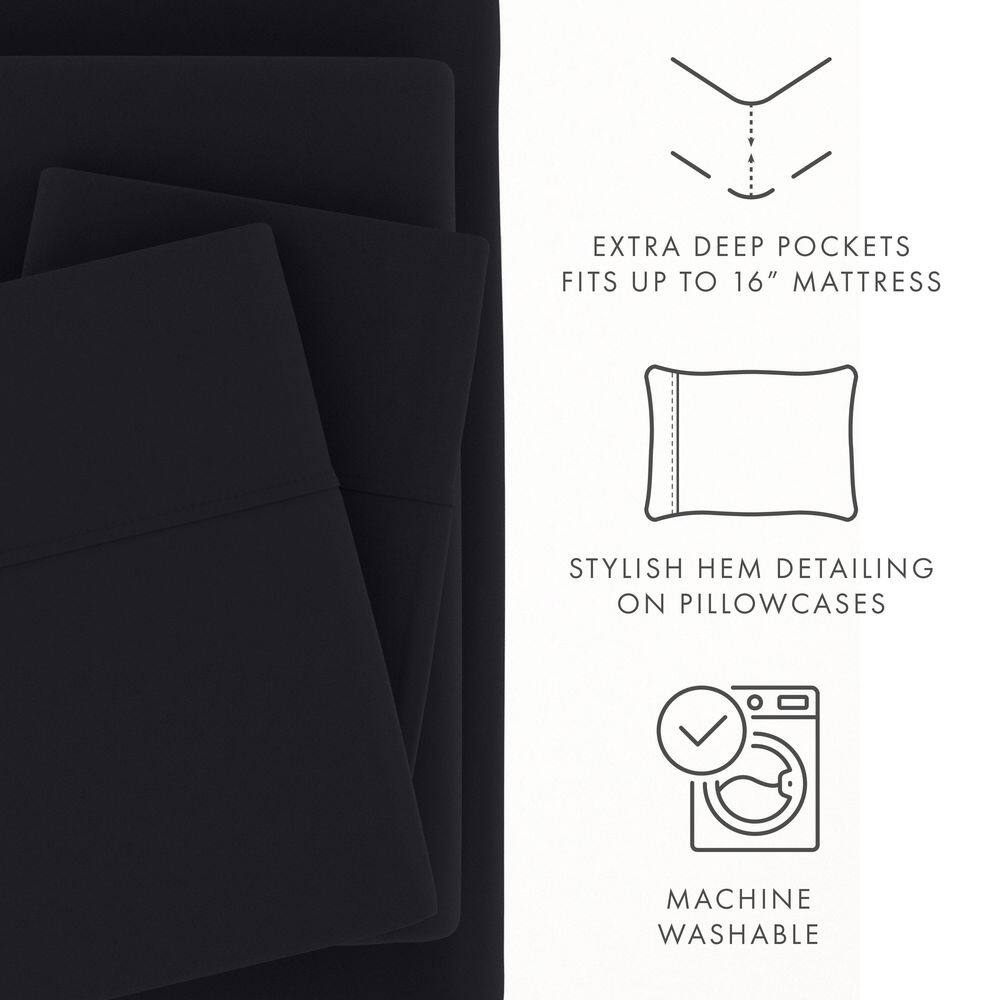 Includes 1-Flat, 1-Fitted, 2-Pcases (TW sets 1-Pcase) 16 in. Deep-Pocket Fitted Sheets Hypoallergenic and antimicrobial for sensitive skin The 4-Piece Classic Sheet Set by Becky Cameron is designed with your comfort in mind. Made of the finest imported double-brushed microfiber yarns creating a new standard in softness and breath-ability, this sheet set will make it incredibly hard to get out of bed in the morning. Our premium yarns are two times more durable than cotton, completely wrinkle free, and perfect for all seasons. Superior weave for durability and a buttery-soft touch Double-brushed microfiber for outstanding comfort Easy Care: Machine wash cold, Tumble dry low, Fade Resistant, Wrinkle Free, No Ironing Necessary California King Size Set includes: 1 California King Fitted Sheet: 72 in. W x 84 in. L + 16 in. ; 1 California King Flat Sheet: 108 in. W x 102 in. L ; 2 King Pillowcases: 20 in. W x 40 in. L King Size Set includes: 1 King Fitted Sheet: 78 in. W x 80 in. L + 16 in. ; 1 King Flat Sheet: 102 in. W x 105 in. L ; 2 King Pillowcases: 20 in. W x 40 in. L Queen Size Set includes: 1 Queen Fitted Sheet: 60 in. W x 80 in. L + 16 in. ; 1 Queen Flat Sheet: 90 in. W x 102 in. L ; 2 Standard Pillowcases: 20 in. W x 30 in. L Full Size Set includes: 1 Full Fitted Sheet: 54 in. W x 75 in. L + 16 in. ; 1 Full Flat Sheet: 81 in. W x 96 in. L ; 2 Standard Pillowcases: 20 in. W x 30 in. L Twin Extra Long Size Set includes: 1 Twin Extra Long Fitted Sheet: 39 in. W x 81 in. L +16 in. ; 1 Twin Extra Long Flat Sheet: 66 in. W x 96 in. L ; 1 Standard Pillowcase: 20 in. W x 30 in. L
