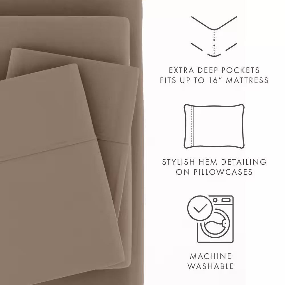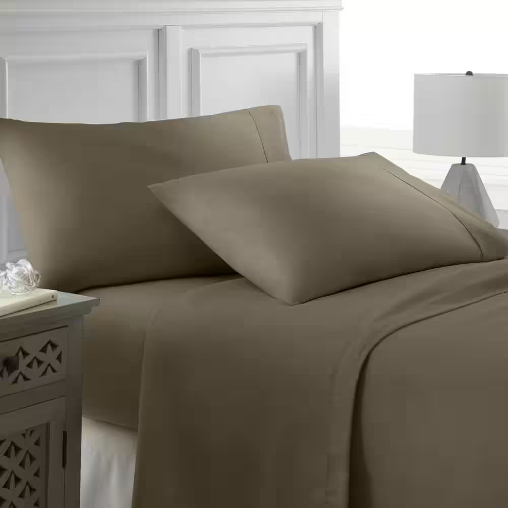 Taupe Solid Microfiber Queen Sheet Set - 4-Piece Soft & Breathable