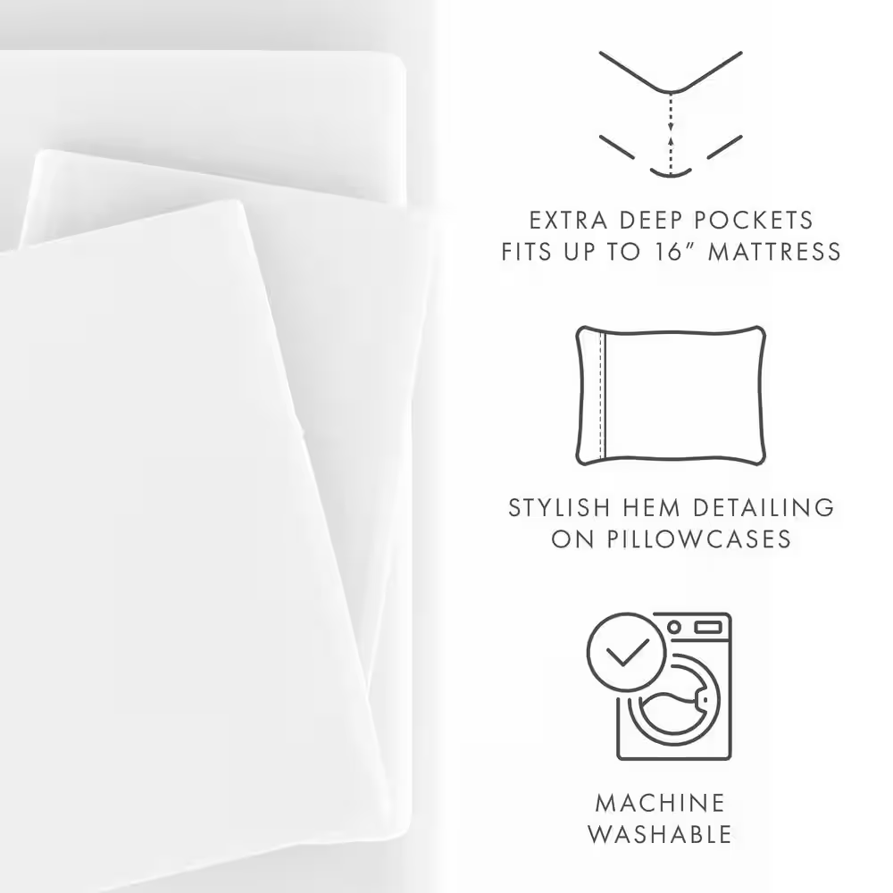 Includes 1-Flat, 1-Fitted, 2-Pcases (TW sets 1-Pcase) 16 in. Deep-Pocket Fitted Sheets Hypoallergenic and antimicrobial for sensitive skin The 4-Piece Classic Sheet Set by Becky Cameron is designed with your comfort in mind. Made of the finest imported double-brushed microfiber yarns creating a new standard in softness and breath-ability, this sheet set will make it incredibly hard to get out of bed in the morning. Our premium yarns are two times more durable than cotton, completely wrinkle free, and perfect for all seasons. Superior weave for durability and a buttery-soft touch Double-brushed microfiber for outstanding comfort Easy Care: Machine wash cold, Tumble dry low, Fade Resistant, Wrinkle Free, No Ironing Necessary California King Size Set Includes: 1 California King Fitted Sheet: 72" W x 84" L + 16" ; 1 California King Flat Sheet: 108" W x 102" L ; 2 King Pillowcases: 20" W x 40" L King Size Set Includes: 1 King Fitted Sheet: 78" W x 80" L + 16" ; 1 King Flat Sheet: 102" W x 105" L ; 2 King Pillowcases: 20" W x 40" L Queen Size Set Includes: 1 Queen Fitted Sheet: 60" W x 80" L + 16" ; 1 Queen Flat Sheet: 90" W x 102" L ; 2 Standard Pillowcases: 20" W x 30" L Full Size Set Includes: 1 Full Fitted Sheet: 54" W x 75" L + 16" ; 1 Full Flat Sheet: 81" W x 96" L ; 2 Standard Pillowcases: 20" W x 30" L Twin Extra Long Size Set Includes: 1 Twin Extra Long Fitted Sheet: 39" W x 81" L +16" ; 1 Twin Extra Long Flat Sheet: 66" W x 96" L ; 1 Standard Pillowcase: 20" W x 30" L