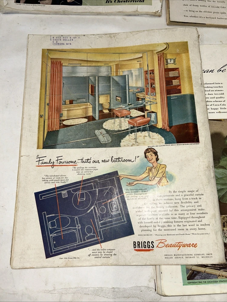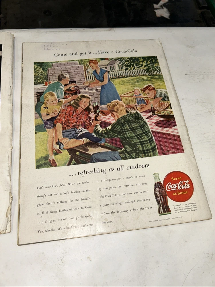 Please look at pictures carefully as they are part of the description. Vintage lot of five magazines. Magazines range from acceptable to good condition. Some of them are a little tattered and beat up, but they all appear to have all of the pages. These are full of vintage wartime advertisements. Very colorful and bright ads in these magazines. Thanks for looking!