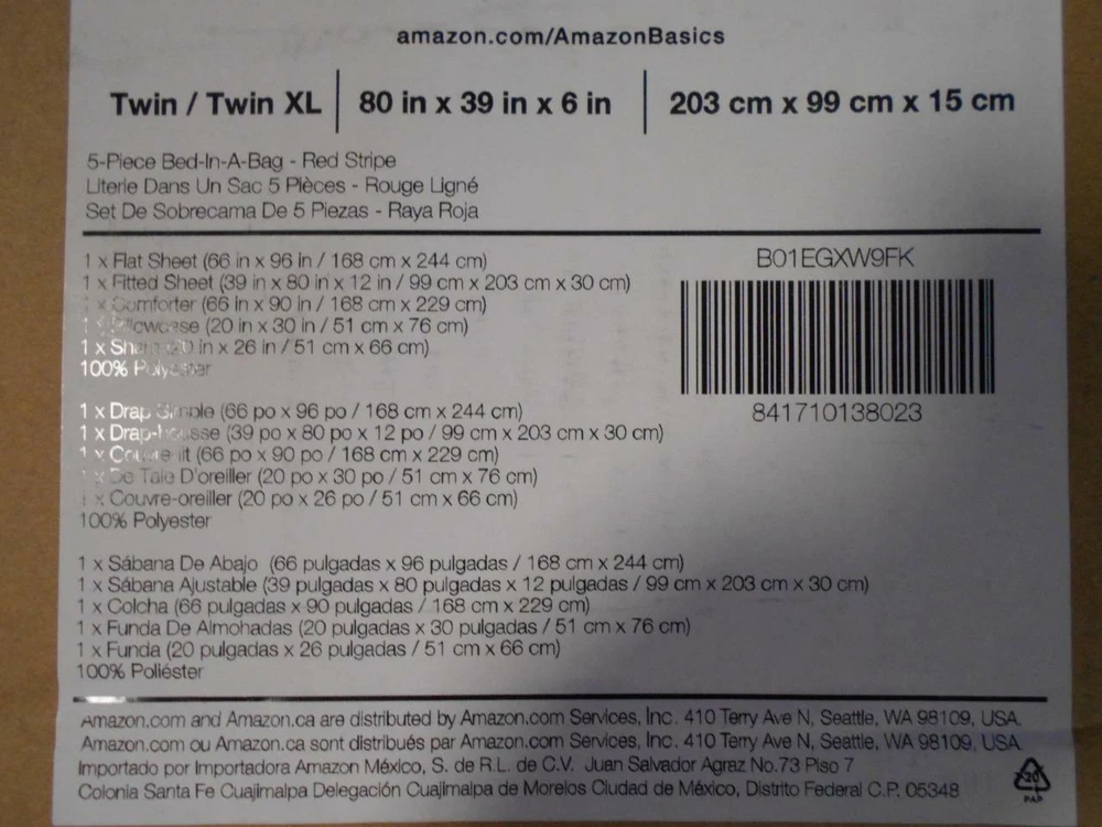 NEW!!! 5 PIECE BED IN A BAG RED STRIPE TWIN / TWIN XL 80in X 39in X 6in HERE I HAVE A 5 PIECE BED IN A BAG RED STRIPE TWIN / TWIN XL 80in X 39in X 6in . PLEASE REFER TO PHOTOS FOR COSMETIC CONDITIONS/SPECIFIC OF ITEMS. WHAT YOU SEE IN PICTURES IS WHAT YOU WILL RECIEVE. Thanks for lo O king! IF FOR WHATEVER REASON YOU ARE NOT SATISFIED WITH YOUR PURCHASE PLEASE CONTACT ME ASAP AND I WILL DO MY BEST TO MAKE IT RIGHT! SORRY, NO INTERNATIONAL TRANSACTIONS AND NO SHIPPING LARGE ITEMS TO P.O. BOXES, ALASKA, HAWAII APO, PUERTO RICO or FPO. WILL ONLY SHIP TO THE LOWER 48 STATES. I ACCEPT PAYPAL- PAYPAL CONFIRMED ADDRESS PREFERRED - I SHIP EVERY MONDAY, WEDNESDAY AND FRIDAY OF THE WEEK; PLEASE BE PATIENT - YOUR ITEM WILL BE SHIPPED AS SOON AS POSSIBLE. Get images that make Supersized seem small. THE simple solution for eBay sellers. Track Page Views With Auctiva's FREE Counter