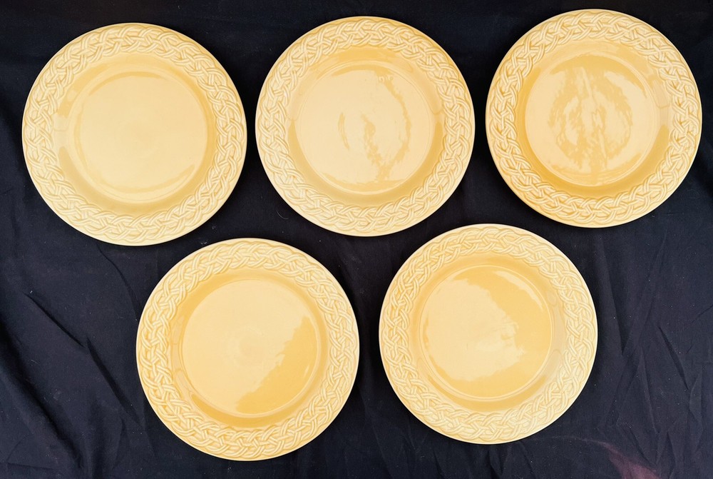 5 Pier 1 Basket weave Gold-Yellow 8” Salad Pkates Portugal EUC. Beautiful plates—no chips FAST INSURED PRIORITY SHIPPING SHIPPING LESS WEST OF ROCKIES