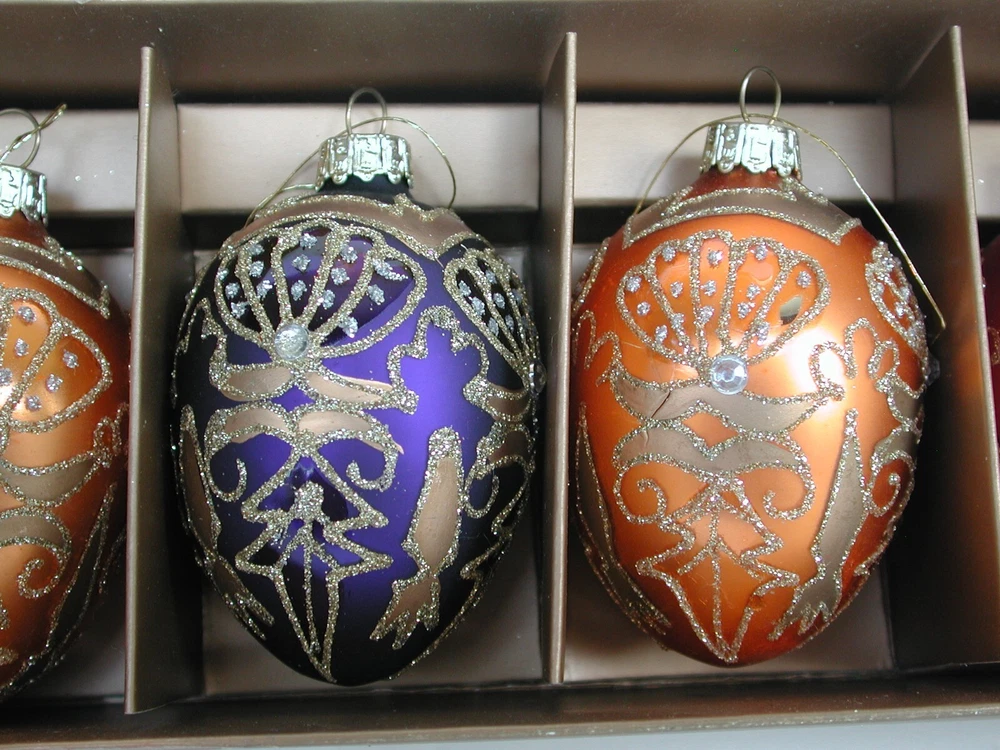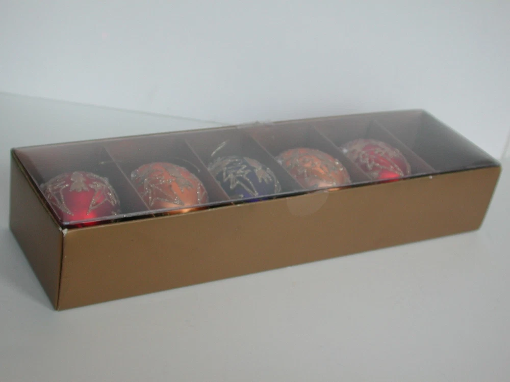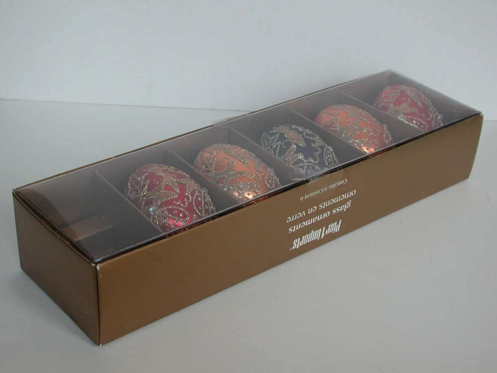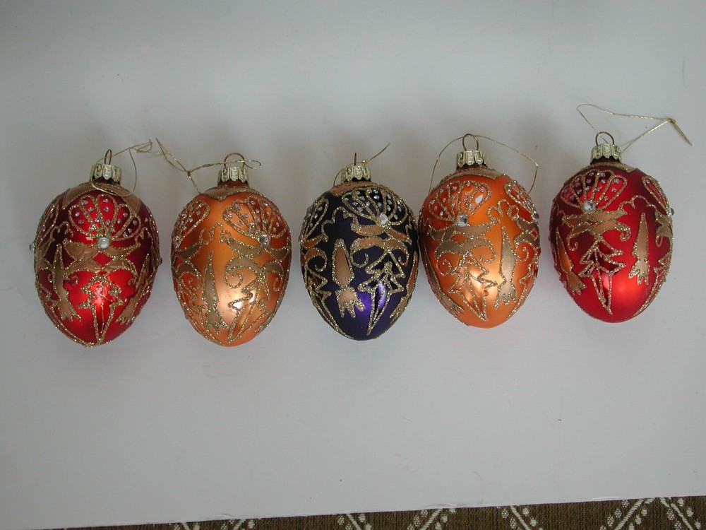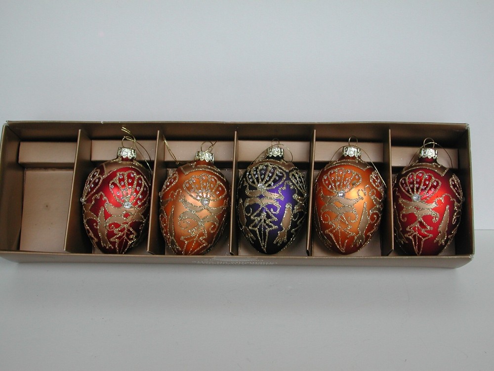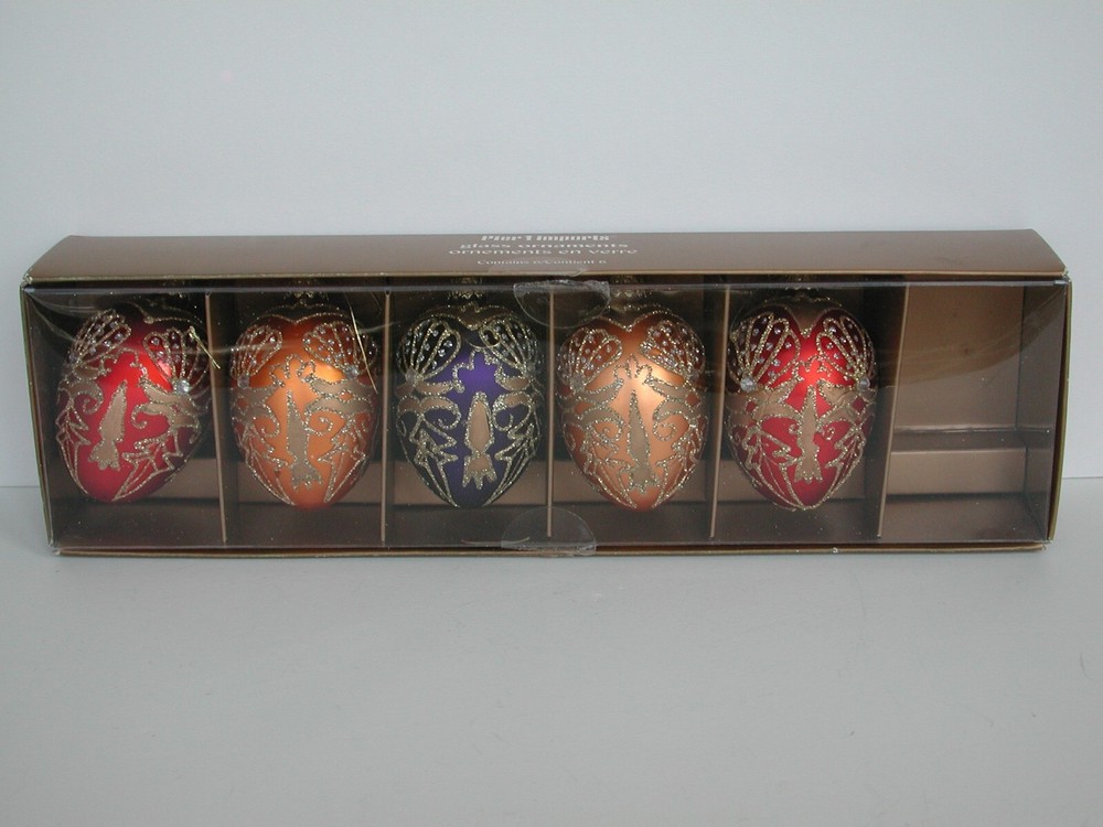 Offered for your consideration are 5 preowned Pier 1 glass egg shape Christmas ornaments which can also be used as an Easter decoration. They all have the same sparkling design which is intact on each ornament. Each is in very good condition free of any cracks and holes. They come in their original box which is great for storage. Please review all the photographs because they are considered to be part of this description. Smoke-free and pet-free environment. Please check our feedback and bid with confidence! SHIPPED IN 1 BUS INESS DAY ONCE PAYMENT IS RECEIVED. Please visit my other listings. Thank you.
