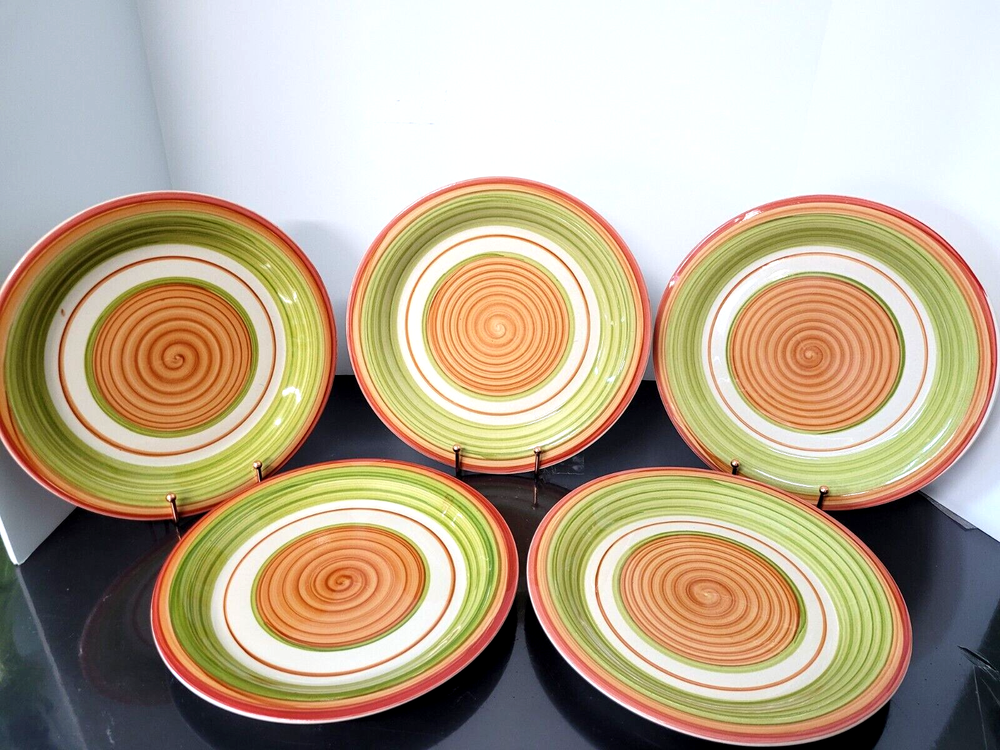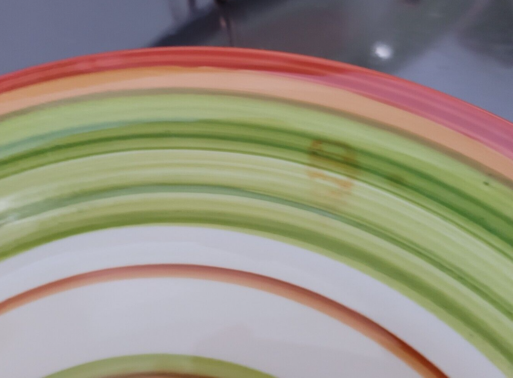These beautiful stoneware dishwasher and microwave safe dishes are hand-painted so see all pictures before purchase. There are NO crack, NO crazing and NO chips. One plate shows a drop of paint and was like that when purchased - it is under the glaze. Another plate looks like something need wiping off but...again, it is under the glaze - like that when purchased. If you are all about perfection they these would not be the plates for you . See all pictures before purchase. The 2nd and 3rd pictures show the imperfections. The other plates are fine. These are still beautiful and also stoneware so will last for a long time. I have considered the imperfections when pricing these plates. I ship within 1 business day after payment to make sure that you receive your items ASAP! Thanks for visiting my ebay shop and shopping with me. Please be so kind as to leave feedback after you receive your items, and just want to say thanks in advance. I am constantly adding new items to my shop daily, so be sure to check back often.