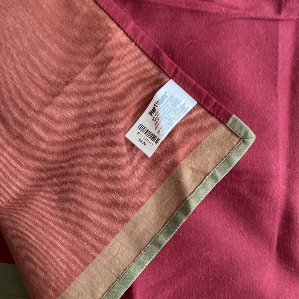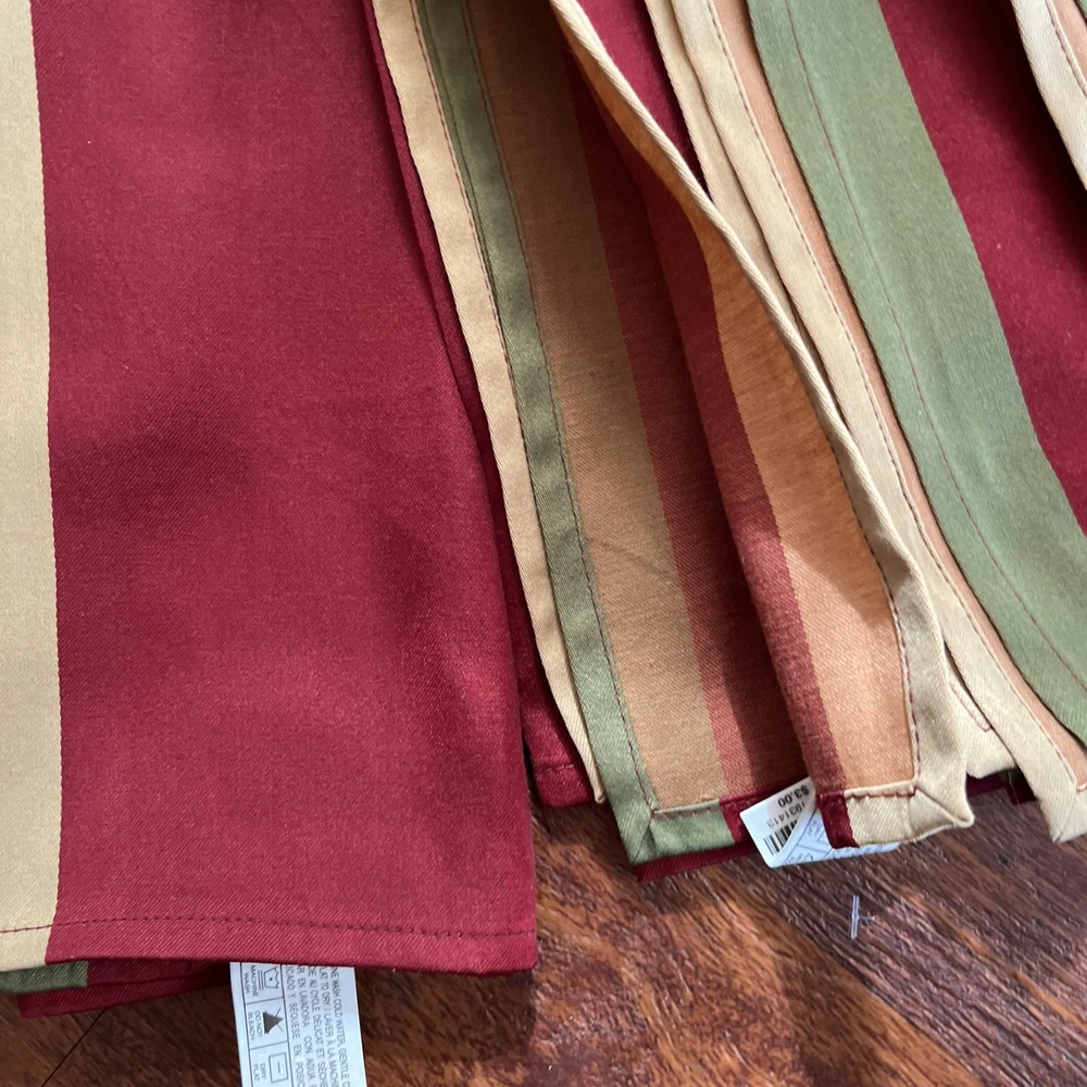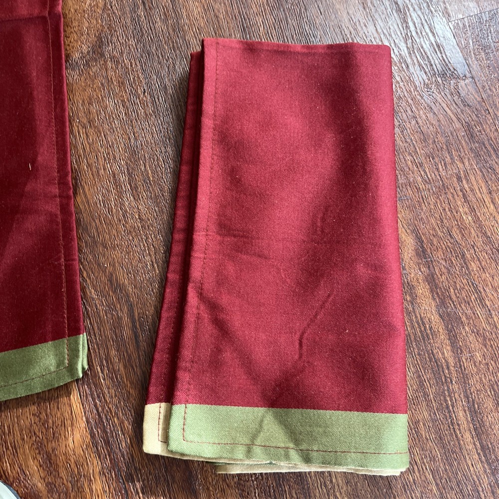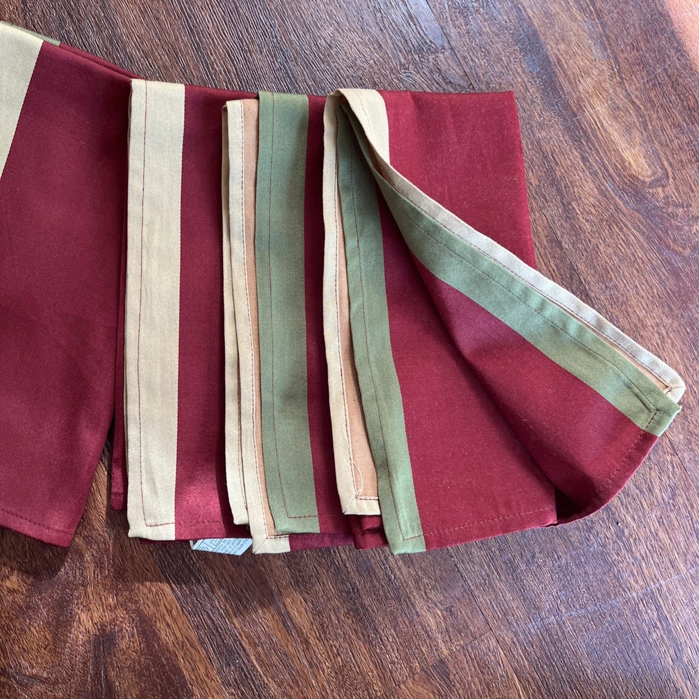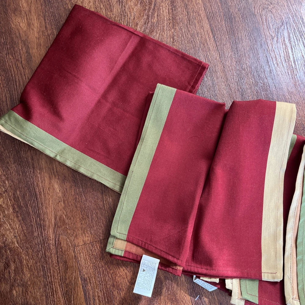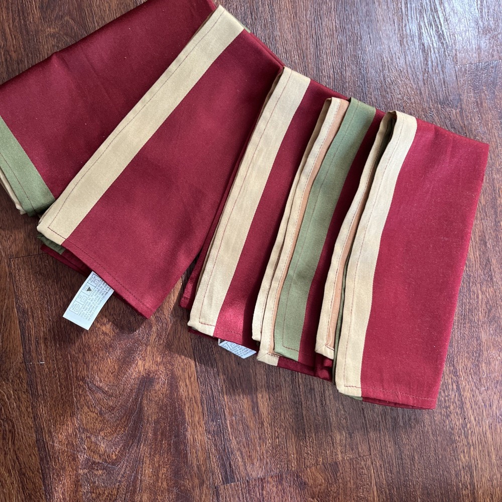 Sale is for a set of 5 napkins New with tags Pattern is called Spicy Color Block Deep burgundy red center with a stripe of green and gold at each end. All 5 are new with tags. They’re beautiful Clean, pet and smoke-free home No returns