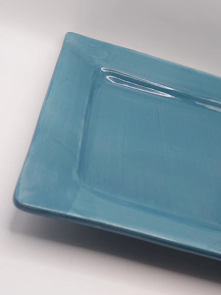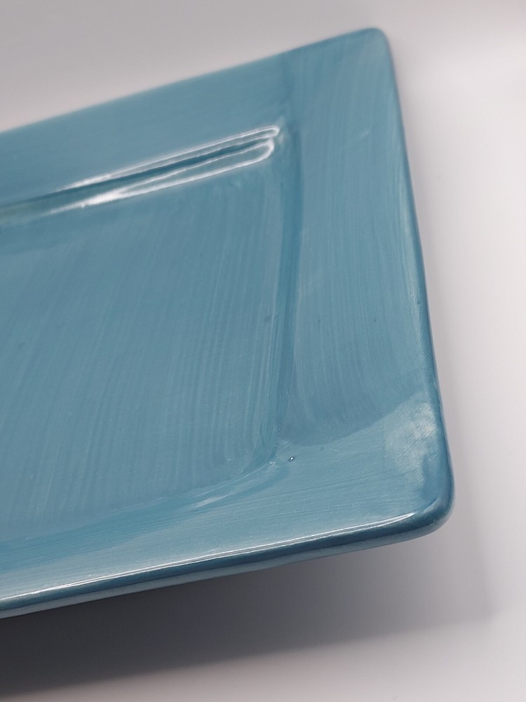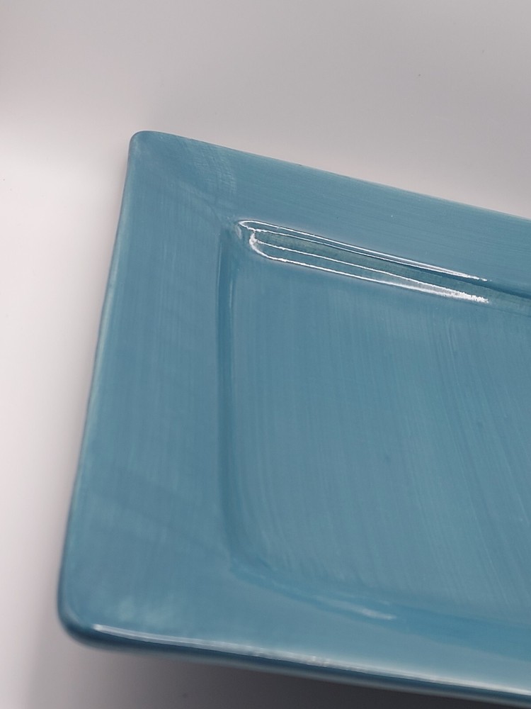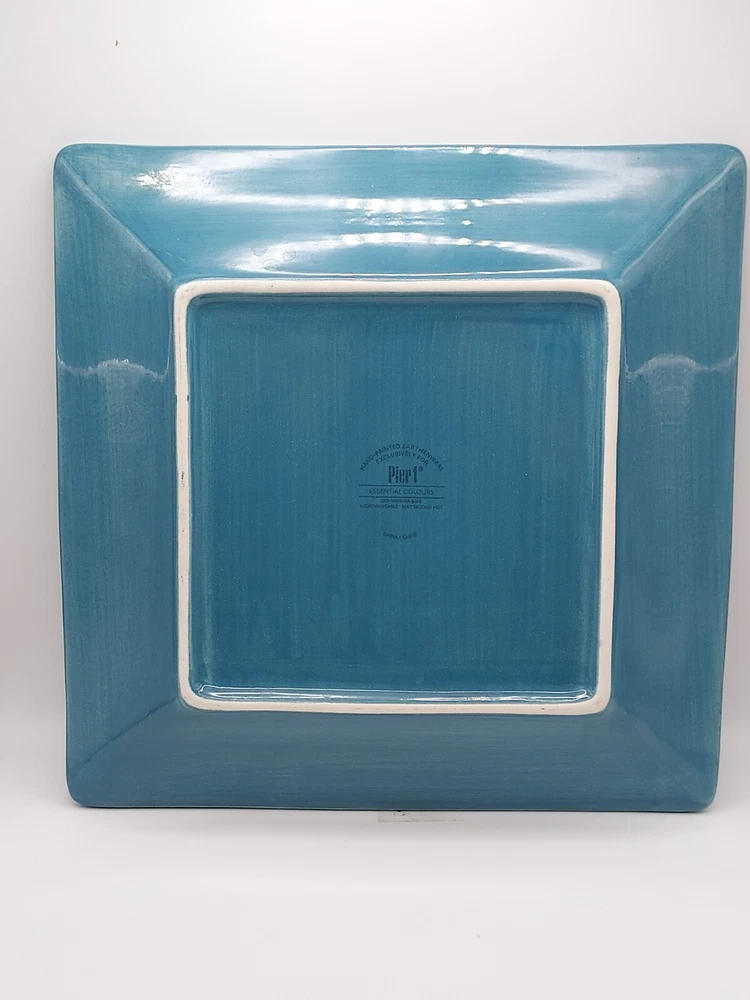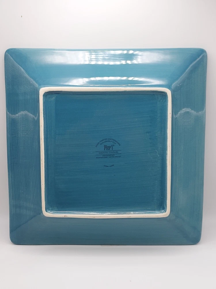 ***No chips, cracks or crazing. Utensil marks consistent with age.. 1 small chip on rim as noted in pictures.*** Elevate your dining experience with the chic Pier 1 Imports Essential Colours Teal square dinner plates. Each plate measures 10.5 inches and showcases a serene teal blue hue that brings a touch of the ocean's tranquility to your table setting. Crafted from high-quality earthenware, these plates are both dishwasher and microwave safe, ensuring practicality alongside their stylish appearance. The set's contemporary design, featuring a smooth, undecorated rim, offers a clean and sophisticated look for any occasion. Whether you're hosting a formal dinner or enjoying a casual meal, these hand-painted plates from the 2012-2014 production line add a unique flair to your dining ensemble. Complete your collection with this five-piece set and make every meal a moment to cherish. 99.9% of the items we sell on the eBay platform are purchased 2nd hand. Although we clean all our products prior to posting, items may have been subject to a non-pet/non-smoke free environment. We go to great lengths to ensure items arrive safely, including insuring all of our shipments via USPS. If any of your items arrives damaged, buyers agree to provide clear photos of the item damage and its packaging in order for sellers to process a claim. Until the claim is resolved, buyer agrees to retain the mailing box; including any damaged items, the wrappings, packaging, and any contents that were received. If requested by USPS, buyer agrees to present the mailed article and all wrappings, labels, and available contents for inspection at a local Post Office. Thank you for supporting small business!
