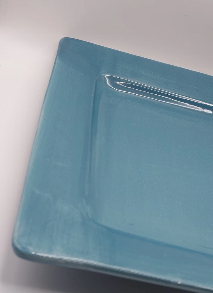 Elevate your table with these stunning Pier 1 Imports teal square plates! The rich aqua blue color adds a pop of coastal charm, perfect for everyday meals or special occasions. Despite minor utensil marks and one small chip (clearly shown in pics), they’re in great condition—durable, microwave-safe, and dishwasher-friendly. The 10.5" size is ideal for generous portions while keeping presentation stylish. A must-have for anyone who loves vibrant, functional dinnerware!