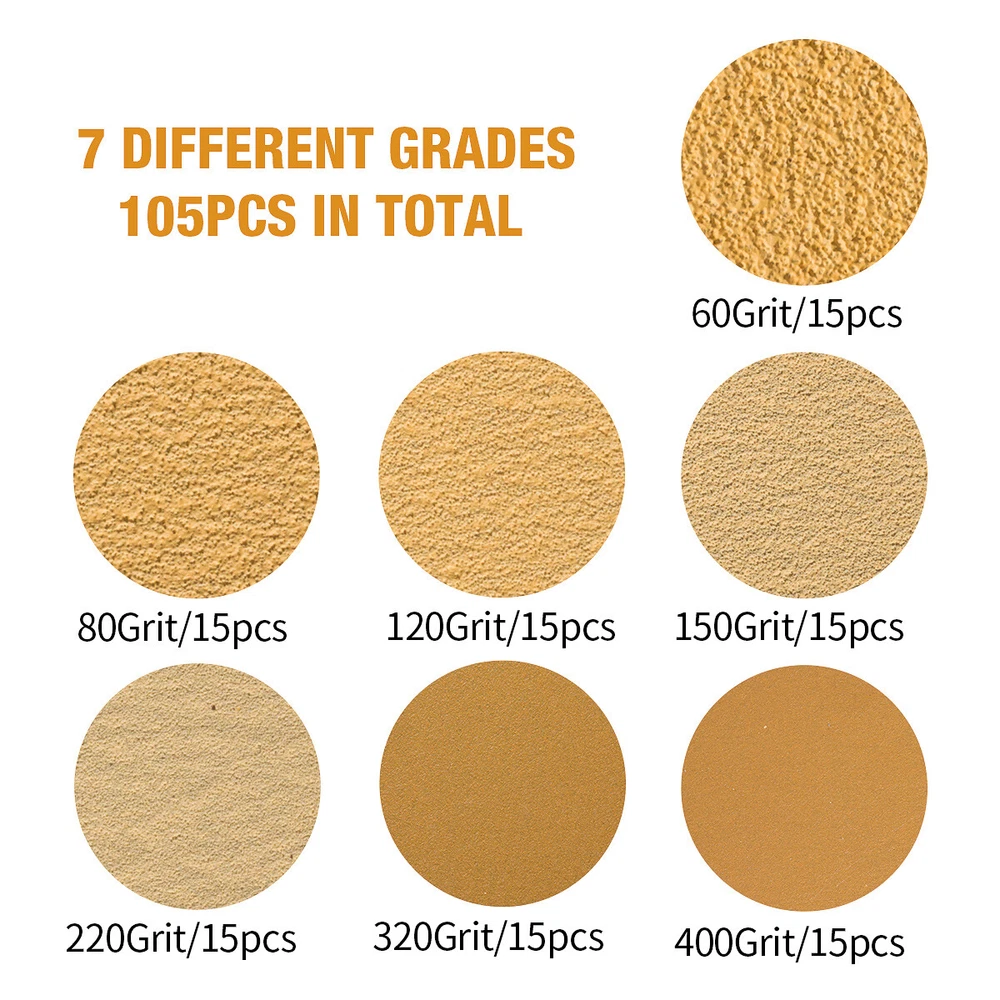 Store Categories Store Categories Cut-Off Wheels&Grinding Wheels Sanding Belts Flap Discs Quick Change Discs Surface Conditioning Discs Hook & Loop Sanding Discs Paper Discs Latex Saturated Paper Discs Film Discs PSA Sanding Discs & Rolls Detail Sander Sandpaper Sandpaper Sheets Sanding Sponges Resin Fiber Discs Flap Wheels Sanding Sleeves & Drums Set Sharpening Stones Benchstones Waterstones & Whetstones Knife Sharpener Drill Bits Other 105/100/50/20 Pack 5 inch 8-Hole Hook and Loop Sanding Discs Orbital Sander Paper for Auto Body, Paints, Lacquers Overview Trust the special gold aluminum oxide of this Hook and Loop Sanding Discs to quickly deliver a consistent finish even with long-term use. An open coat, water-based stearate and No-Fil coating greatly reduce loading, while the hook and loop back with long silk flannelette makes disc replacements easy, quick and not fall off when installed in use. With a flexible, fiber-reinforced C-weight latex backing that resists tears, this hook and loop sandpaper disc is ideal for dry hand sanding of auto body , paints and lacquers. Features of SATC Gold Sanding Discs ️ Anti-Clog Zinc Stearate Coating: Gold features a semi-open and special zinc stearate coating designed to resist clogging and pill forming, which helps achieve optimal sanding results and high efficiency ️ Sharp Aluminum Oxide Abrasive: Made with sharp aluminum oxide abrasive which provides increased life, fast cut rate, consistent finish ️ Heavy Duty C-Weight Latex Saturated Paper Backing: Unique fiber reinforced, flexible C-weight latex saturated backing sandpaper allows you to sand contours and difficult-to-reach parts of your workpiece and helps increasing tear strength while retaining flexibility ️ High Strength Resin Over Resin Bonding: High strength resin bond system provides superior grain support, resist heat and humidity for longer life. Never leave your furniture gold ️ Strong Fasteners and Easy Attachment: The heavy duty C-weight latex paper is bonded with cloth using long silk flannelette, which promises great sticking ability and makes disc replacements easy and quick, but will not fall off when installed in use Why is Gold more expensive than Red discs ️ Gold features an anti-clog coating resists clogging and pill forming ️ Gold features the s e lected and s p e c i a lly p r ocesse d aluminum o x i d e abrasive w h i c h is NOT the same with Red, d elivering much f a ster cut r ate ️ G old features a r e inforce d and fle xib le latex paper backing, which is MUCH MORE tear-resisitant and soft than the n ormal p aper b acking of Red, delivering much longer lifespan than Red ️ Gold also works well on Ca r while Red CAN NOT be used for auto body ️ P rodu ction of Gold c osts t wice as m uch as Red Works Well On Painting Stripping Removal Painting Sanding Lacquers Plaster / Putty Body Filler Primer Veneer Polyurethane Composites Hard Wood MDF/HDF Soft / Resinous Wood Auto Use of Gold Sanding Discs Grit 60-80: For stripping paint to metal Grit 80-320: For smoothing and shaping body filler Grit 400: For Fine Sanding Before Sprayinig on Primer and Paint Coat Package Included Item 1: 100 Pack, 60/80/120/150/220 grit assorted, 20pcs of each grit Item 2 : 105 Pack, 60/80/120/150/220/320/400 grit assorted, 15pcs of each grit Item 3: 50 Pack, 60/80/120/220/320 grit assorted, 10pcs of each grit Item 4 : 50 Pack, 80 Grit Item 5 : 50 Pack, 100 Grit Item 6 : 50 Pack, 120 Grit Item 7 : 50 Pack, 150 Grit Item 8 : 50 Pack, 180 Grit Item 9 : 50 Pack, 220 Grit Item 10 : 50 Pack, 320 Grit Item 11 : 50 Pack, 400 Grit Item 12: 50 Pack, 800 Grit Item 13 new product: 20 Pack silicon carbide wet or dry sanding discs 3000/4000/5000/7000/10000 Grit assorted, 4pcs of each grit (item 13 black silicon carbide sanding discs are ideal for a utomotive blending, polishing, finishing, precise instruments, electronic devices, metals, alloys, car headlight restoration, mirror surface treatment, painted surfaces) Item 14 new product : 1 Pack Soft Interface Pad ( item 14 Soft foam interface pad is d esigned to sit between the backing pad and the sanding disc to provide the flex needed for contour and close edge sanding, Creates extra cushion for precision sanding, Reduces Vibration) Item 15: 50 Pack, 60 Grit Shipped same-day from Hebron via USPS or UPS with tracking About SATC Payment Shipment Returns Policy Customer Service About SATC SATC is a professional manufacturer of abrasive tools since 1990. We exceedingly focus on product quality and customer e xperience, committed to providing customers with the most cost-effective products and first-class services. Payment PayPal Preferred: Credit or debit card through PayPal Shipment Every item is eligible for Free Shipping Shipment within 1 b usiness day Most items ship via USPS First Class, USPS Mail and UPS Surepost International / Alaska/Hawaii/US Protectorates/APO/FPO/PO Bo x Shipping is not supported for now Returns Policy 30-day no-hassle return policy on unopened, unused items Select the item you want to return and choose the appropriate reason code Please keep the label on the package or it may be difficult for the warehouse to identify the item Customer Service Quick response within 24 hou rs If you have any questions about product details and usage, please feel free to contact us Copyright © SATC ABRASIVES