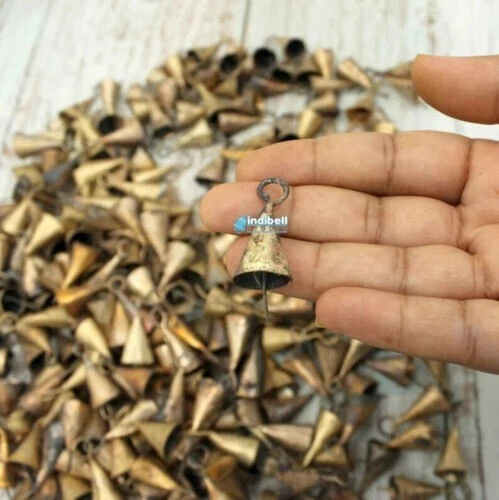Small is beautiful, these Cute, Tiny, Little, Small Adorable Rustic Cowbells are fun. Use the Chime Bell to make your own wind chime or hanging bells ornaments this season. These are perfect old world farmhouse bells that can transform any DIY project you are doing. These Rustic bells and chimes goes together very well. This small round bell DO NOT have much sound but are great pieces for Christmas decorations.. ---------------- Measurements - 1.2 Inch - The approx. height of the bell including top loop. 0.6 Inch - The widest part of the bell. 2 Grams - The approx. weight of each bell. Rustic Gold - Color of the bell. Iron - Body of the bell. Iron - Material of the striker. - These bells are handmade, so every bell might have a slightly different shade of color, shape and sizes. - If the listing is missing any specific view of the product that you would like to see, you may please let me know. I shall provide it to you. Materials: Iron, Rustic Golden Height: 1.2 inches Diameter: 0.6 inches