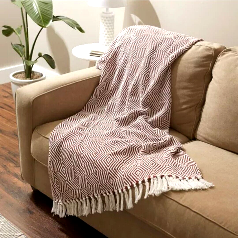 Check out all our Throw Blankets up for sale this week. Click here to check out our Ebay Store Highlights 100-percent Cotton throw measures 50 x 60-inches finished with a 3-inch fringe. Classic look with a modern twist. Decorative fringe added for the perfect finish that won't unravel in the wash. This throw has a very chic and trendy look, throw over a couch, chair ottoman or bed to add a splash of color and provide warmth on a cold night. Use these throw blankets to stay warm, as a decor piece, over a chair or couch, to wrap housewarming gifts, as a picnic blanket, when camping or give as a gift. Machine wash with like colors in cold water, gentle cycle. Tumble dry on low. Wash before first use. Number of Pieces: 1 Dimensions (Overall): 50 Inches (L), 60 Inches (W) Fabric Name: Woven Textile Material: 100% Cotton Fabric Weight Type: Lightweight Fabric Care and Cleaning: Machine Wash, Tumble Dry