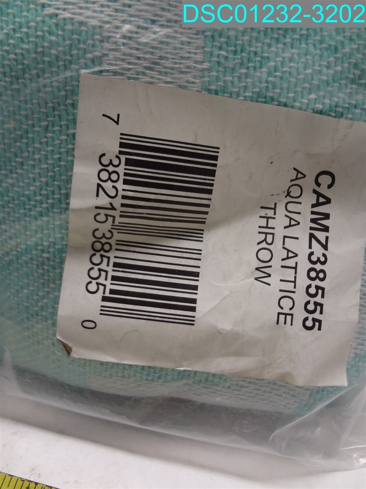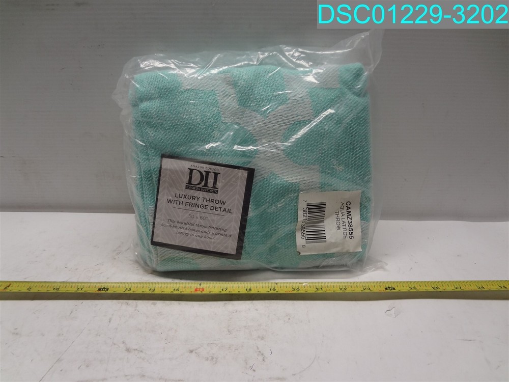 This item is:____________________50" x 60" Lattice Throw Blanket Aqua Design Imports CAMZ38555 738215385550______________________________________________ This item is new, however, it may have scratches and marks from handling. See photos. Includes only what is shown in the picture. 1013 Warehouse Location:__Warehouse #2 Shelf____________34131 BOX 16660__________________ Sales tax will be added to items shipping to locations in Kansas. _____________________________________________________________________ _____________________________________________________________________ _____________________________________________________________________ By bidding and or purchasing this item(s) you (the buyer) agree to the following terms and conditions: 1. An item is defined as the following: The unit or units purchased in the ebay listing, (it could be a single unit, multiple units, a mixture of units, a variety of units, the incorrect unit or any combination of units not mentioned). It also includes the packaging, or lack thereof, the shipping label, and any contents place in the package by error. 2. The Seller is defined as seller and/or consigner. 3. The buyer is defined as the entity that purchased the item from seller and/or consigner. 4. If the buyer does not agree to these terms and conditions then do not purchase from us. 5. All items are sold AS IS No warranty or liability is expressed or implied. 6. The buyer agrees that: All items are shipped without insurance. It is the responsibility of the buyer to let us know if they want insurance on the item. Insurance cost is $2.00 for every $50 insured, in $50 increments. The buyer agrees that if no insurance is purchased and the item is not received or received damaged that no claim shall be brought against the seller. 7. We only ship to PayPal confirmed street addresses, no exceptions. No PO Boxes, APO, FPO or similar addresses. 8. The buyer agrees that the sale is considered complete once the carrier has picked up the item from the seller. 9. The buyer agrees that if there is a dispute that arises that the dispute will be settled in the State of Kansas under the laws of Kansas. 10. The buyer agrees that the item fits the buyers purpose prior to bidding. 11. The buyer agrees to indemnify and hold harmless the seller from any and all claims arising out of any conditions or defects for the item or items that they purchased 12. We only ship to the continental United States. The shipping price quoted is for the continental United States Only. All other locations will be charged extra. Out of county buyers agree to pay any additional charges that we ask them to pay including but not limited to import duties, shipping costs, packaging costs, time costs, and other costs. If the item is shipped via ebay global shipping program these terms and conditions still apply. 13. Claims made against the carrier for non-delivery, lost in transit or any other reason shall be made solely by the buyer without aid from the Seller. 14. In the event that any clauses or phrases contained here within are ruled out by a judge, the law, a lawyer, jurors, and or any other entity all others remain in effect. 15. If any claim is brought against the Seller the buyer agrees to pay for any and all costs including legal fees, travel, time, accommodations, and other costs. Late payment will result in the seller charging interest at the maximum legal rate. 16. In any event or circumstance the maximum liability to the Seller is the purchase price plus cost of shipping plus sales tax if applicable. This amount is not subject to inflation, interest, inconvenience fee or any other price adjustment. 17. The buyer agrees there will be no refunds for any reason outside of the Ebay return policy. 18. The buyer understands that our items are wholesale, overstock, unclaimed, foreclosure purchase or salvage goods. Most boxes have been opened for inspection and photos. If items are listed as new they may not come with original packaging. 19. The buyer agrees that they are trained, licensed, qualified, and understand how to properly use, dispose of and handle the product in accordance with law and regulations. 20. The buyer agrees that if any part of these terms and conditions is determined to be void that it does not void or alleviate the enforcement of the remainder of this contract. 21. seller and/or consigner is not an authorized distributor, reseller or representative of the products featured on this website. All product names, trademarks, brands and logos used on this site are the property of their respective owners. The depiction, description or sale of products featuring these names, trademarks, brands and logos is for identification purposes only and is not intended to indicate any affiliation with or authorization by any rights holder. 22. Items returned for any reason will incur a restocking fee.