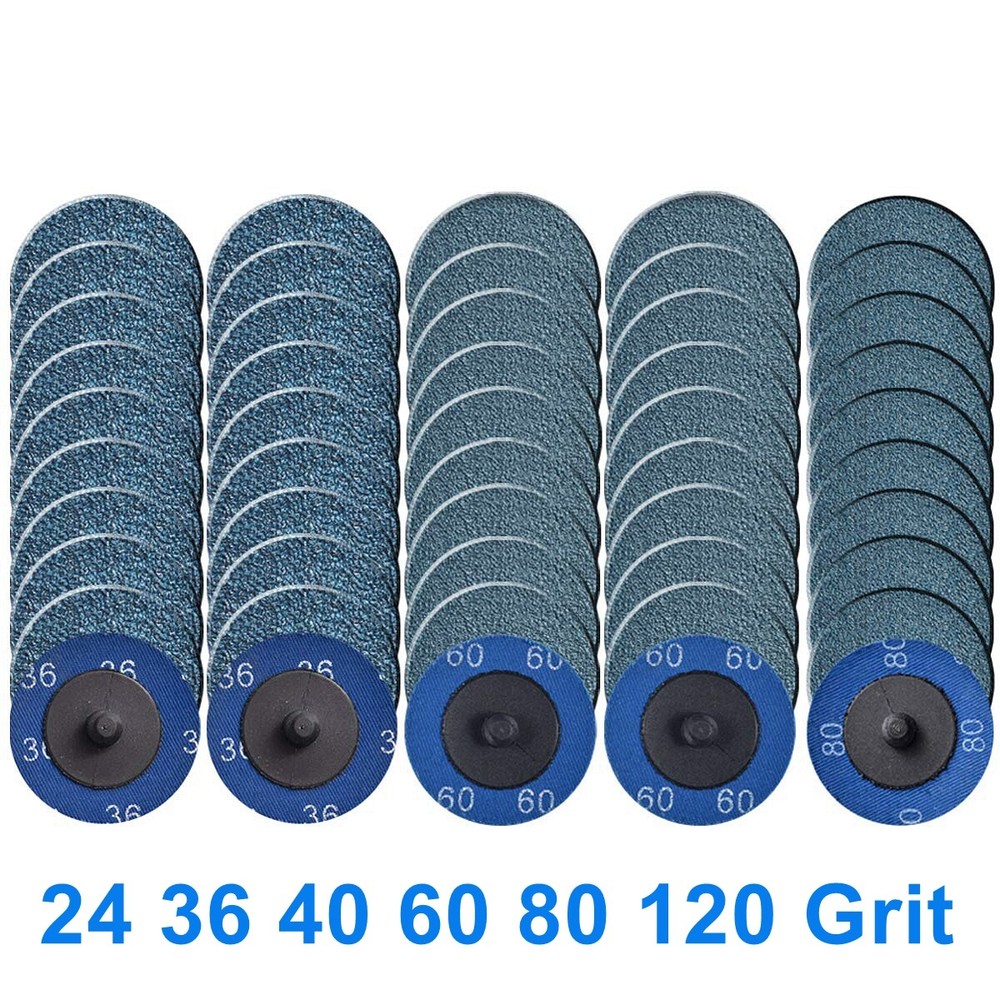 50X 2 inch 36 40 60 80 Grit Zirconia Roll Lock Sanding Grinding Disc Die Grinder Works Well On Stainless steel, alloy, iron, non-ferrous materials, fiberglass/composites, plastics R ecommended Grit Choice 24 and 36 Grit: Aggressive grinding, weld blending, deburring 40 and 60 Grit: Medium grinding, deburring 80 Grit: Light grinding, deburring, cleaning, finishing 120 Grit: For cleaning, finishing, detailing Machines Die Grinder, Small Right Angle Grinders, Air Grinding Tools, 1/4" Drills Specifications Disc Type: Quick Change Disc Abrasive Material: Zirconia Alumina Backing Material: Polyester Cloth Backing Weight: X-Weight Bonding: Resin Over Resin Attachment Type: TR (Plastic Button) Twist Roll Lock Diameter: 2 inch Maximum RPM: 25,000 Grit: Select from 36 / 60 / 80 / 120 Quantity: 50 Pack