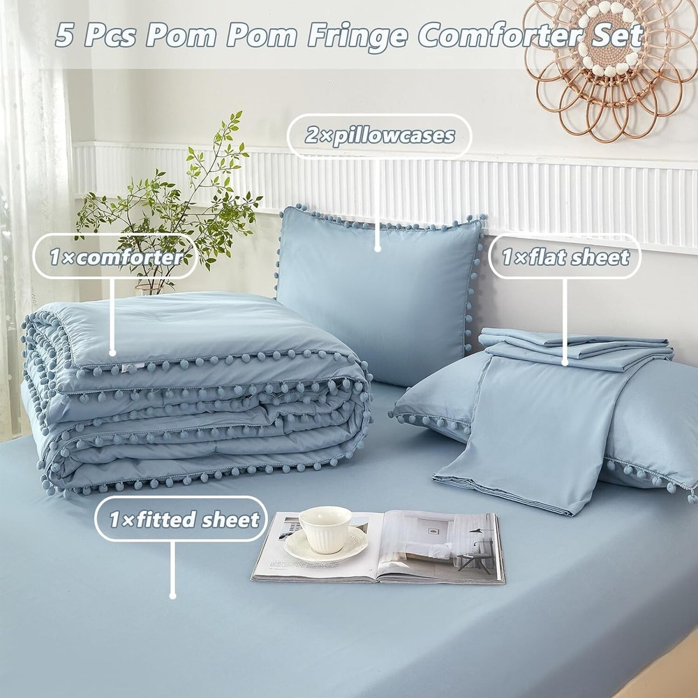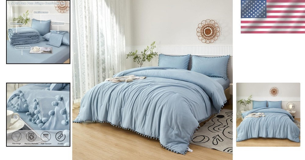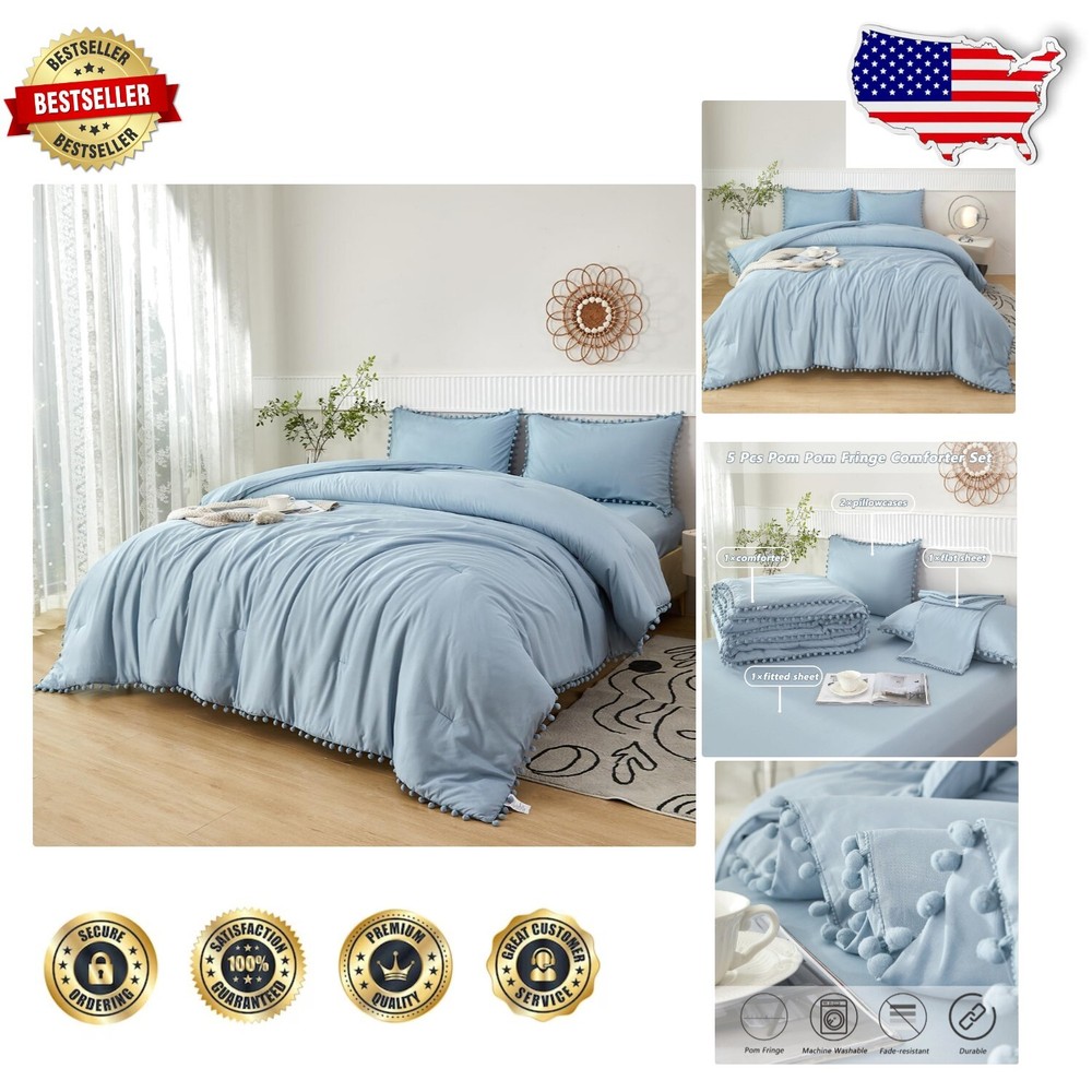 5-Piece Full Size Pom Pom Comforter Set in Grayish Blue - Perfect for Kids ‹ › ‹ › ‹ › ‹ › ‹ › ‹ › ‹ › ‹ › ‹ › 5-Piece Full Size Pom Pom Comforter Set in Grayish Blue Transform your child's room into a cozy haven with this delightful 5-Piece Full Size Pom Pom Comforter Set in a charming grayish blue hue. Perfect for kids, this comforter set promises to blend fun with sophistication! Features: Pom Pom Design: Handmade pompoms add a playful touch, enhancing your decor with a whimsical flair while promoting a serene atmosphere for a restful sleep. Bed in a Bag: Uniform styling with matched color throughout, including the intricate stitching and fitted sheets ensures your room has a cohesive appearance. The fitted sheet features a deep pocket design (16 inches) that snugly wraps around your mattress. Soft Material & Thickened Filling: Crafted from premium microfiber polyester, the smooth surface invites comfort. Thickened filling ensures warmth in winter while remaining lightweight and breezy in summer. Full Size Package Includes: A complete set featuring a pom comforter (79x90in), two envelope pillowcases (20x30in), a solid color fitted sheet (54x75in + 16in), and a flat sheet (81x96in) – a harmonized color combination perfect for any room. Care Instruction: This comforter set is machine washable on a gentle cycle with cold water. Tumble dry low for best results, ensuring it retains its plushness. Note: May arrive wrinkled due to vacuum packing; fluff in a low heat dryer to restore fullness. Benefits: Elevates the aesthetic of any room with its unique yet sophisticated design. Provides luxurious comfort for a restful night's sleep. Includes everything you need to outfit a full bed, making it a practical choice. Durable and easy to maintain for parents who value quality and convenience. Why Choose This Comforter Set? This Pom Pom Comforter Set is more than just bedding; it’s a statement piece that fosters a joyful environment for your child while ensuring comfort and warmth year-round. Its thoughtful design makes it not only a decorative piece but also a comforting sanctuary for restful nights. Elevate your child's bedding experience today and invest in a set that promises better style, better value, and better sleep. Shipping Free & Fast Shipping - We offer free shipping to most of the USA with a normal delivery time of 3-7 days. However, due to the current situation, additional delivery time (up to 3 weeks) may be required for some items. Alternative Carriers - We may use alternative carriers (e.g. USPS, FedEx, UPS, etc.) to ensure your package arrives safely and on time. Due to the use of multiple carriers, we are unable to provide a tracking number automatically. Handling Time - Orders are processed and shipped within 1-2 business days of receiving cleared payment. Shipping Restrictions - Shipping to Alaska, Hawaii, Puerto Rico, Guam, and other US territories may incur shipping charges or delivery restrictions. Please contact us before ordering, or your order can be refunded/cancelled. State Restrictions - There may be restrictions based on your state of purchase. For example, certain items may not be shipped to California due to state regulations. Contact for Tracking Updates - If you require tracking updates or have any concerns about the delivery of your order, please feel free to contact us, and we will be happy to assist you. Return 30-Day Hassle-Free Returns - We want you to be completely satisfied with your purchase. If you are not, you can return the item within 30 days of receiving it for a full refund or exchange. Easy Return Process - To start a return, simply contact us and we will provide you with a prepaid return shipping label and detailed instructions. Restocking Fee - There are no restocking fees for returns. However, the buyer is responsible for return shipping costs if the return is not due to a seller's error. Refund Processing Time - Refunds will be processed within 5 business days of receiving the returned item in its original condition. Payment We accept all major credit cards, PayPal, and Apple Pay for your convenience. Your payment information is secure and encrypted to ensure a safe and seamless transaction. Please complete your payment within 3 days of purchase to avoid any delays in shipping. Feedback Your feedback is extremely important to us. We strive to provide the best products and customer service possible. If you are satisfied with your purchase, please take a moment to leave us a positive review. If you have any concerns or issues with your order, please contact us before leaving negative feedback. We are committed to resolving any problems and ensuring your satisfaction. Contact Us If you have any questions or concerns, please feel free to reach out to our customer support team. You can contact us through the eBay messaging system. We are available Monday to Friday, 9:00 am to 5:00 pm EST, and we will do our best to respond to your inquiry within 24 hours. Buy it now and enjoy a pleasant shopping experience! UPC: Not Set Model: Not Set Set Includes: Comforter,Fitted Sheet,Flat Sheet,Pillowcase Material: Microfiber,Polyester,Polyester Blend Character: Not Set Features: Breathable,Lightweight,Ultralight Theme: Pom Pom Care Instructions: Do Not Bleach,Machine Wash Cold,Tumble Dry Department: Kids Room: Bedroom Labels & Certifications: Not Set Size: Full Type: Comforter Set Brand: Unbranded Color: Grayish Blue Fill Material: Polyester Pattern: Solid Item Width: Not Set Item Length: Not Set MPN: Not Set Character Family: Not Set Number of Items in Set: 5 Insulation: All Seasons Style: Shabby Season: All Country/Region of Manufacture: Not Set Closure Type: No Closure Thread Count: 200 or Less Drop Length: Not Set GSM (Grams per Square Meter): Below 150 Product Line: Not Set Personalize: Not Set