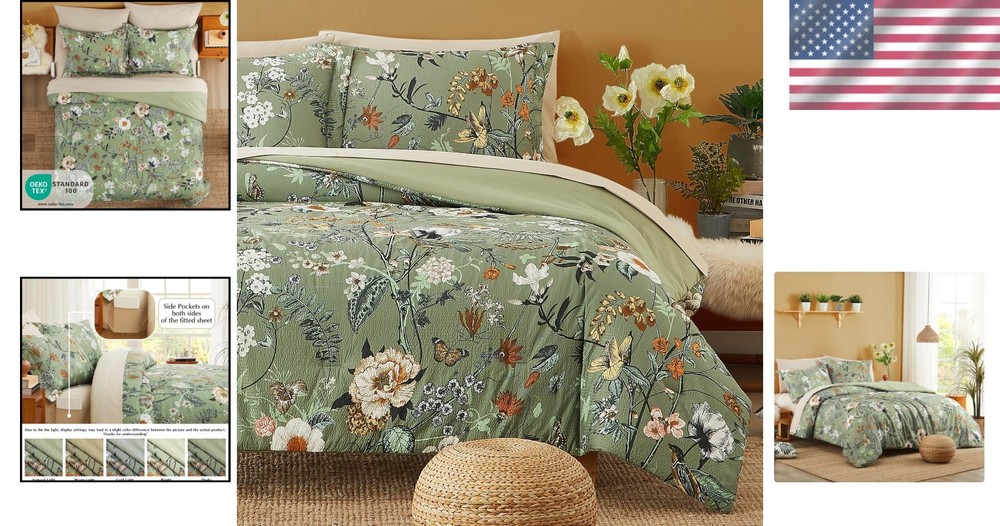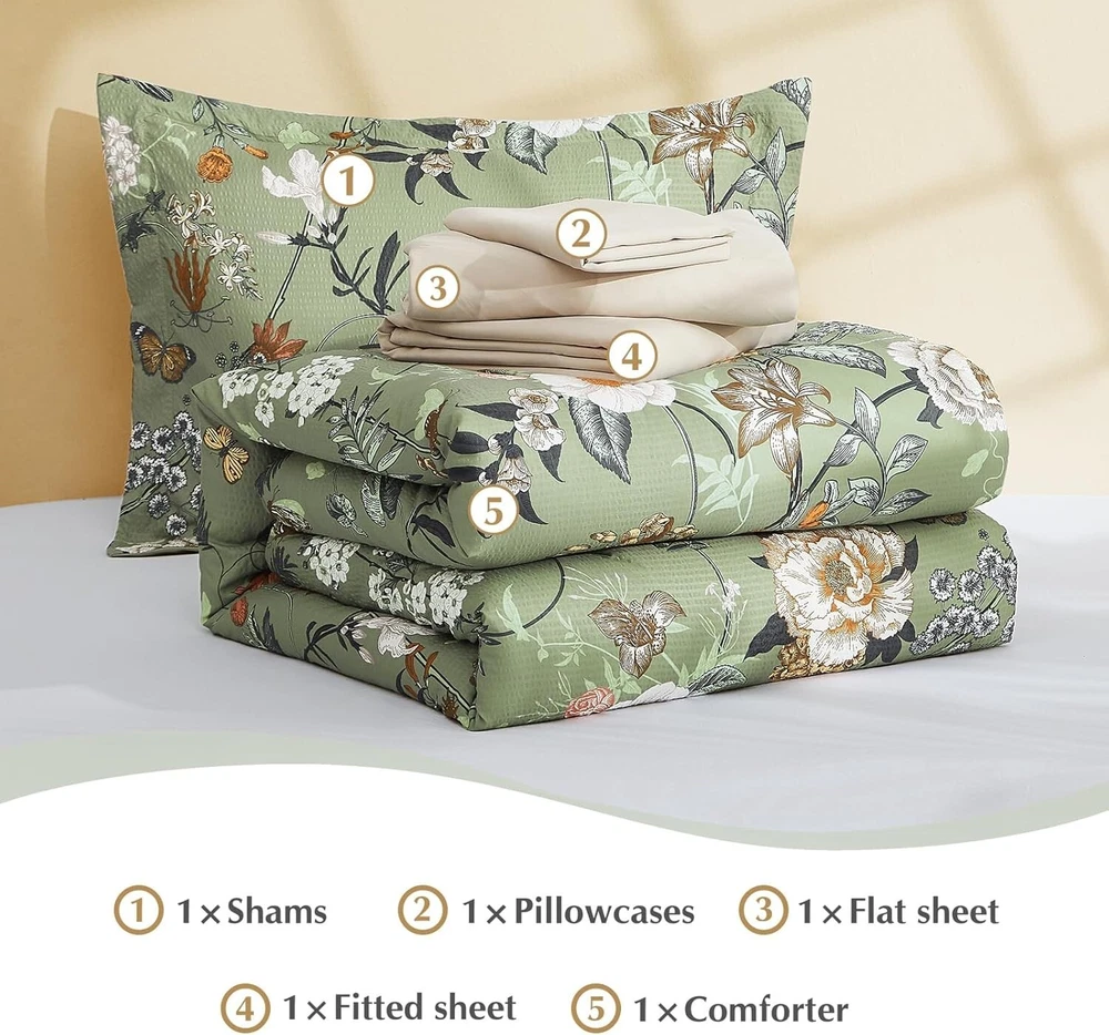 This comforter set is absolutely gorgeous—the floral and butterfly design is so vibrant and charming! The seersucker fabric feels soft and cozy, perfect for a comfortable sleep. The 5-piece set gives great value, and the farmhouse style adds a sweet, relaxing touch to my bedroom. Love it!