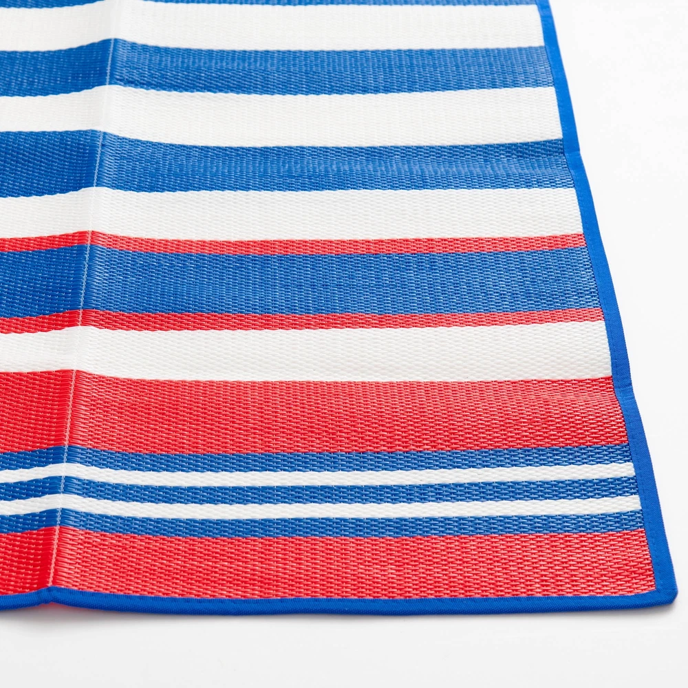 Bring bright color and modern design to your outdoor adventure, and make any space feel like your own personal oasis with the Mainstays 5ftx7ft Red, White, and Blue Stripe Beach Mat. Lightweight and easy to clean, this colorful mat is the perfect piece to jazz up your spot at the beach, campsite, or park. Classic stripes of red, white, and blue decorates a busy playroom without fear of fading or staining, or make the outdoors feel a bit more like home with this versatile, durable piece. Easily sweep or rinse off this beautifully woven olefin mat, made with stain resistant and fade resistant properties for long-lasting quality and design. Whether you’re packing up your camper for an outdoor adventure, enjoying a picnic in your backyard or headed to the beach, this piece is sure to brighten things up! For indoor or outdoor use. ! For indoor or outdoor use. On Mar 26, 2025 at 23:35:17 PDT, seller added the following information: