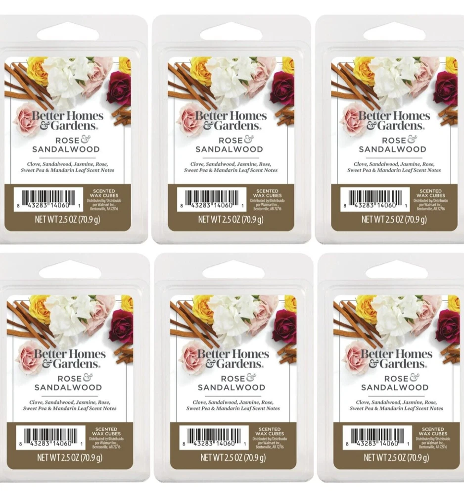 6 PACK Better Homes & Gardens Rose & Sandalwood Scented Wax Melts 2.5oz...