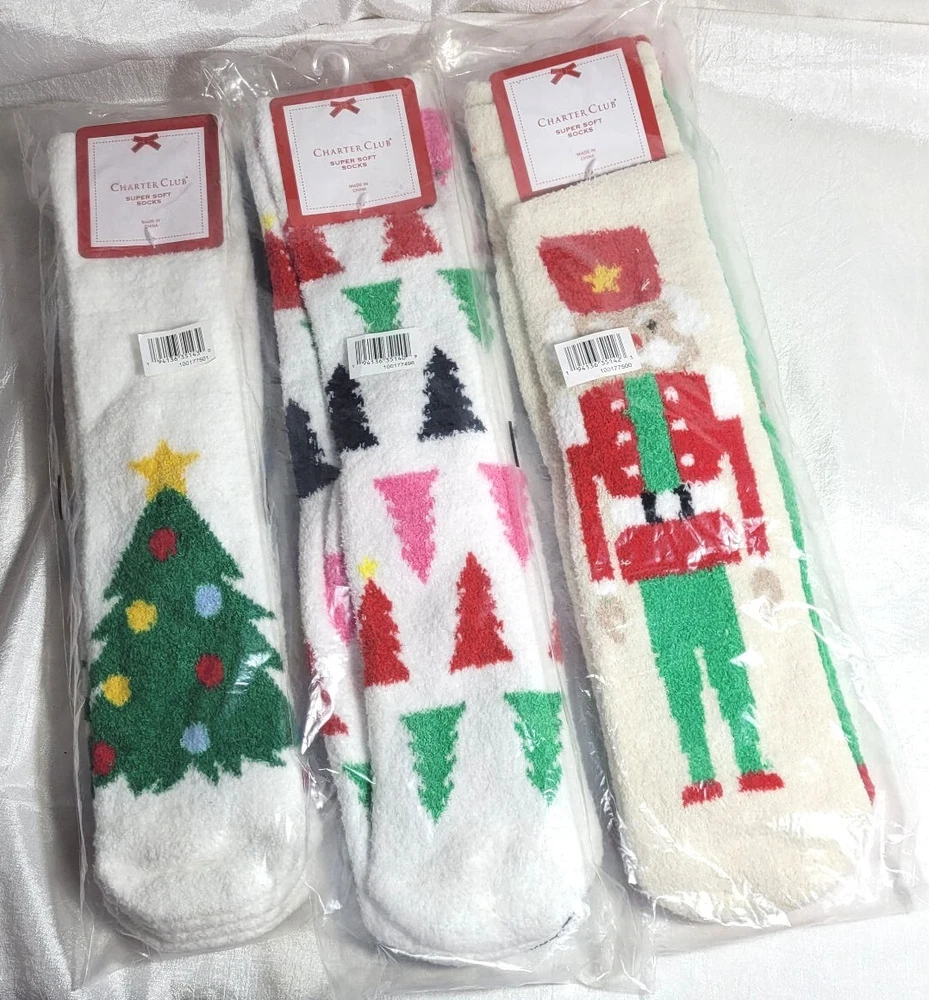 6 Pairs Macy's Charter Club Super Soft Cozy Holiday Christmas Crew Socks Fit: Shoe size 6-10, Sock size 9-11 99% Polyester, 1% Spandex...