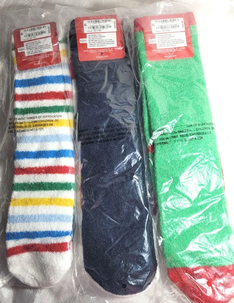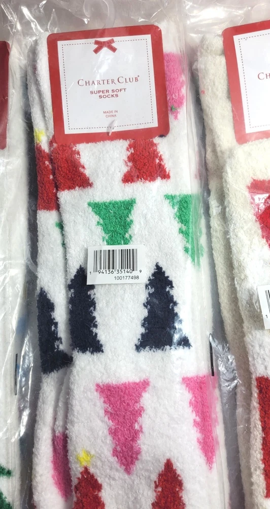6 Pairs Macy's Charter Club Super Soft Cozy Holiday Christmas Crew Socks Fit: Shoe size 6-10, Sock size 9-11 99% Polyester, 1% Spandex