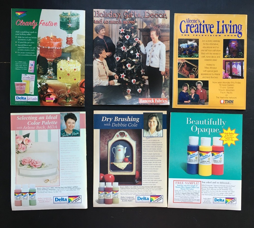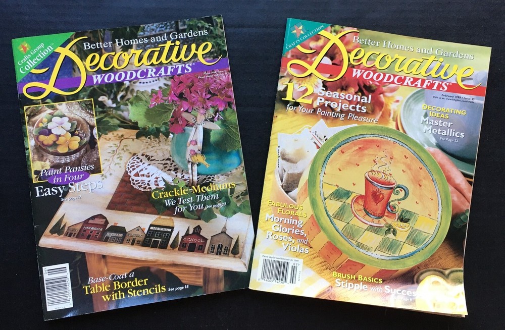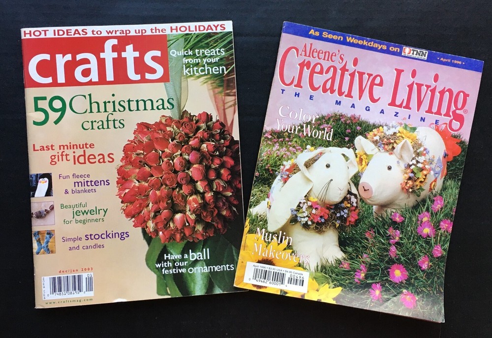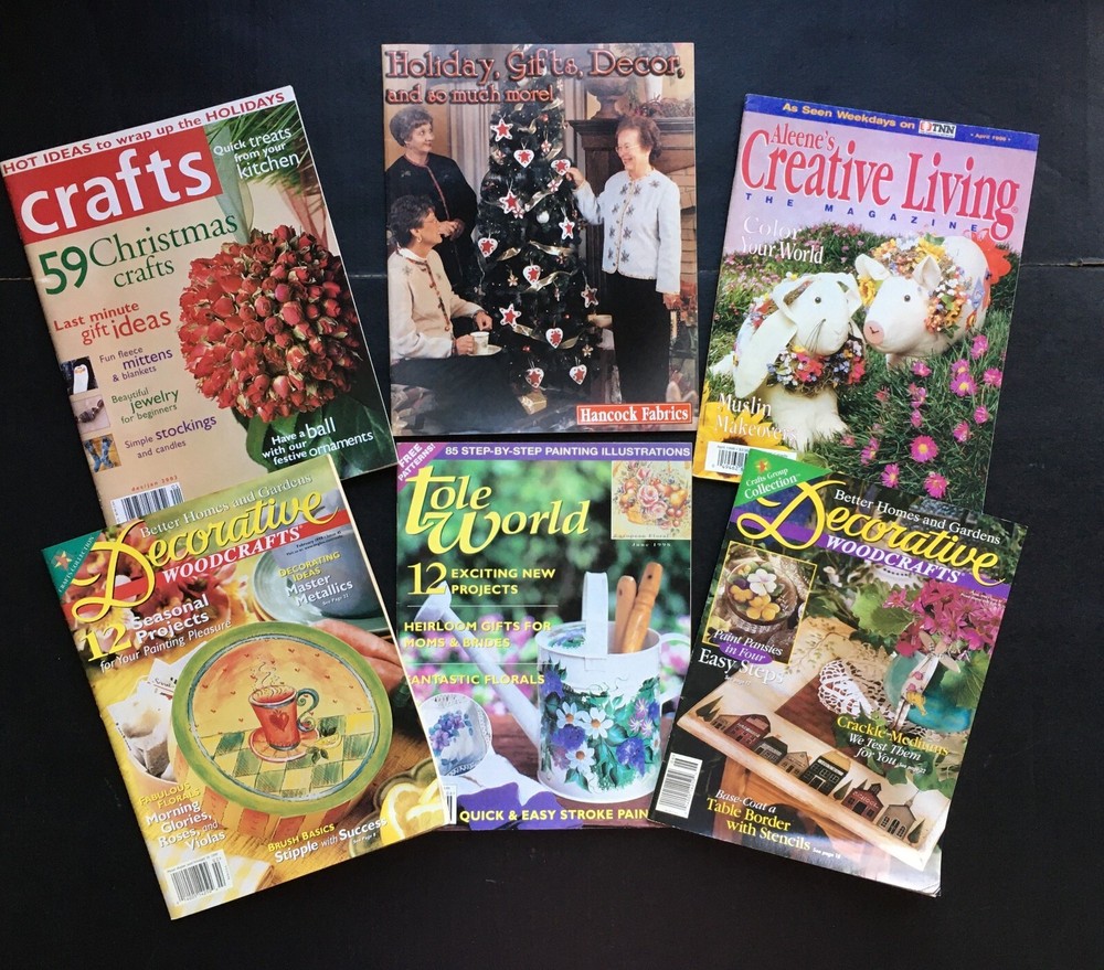 6 Vintage CRAFT MAGAZINES ...circa 1996 - 2003 Hancock Fabrics Tole World Crafts Aleene's Creative Living (2) Better Homes Decorative Woodcrafts Vintage Collection of 6 CRAFT MAGAZINES • patterns and instructions SEWING • CROCHET • WOOD CRAFTS • PAINTING ⭐Holiday, Gifts, Decor, and so much more!⭐ 1️⃣ ⭐HANCOCK FABRICS⭐ 46 pages • Window Toppers, Table-Top Decoration, Crisscross Pillow • Tree Skirt, Table Runner, Tote Bag, Holly-day Jacket • NOEL Pillow, Crocheted Christmas Stocking • Scandinavian Snowflakes, Christmas Lights Placemats • Bed Jacket, Game Quilt, Girls Fleece Robe • Snowman Ornaments, Stockings, Boys Fleece Top → Ceased operations: July 27, 2016 2️⃣ ⭐Tole World⭐ QUICK & EASY STROKE PAINTING ...metal, wood, fabric, porcelain, paper June 1998 82 pages • Spring Spray WATERING CAN • Vitamin Keeper CABINET • Fanciful Fruit BREAD BOX • Linda's Tulips WATERCOLOR • Memories of the Wedding PHOTO ALBUM • Russian Rose WOODEN RING BOX • White Roses PORCELAIN BASKET • Garden Seed Box WOOD PIECE • Purple Clematis PILLOW • Princess CLOCK (painted) • Spring Herb Wreath PAPER MACHE BOX → Tole World Magazine has ceased publication. 3️⃣ ⭐crafts Magazine⭐ 59 Christmas crafts Dec/Jan 2003 90 pages • Quick Mix Treat Baskets • Crazy-Quilt Christmas TREE SKIRT • Bead Jewelry • Kids Corner - Fleece Blankets & Mittens • Wool Felt Holiday Bag • Ecology-conscious STOCKINGS • Quick Holiday CANDLE Tricks • Floral Topiary Shadowbox • Beautiful Bath Salts • Joy-Ful Ball ORNAMENTS • Embroidered Snowflake Bags• • Norway Spruce Cone Basket • Holiday Treat Tins * includes insert of Crafts Pattern Section →On 11 February 2009, the print version of Craft would be discontinued but would remain as an online presence. 4️⃣ ⭐Aleene's Creative Living⭐ THE MAGAZINE April 1996 70 pages • Seed Bead & Bread Dough Baubles • Victorian Garden Wreath • Napkin Applique LOUNGE WEAR • Reverse Collage Cards • Plaster Pots ~ Daisy & Pansy • CROCHET Pansy Bouquet Afghan • Spring Bouquet BANNER • Just Be Cuz Garden VEST • Kathy Keeper RIBBONS & BARRETTES Wall Hanger • Sea Shell Box • Ribbon Reel Bunny • Angel Heather Pin • Dress a Bunny - Muslin Bunny • Chili Pepper STENCILS • Bunny Goblet → Aleene Jackson – entrepreneur, inventor of Aleene’s Original Tacky Glue and craft industry icon was the creator of Aleene’s Creative Living Magazine - a top-rated monthly print craft magazine with significant circulation as well as Aleene's Creative Living TV show. The show ended in 2000. 5️⃣ Better Homes and Gardens ⭐Decorative WOODCRAFTS⭐ June 1998 38 pages • Painted PANSIES on Potpourri Bowl • Gone Fishing PAINTED BOX • Painted WOOD PLANT STAND • Tackle Crackling • Donna Dewberry Painted CABINET • Painted SCENIC SHELF • Painted Bedroom CHEST • Painted Wood Snowman Ornament • 3-D Wood Gingerbread Ornament *includes project patterns insert →no longer in publication 6️⃣ Better Homes and Gardens ⭐Decorative WOODCRAFTS⭐ 12 Seasonal Projects February 1999 48 pages • Holiday Heart-Warmer Ornament • Vintage Rose Box • Star Penguin • Folk Art Sampler • Floral Night Light • Photo Display Panel • Painted Tea Bag Box • SANTA Napkins or Coasters Holder • Violas-and-Ivy LAMPSHADE • Snow-Couple BOOKENDS • Country-Scene CHALKBOARD • Cottage BIRDHOUSE *includes project patterns insert →no longer in publication VERY GOOD CONDITION • COMPLETE • no missing or torn pages • no stains or discolorations Happy crafting! ꧁ 𝒯𝒽𝒶𝓃𝓀𝓈 𝒻𝑜𝓇 𝓋𝒾𝓈𝒾𝓉𝒾𝓃𝑔! ꧂