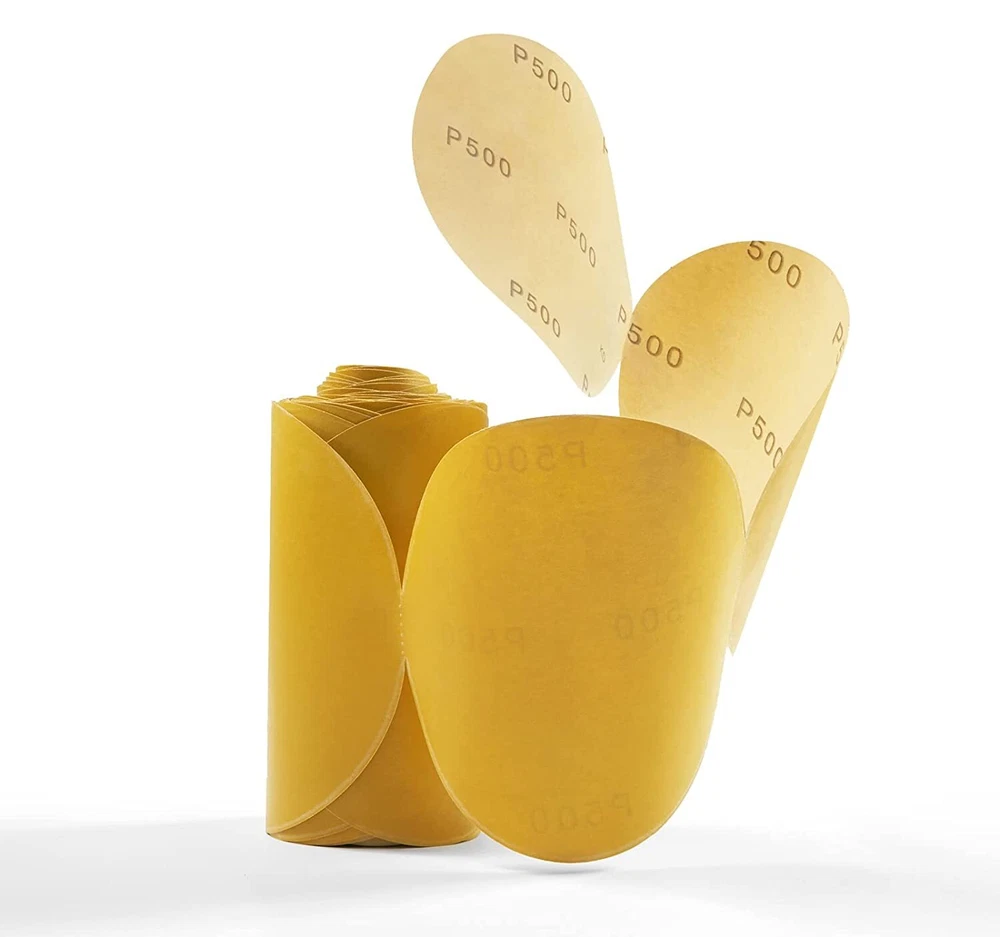 200pcs/100pcs/50pcs SANDING DISC, Sandpaper Roll, Adhesive,PSA Sticky Back, 6", Grit 40 - 220 Features & Benefits ️ ️ Anti-Clog Zinc Stear ate Coating : Gold features a semi-open and special zinc stearate coating designed to resist clogging and pill forming, which helps achieve optimal sanding results and high efficiency ️ ️ ️ Customised Sharp Alumi num Oxide Abrasive : Made from special customised sharper aluminum oxide abrasive which provides increased life, fast cut rate, consistent finish ️ ️ ️ Heavy Duty C-Weight Latex Saturated Paper B acking : Unique fiber reinforced, flexible C-weight latex saturated backing san dpaper allows you to sand contours and difficult-to-reach parts of your workpiece and helps increasing tear strength while retaining flexibility. Also easily cut to size to greatly reduce product waste. Resin Over Resin Bonding : High strength resin bond system provides superior grain support, resist heat and humidity for longer life. Never leave your furniture gold. Easy Attachment and More Sticky : More glue added adhesive backing makes paper easy to stick, more sticky and not fall off when installed in use. ️ ️ ️ Remain Sticky at Low Temperatures : Special oil added in the glue to ensure sticky in Autumn and Winter. Compatible With 6" Vinyl Face PSA Sanding and Backing Pad Machines 6" DA Sanders Applications Stripping paint to metal Smooth and shape body filler Specifications Color: Gold Abrasive: Aluminum Oxide & Zirconia Coating: Semi-Open Bonding: Resin Over Resin Backing Material: C-wt Latex Paper Attachment: Pressure Sensitive Adhesive, More Oily Glue Added, considering Autumn and Winter season Diameter: 6 inch Grit: Select from 40,60,80,100,120,150,180,220,240,320,400,500,600 a nd 800 grit Package Includes: 1/2 x Sanding Disc Sandpaper on Roll (50pcs/100pcs/200pcs) Shipped same-day from Walnut,Houston or Hebron via USPS Priority Mail, UPS Surepost or UPS Ground, the shipment method depends on the quantity and your address.