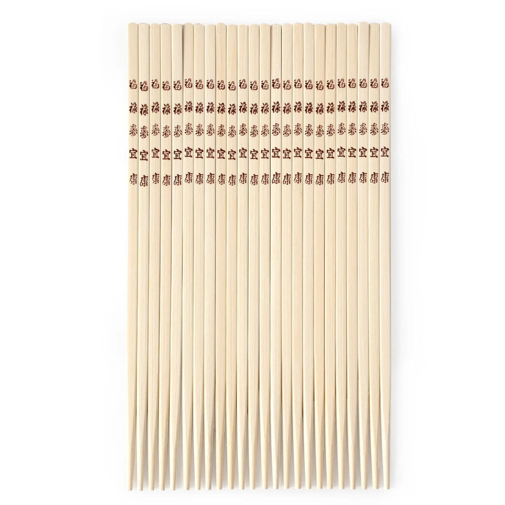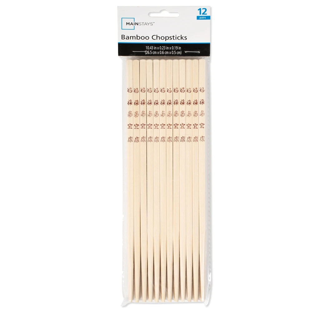 Mainstays Bamboo Chopsticks, 12 pairs of chopsticks in 1 set, it is easy to enjoy Chinese food and meals by using it. It's made from 100% bamboo; a fast-growing, fully sustainable resource and alternative over traditional materials for a more sustainable living,10.43 in length which is suitable to use. It is durable and lightweight, and it is also very easy to clean. HIGH QUALITY: Mainstays 100% Natural bamboo chopsticks, durable, healthy. PROPER SIZE: The length of the chopsticks is about 10.43 inches, 12 pairs. FEATURES: Lightweight, strong, less absorbent than wood; won’t scratch surfaces; dispose of for easy cleanup or hand wash in warm, soapy water to reuse. UNIQUE DESIGN: Tapered tips make picking up and holding foods easier, square profile keeps them from rolling away when not in use. MATCH WITH ASIAN FOOD: Great for enjoying stir-fry, sushi, pad thai, dim sum, and other dumplings, or party hors d’oeuvres and appetizers.