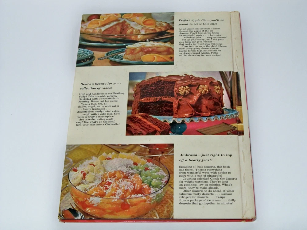 Book Title: Better Homes and Gardens Dessert Cookbook, Better Homes and Gardens Casserole Cookbook Plus One dish meals, Better Homes and Gardens Meals in Minutes. Publisher: Meredith Press Copyright: Varies from 1960 to 1962 Printing: N/A Physical size: Largest sized book is 11 x 8, smaller book is 10 x 7 Pages: two are 160, one is 60 pages. Condition: Some cracking on cover binding (but intact), and some sticking with pages from use and age. Nice pictures! Here are the eBay definitions of condition. I place the definition here that resembles the condition of this publication the closest: Books & Magazines Good: The book has been read but is in good condition. It has very minimal damage to the cover, including scuff marks, but no holes or tears. The dust jacket for hard covers may not be included. The binding has minimal wear. The majority of pages are undamaged with minimal creasing or tearing, minimal pencil underlining of text, no highlighting of text, and no writing in the margins. There are no missing pages. See the seller's listing for full details and a description of any imperfections This book is a time capsule from a previous era, with some examples in my collection going back over 120 years old. The conditions of media of this age can include fading, yellowing, cracking spines, odor, missing pages, loose or missing covers, and much more. I will try to alert you as to the condition of what I am listing. Each book I do a brief check of it's overall condition, but I cannot promise that something such as missing pages, or clipped photos could escape my glance. Thanks for checking out this old time classic! I will be listing hundreds of vintage books, magazines, catalogs, and media in the coming weeks and months. Keep a look out for additional listings, and thanks for supporting this cancer survivor and small business!