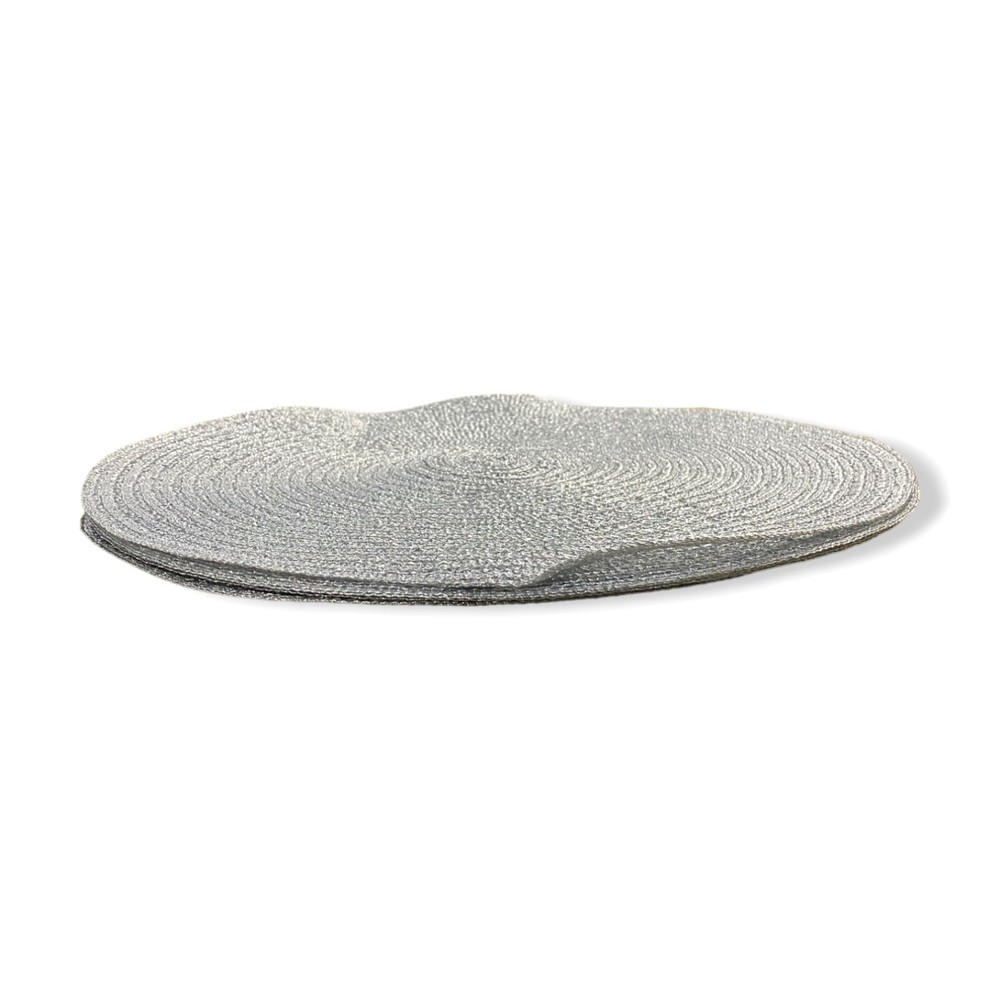 $64 Design Imports SIlver Metallic Round Woven Placemats Set of 4 Ø15" Description DESIGN IMPORTS Metallic Round Woven Placemat, Set of 4 These beautifully woven placemats are timeless and pair well with modern tableware as well as with more traditional tableware. Excellent for protecting your table from stains and scratches and extending the life of your table. Placemat measures - 15" x 15" x 0.25" Placemats makes the perfect complement to your table and is suited for outdoor dining as well Set of 4 - placemat 100% Polypropylene Wipe with Damp Cloth Imported About Us We sell only 100% authentic clothing from new with tags to gently used. We have a 100% authentic or money back guarantee on every item we sell. Items are listed daily so make sure to put us on your favorite! We have been in business for over 10 years selling tens of thousands of designer items. We strive to meet your designer needs at a quality price! Payment Shipping Returns Payment accepted via paypal, credit/debit card. Shipping is usually within 24 hours of purchase (M-F). Super fast service. Tracked delivery. 100% satisfaction guaranteed. Please review our eBay return policy for more details.