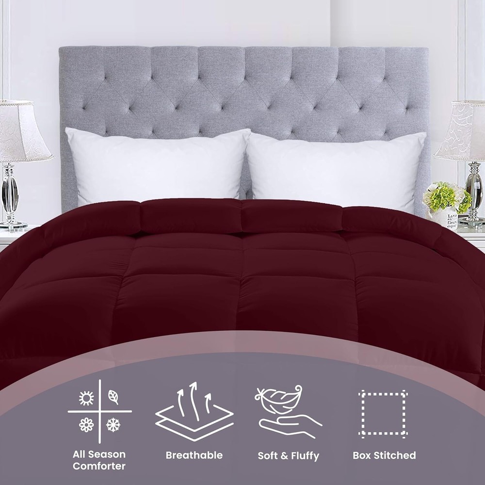 64-Inch x 88-Inch Wine Red Twin Comforter with Corner Tabs - Soft Fiberfill Cozy Bedding