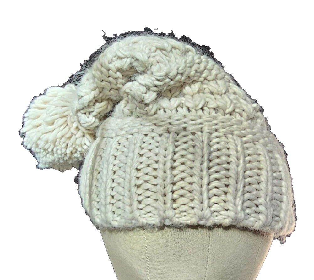 686 Women's Ivory Knit Beanie Hat with Logo and Pom in One Size. In Great Preowned Condition