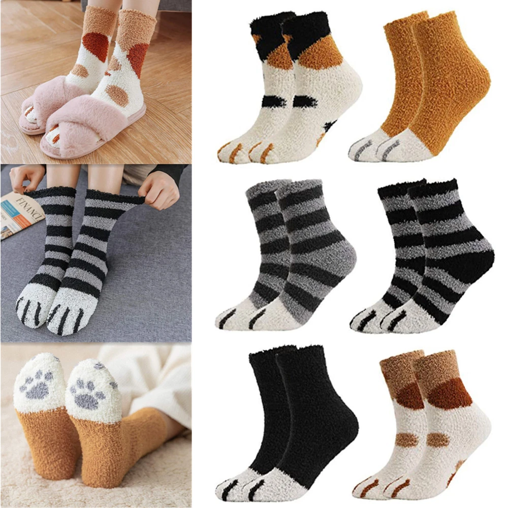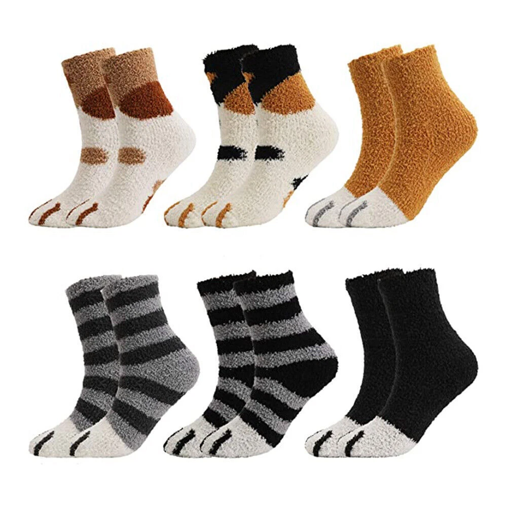 Features: Flexible and scalable Free size(Elasticity) Made of Cotton Materia For the season: Spring Summer and autumn Features: absorbent, antibacterial, shaping, deodorant, anti-foot <div id="\'pushauctioncounterdiv\'" style="\'width:100%;text-align:center;padding-top:20px;font-family:Times" new="" roman\'=""> Description: Cute Pattern Design: Lovely cat socks around the ankles, one pack includes 6 different style warm fluffy socks, you can match them with any of your favorite outfits, perfect for indoor and outdoor use. Great Material: Our women fuzzy socks are made of soft coral fleece, super soft, fluffy relaxing feel comforts and warms feet for everyday activities and even during sleep in fall and winter, very soft and plush feeling. One Size Fit All: These slipper socks are incredibly stretchy,easy to slip on as well as off, suitable for older kids and adult ladies. Great for wearing to bed and lounging around the house. The height of the socks can reach above the ankles, giving you the most comfortable warmth in winter. Multifunctional Thick Socks: Warm plush cozy fuzzy socks, suitable for different occasions. You can wear these thick socks in the fall, winter, early spring or any cold environment, to bring you warmth, or to wear them when you go out, no doubt, they are the most beautiful you wear in the cold winter. Package Included: 6 Pairs Sock