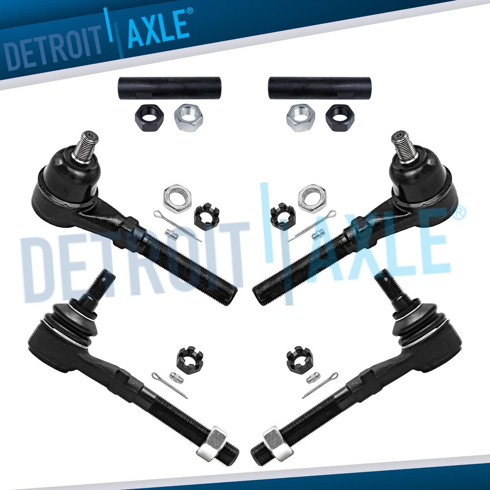 Warranty Details Click here for Warranty Details Questions? Call us! Monday-Friday 8am – 6pm ET Saturday 8am - 4pm ET 6pc 4WD Front Suspension Kit Kit Includes: 1x Front Outer Tie Rod End - Driver Side - ES3366 1x Front Outer Tie Rod End - Passenger Side - ES3367 1x Front Inner Tie Rod End - Driver Side - ES3369 1x Front Inner Tie Rod End - Passenger Side - ES3370 2x Front Tie Rod Adjusting Sleeve - ES3368 ***4WD MODELS ONLY*** FITS: MAKE MODEL YEAR RANGE SPECIFIC DETAILS FORD EXPEDITION 1997 - 2002 4WD ONLY FORD F-150 1997 - 2003 4WD ONLY FORD F-250 1997 - 1999 4WD ONLY; Under 8500lb GVW, Light Duty LINCOLN NAVIGATOR 1998 - 2002 4WD ONLY Not what you were looking for? Search our Store Page to find the right part! Brand Information Detroit Axle offers parts and accessories for the perfect combination of quality and value. Detroit Axle offers cost-conscious customers a full range of parts to a broad range of application. Provides extensive coverage of bearings for a broad range of automotive and heavy-duty 4x4 wheel applications. Manufactured in ISO 9000 / ISO 9001 / ISO 9002 certified facilities gives the fit, performance Reliability and durability of OE. Detroit Axle offers an extensive lineup of Wheel Bearings, CV Axles, Power & Manual Steering Rack & Pinions, Gear Boxes, Ready Struts, Drive Shafts, Prop Shafts and much more. Manufacturer Information Detroit Axle offers an extensive coverage of bearings for a large range of automotive and heavy-duty wheel end applications. Our Products are manufactured in ISO 9000 / 9001 / 9002 certified facilities. Detroit Axle products delivers the look, feel, fit and performance of OE. Manufactured with Internal bearing seals that are specifically designed to combat all types of road conditions to keep debris out and keep the bearing turning. With am OE design, simple installation and and long life as a guarantee Payment Paypal, Visa, and MasterCard are the accepted forms of payment. Please use the eBay checkout system when paying for your order. Immediate payment is required for all orders. Shipping All orders placed before 2pm (Eastern Standard) will be shipped the same business day. Orders made after 2pm (Eastern Standard) will be shipped the following business day. All orders in the continental 48 States will be shipped FREE of charge via FedEx or USPS at our discretion. Orders outside the continental 48 States (Alaska, Hawaii, Puerto Rico, US territories, or International) will be required to pay a surcharge for shipping. International orders will be shipped via USPS Priority Mail International. Return Policy Customer must contact Detroit Axle within 30 days of receiving shipment for approval of any return or exchange. Returns or exchanges will be subject to a 15% restocking fee of the original item purchased plus cost of return shipping and replacement shipping. Exchanges due to shipping errors by Detroit Axle will not be subject to a restocking fee or shipping charges. Track Page Views With Auctiva's FREE Counter