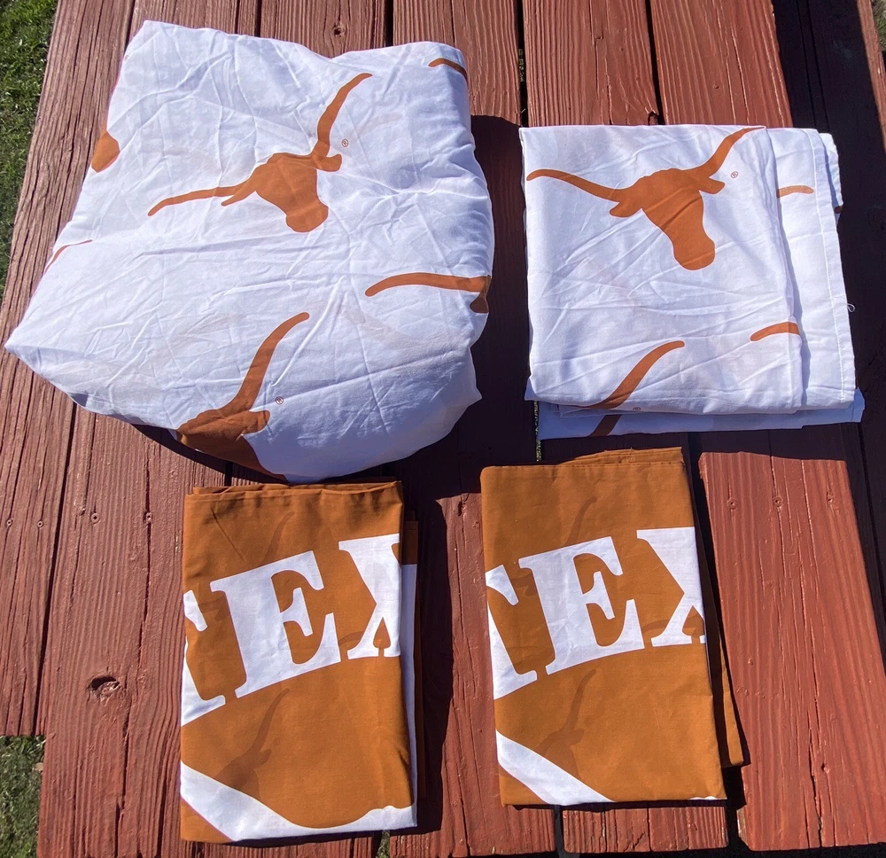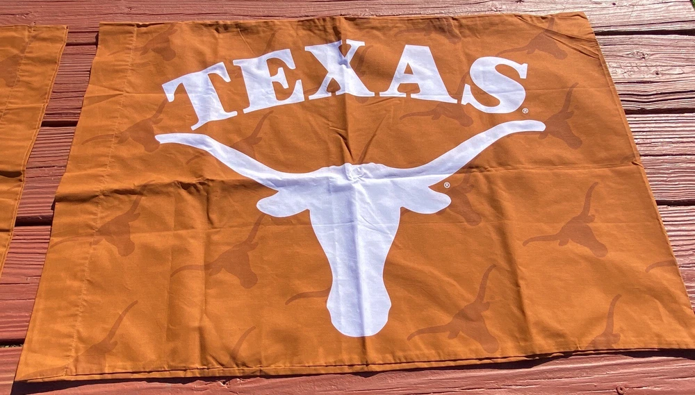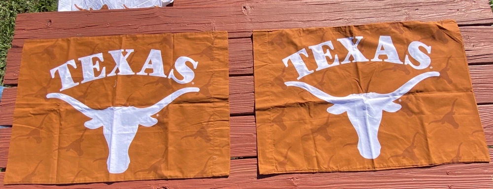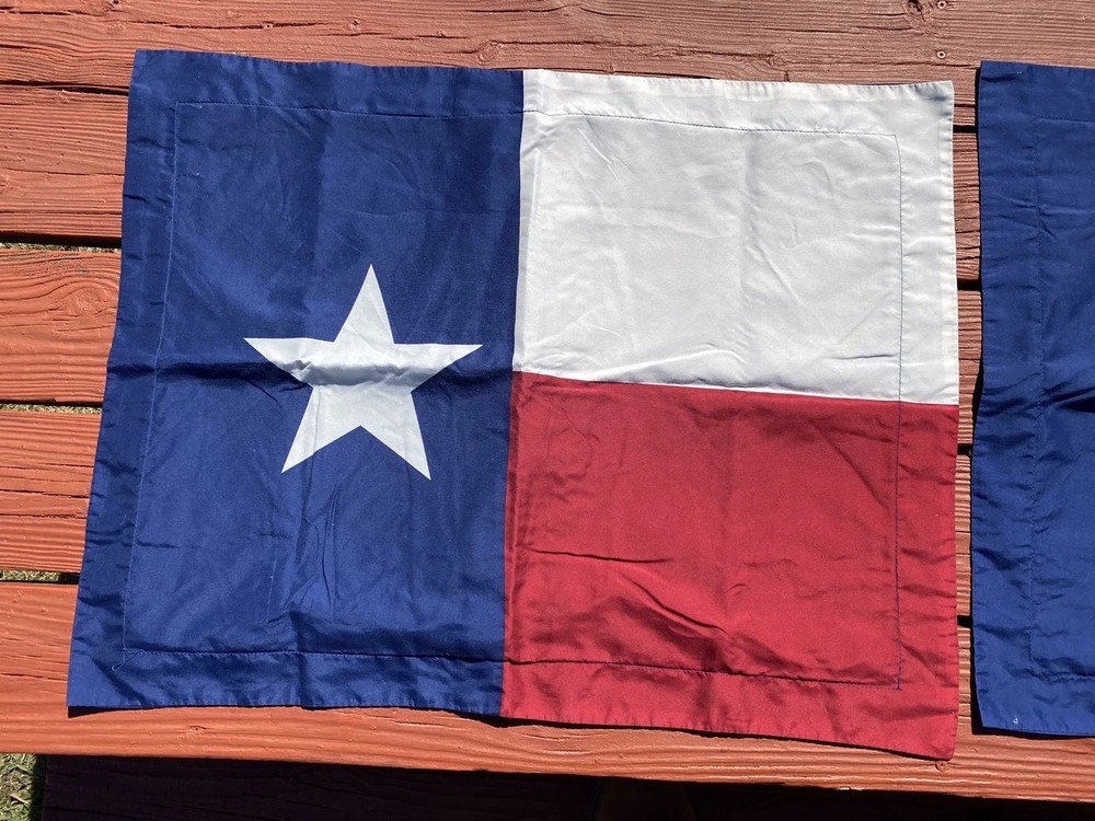 good condition. 2 Texas Flag Pillow Shams 100% polyester 4 Longhorn pieces are 55% cotton 1 untreated spot noted. Please visit our ebay store Earthly Home. https://www.ebay.com/str/earthlyhome The seller will choose shipping method. Shipments to PO Boxes may increase shipping costs. See all photos for condition. Thank you. )#@$