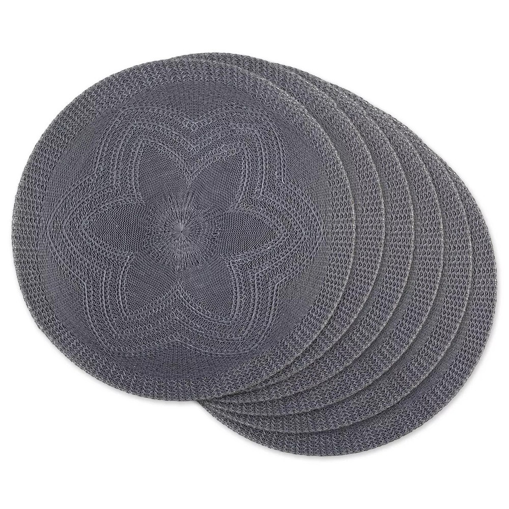 Highlights Placemats measure 15" round. Wipe clean with a damp sponge. Entertain guests and serve a big meal with all the fixings on your placemats year after year! Great for indoor or outdoor table settings; use as a placemat or charger. Description DII round indoor/outdoor placemats come in a set of 6 and are perfect for any occasion. These beautifully woven placemats give a contemporary look to any tabletop. These placemats are timeless and pair well with modern tableware as well as with more traditional tableware. DII round placemats are excellent for protecting your table from stains and scratches, extending the life of your table. Use these placemats for holiday parties, family gatherings, weddings, showers, and more. Great for indoor or outdoor table settings; use as a placemat or charger.