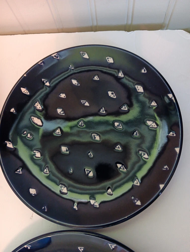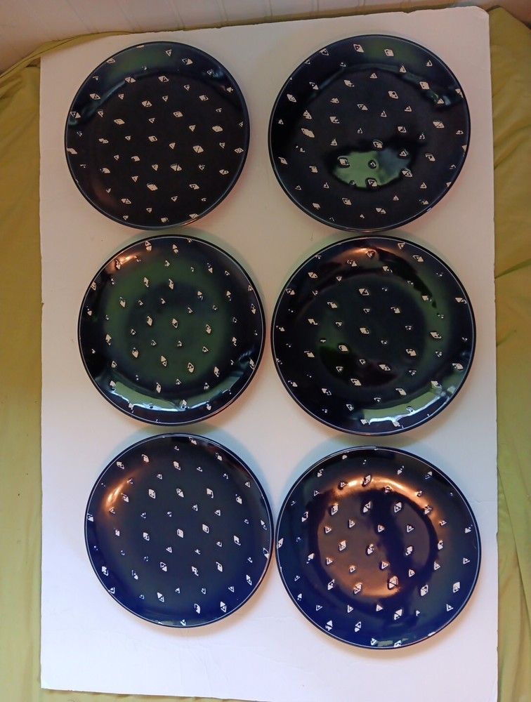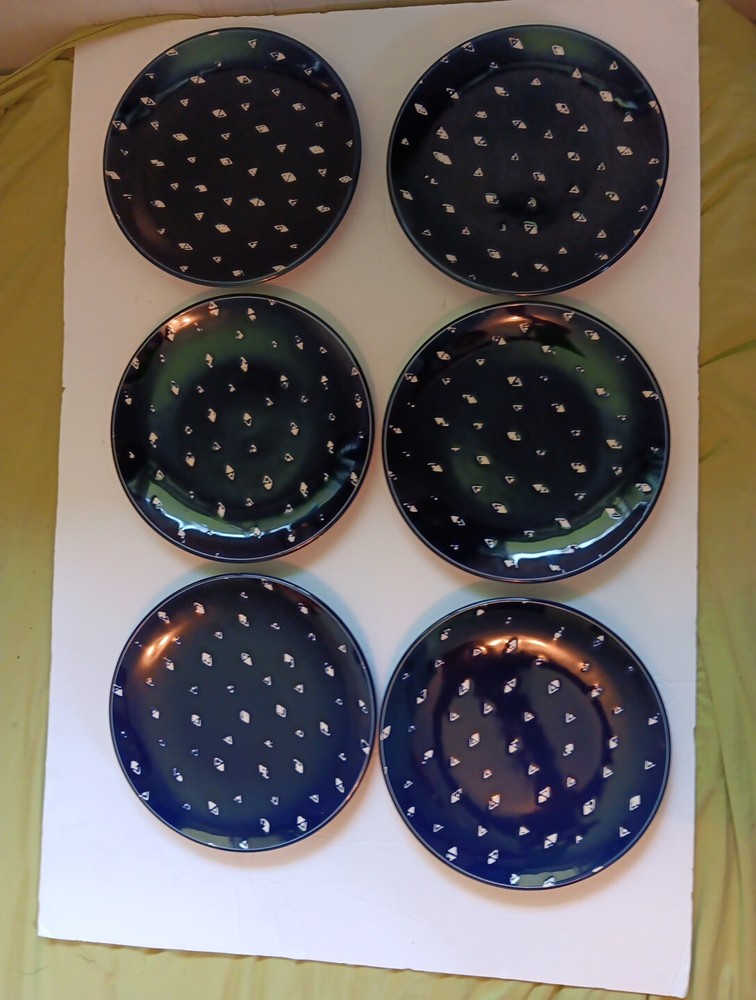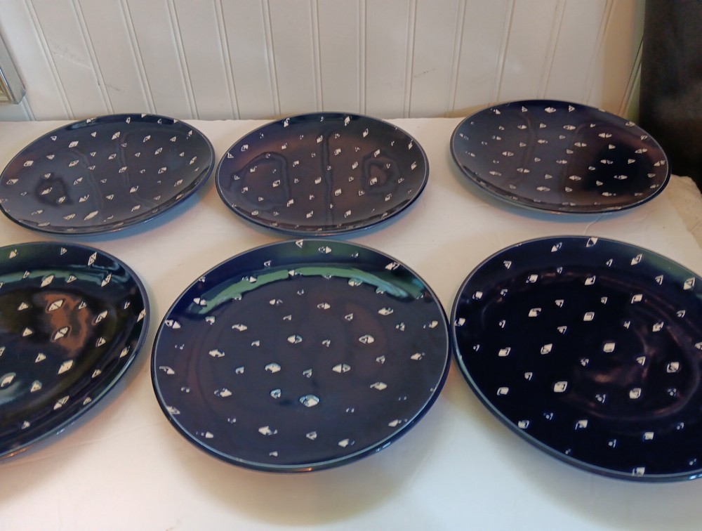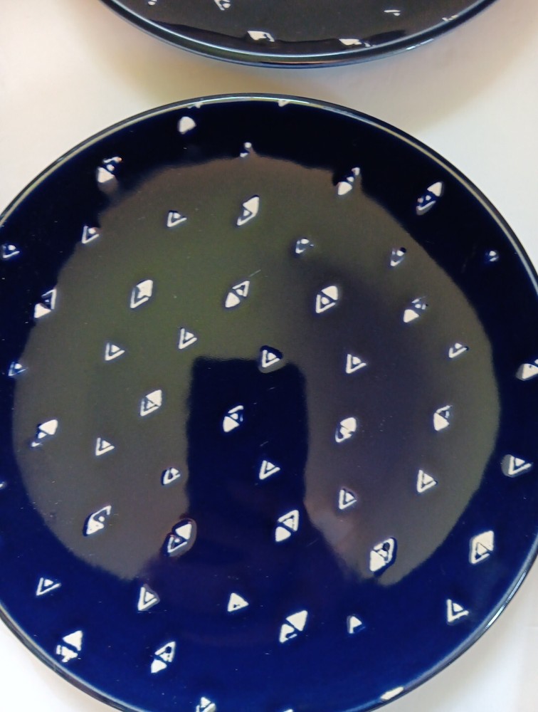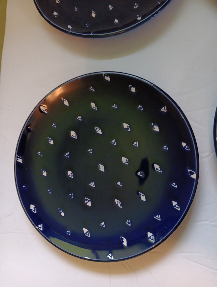 Dishwasher microwave safe. Made exclusively for Pier 1 imports. Beautiful cobalt blue with white triangular diamond pattern resembles fishes swimming. Brand new. Never used no chips cracks. Any imperf...