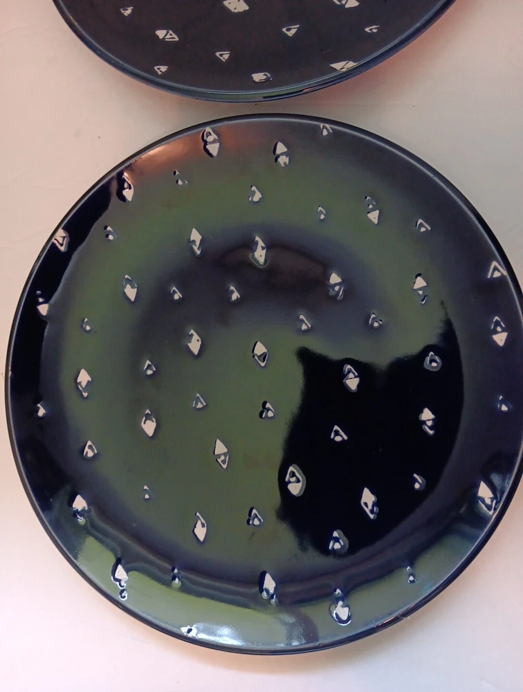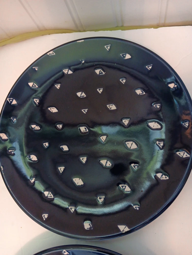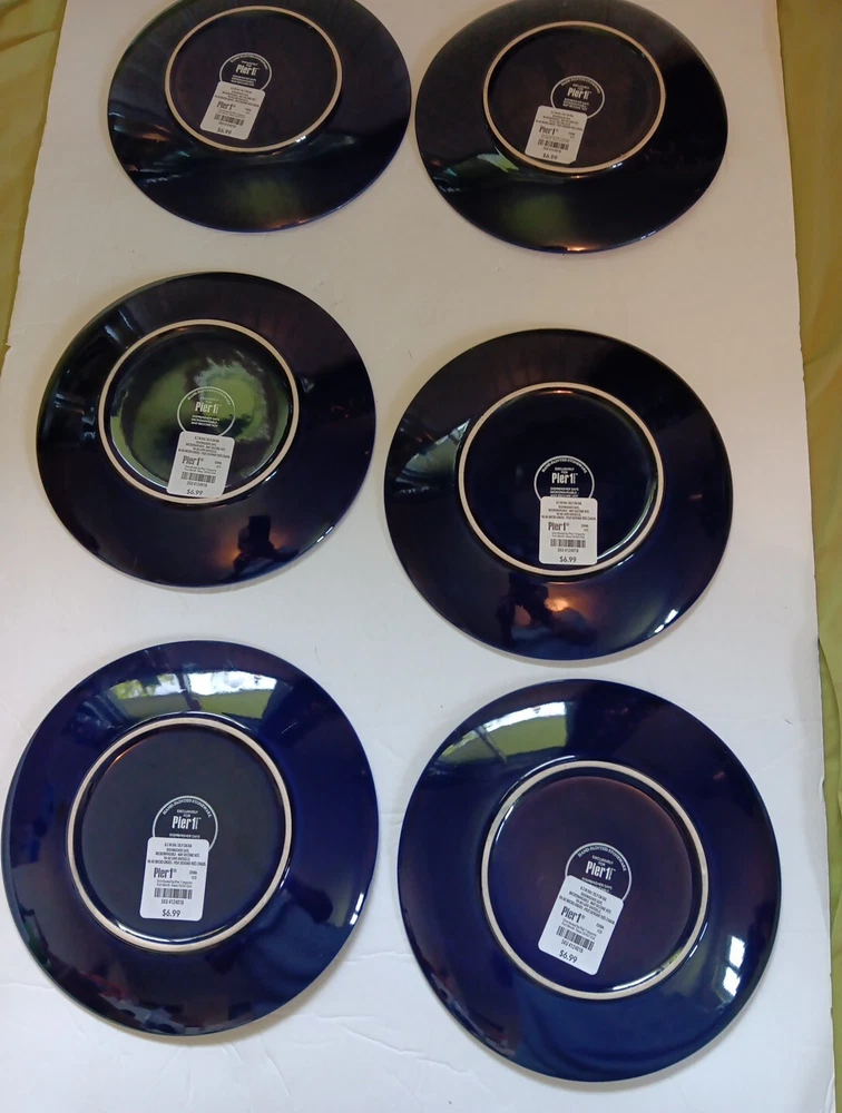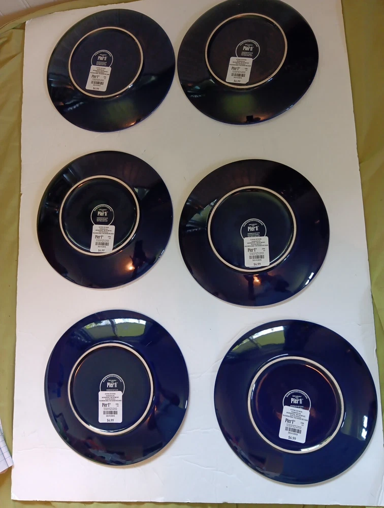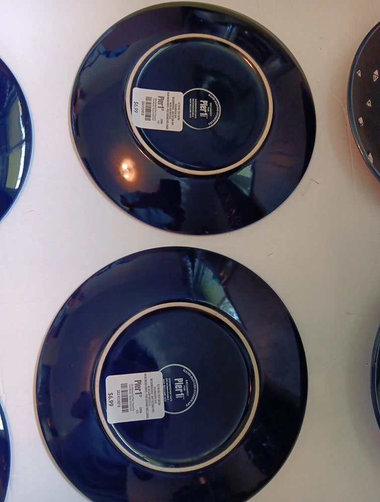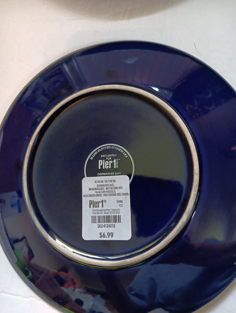 Dishwasher microwave safe. Made exclusively for Pier 1 imports. Beautiful cobalt blue with white triangular diamond pattern resembles fishes swimming. Brand new. Never used no chips cracks. Any imperfections are manufactured.