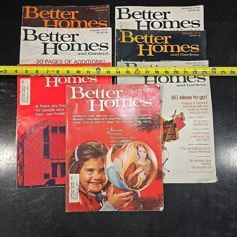(7) 1970 Better Homes Gardens Magazines Lot Mid Century Decor Crafts Recipes Art Lot of 7 Magazines From 1970 SEE ALL PHOTOS All in Good Condition for Age Paper may be delicate or discolored due to age May have minor staining, wear, and minor damage **The shipping cost shown may not be your cheapest option! We offer USPS and UPS shipping service options Check the Shipping Tab for Price options (Above "Item Specifics" on Desktop) Contact us for Local Pickup in SW / Central Missouri . PLEASE READ We do not claim to know anything/everything about any given item. Many items are purchased from estate auctions so we do not know past history. Any information given is based on our best guess or limited knowledge. Do your own research on items of interest. Please examine all pictures prior to purchasing, and please let us know if you have any questions. Make us an offer we can’t refuse! We love to bundle, Contact us to discuss a bulk deal if interested in multiple items. As is only. No warranty of condition explicit or implied. All items untested unless otherwise specified. If you need more photos or info, feel free to contact us. ALL Items include tracking and insurance for the protection of both ourselves as sellers, and our customers. Some Items may have limited shipping options due to shipping regulations. ALL Items are shipped using eBay Calculated Shipping by Location. For this reason, shipping costs may be higher than expected, depending on the item and your location. Please contact us PRIOR to ordering to combine shipping if purchasing more than 1 item or multiple quantity. If you are outside the continental USA, Shipping is through eBay International Shipping, and we CANNOT change shipping methods. Higher International Shipping costs, as well as delayed shipping times, are out of our control and may be due to additional customs and taxes. Looking for anything specific? We have a massive collection, only a fraction of which is currently listed for sale at any given time. Whether you are looking for vintage clothing, Glassware, Memorabilia, etc, Please contact us directly for inquiries. Refreshing Art Studio LLC holds NO RESPONSIBILITY for Harm in relation to use of items sold. Please handle all items carefully and take all necessary safety precautions when testing/using items. We are also Copper Metal Artists! Check out our other items made by us at Refreshing Art Studio. Find us online at our username and all the usual places.
