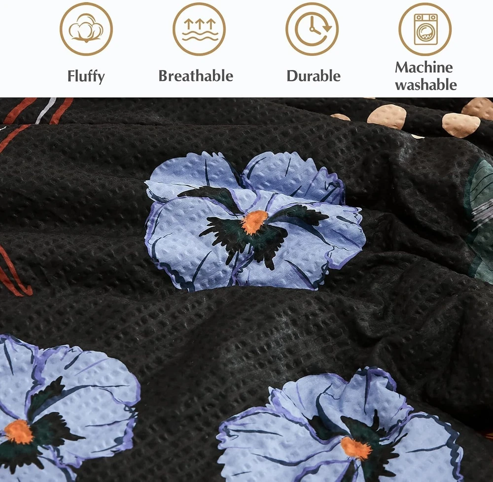7 PCS Full Comforter Set - Floral Seersucker Design for Cozy All-Season Elegance ‹ › ‹ › ‹ › ‹ › ‹ › ‹ › ‹ › ‹ › ‹ › 7 PCS Full Comforter Set Floral Seersucker Design for Cozy All-Season Elegance Features: Floral Farmhouse & Seersucker Design: Create a cozy vibe with vibrant flower-and-leave patterns, showcasing exquisite craftsmanship and seersucker fabric. Cloud-Like & Lightweight: Filled with 240GSM down alternative for comfortable all--round snuggling. Advanced Technology: Designed to resist pilling, shedding, and color fading, with tight stitching and double-sided brushed fabric for lasting warmth. Get Your 7PC Set: Includes 1 Comforter (80" x 90"), 2 Pillowcases (20" x 30" + 4"), 2 Shams (20" x 26"), Full Fitted Sheet (54" x 75" + 14"), and 1 Flat Sheet (81" x 96" + 4"). Easy to Care: Machine wash cold and tumble dry low. No ironing or dry cleaning required. Wrinkles will vanish in 24 hours after unpacking. Benefits: Transform your bedroom into a cozy retreat. Combines style with comfort and durability. Perfect for all seasons, providing warmth without weight. Effortless maintenance to fit your busy lifestyle. Enjoy the floral farmhouse aesthetic, adding natural beauty to your space. Why Choose Our 7 PCS Comforter Set? Elevate your sleeping experience with the 7 PCS Full Comforter Set, featuring an enchanting floral seersucker design that speaks to elegance and warmth. Crafted with meticulous attention to detail and advanced technology, this set promises to maintain its beauty and comfort wash after wash. Indulge in the cloud-like comfort provided by the lightweight design—perfect for snuggling in any season. Don’t just dress your bed; create a sanctuary that reflects your vision of cozy elegance. Bring home this exquisite comforter set today and transform your bedroom into a floral haven of relaxation and style! Shipping Free & Fast Shipping - We offer free shipping to most of the USA with a normal delivery time of 3-7 days. However, due to the current situation, additional delivery time (up to 3 weeks) may be required for some items. Alternative Carriers - We may use alternative carriers (e.g. USPS, FedEx, UPS, etc.) to ensure your package arrives safely and on time. Due to the use of multiple carriers, we are unable to provide a tracking number automatically. Handling Time - Orders are processed and shipped within 1-2 business days of receiving cleared payment. Shipping Restrictions - Shipping to Alaska, Hawaii, Puerto Rico, Guam, and other US territories may incur shipping charges or delivery restrictions. Please contact us before ordering, or your order can be refunded/cancelled. State Restrictions - There may be restrictions based on your state of purchase. For example, certain items may not be shipped to California due to state regulations. Contact for Tracking Updates - If you require tracking updates or have any concerns about the delivery of your order, please feel free to contact us, and we will be happy to assist you. Return 30-Day Hassle-Free Returns - We want you to be completely satisfied with your purchase. If you are not, you can return the item within 30 days of receiving it for a full refund or exchange. Easy Return Process - To start a return, simply contact us and we will provide you with a prepaid return shipping label and detailed instructions. Restocking Fee - There are no restocking fees for returns. However, the buyer is responsible for return shipping costs if the return is not due to a seller's error. Refund Processing Time - Refunds will be processed within 5 business days of receiving the returned item in its condition. Payment We accept all major credit cards, PayPal, and Apple Pay for your convenience. Your payment information is secure and encrypted to ensure a safe and seamless transaction. Please complete your payment within 3 days of purchase to avoid any delays in shipping. Feedback Your feedback is extremely important to us. We strive to provide the best products and customer service possible. If you are satisfied with your purchase, please take a moment to leave us a positive review. If you have any concerns or issues with your order, please contact us before leaving negative feedback. We are committed to resolving any problems and ensuring your satisfaction. Contact Us If you have any questions or concerns, please feel free to out to our customer support team. You can contact us through the eBay messaging system. We are available Monday to Friday, 9:00 am to 5:00 pm EST, and we will do our best to respond to your inquiry within 24 hours. Buy it now and enjoy a pleasant shopping experience! Set Includes: Comforter,Fitted Sheet,Flat Sheet,Pillowcase,Pillow Sham Material: Microfiber,Polyester,Seersucker Features: Lightweight,Stain Resistant Theme: Seasonal Care Instructions: Do Not Bleach,Machine Wash,Tumble Dry on Low Heat Department: Unisex Baby & Toddler,Kids,Teens,Adults Room: Bedroom Size: Full Type: Comforter Set Color: Black Fill Material: Down Alternative Pattern: Floral Insulation: All Seasons Number of Items in Set: 7 Style: Farmhouse Season: All Closure Type: No Closure Thread Count: 240 GSM (Grams per Square Meter): Below 150